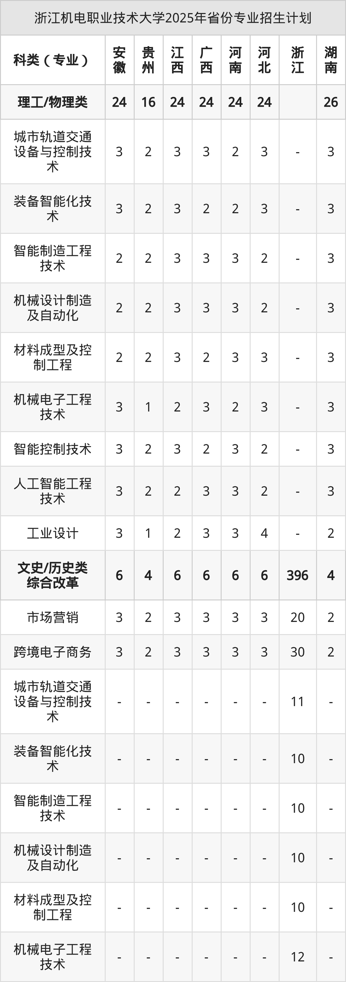 2026年浙江机电职业技术大学本科招生计划待公布,下面附上2025年数据,暂供参考: