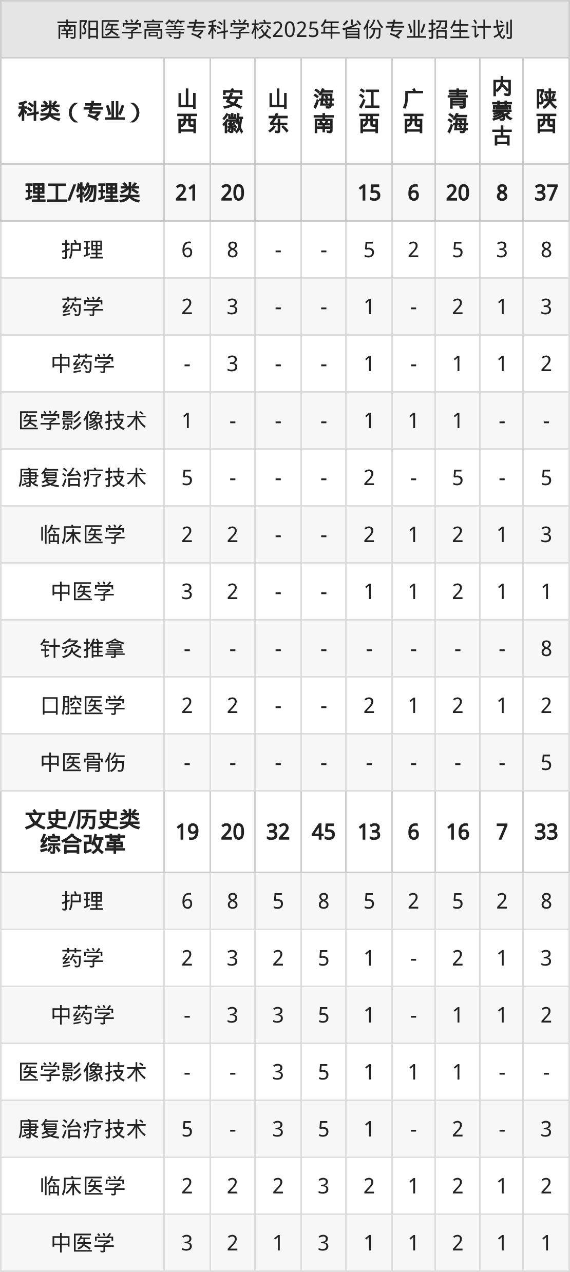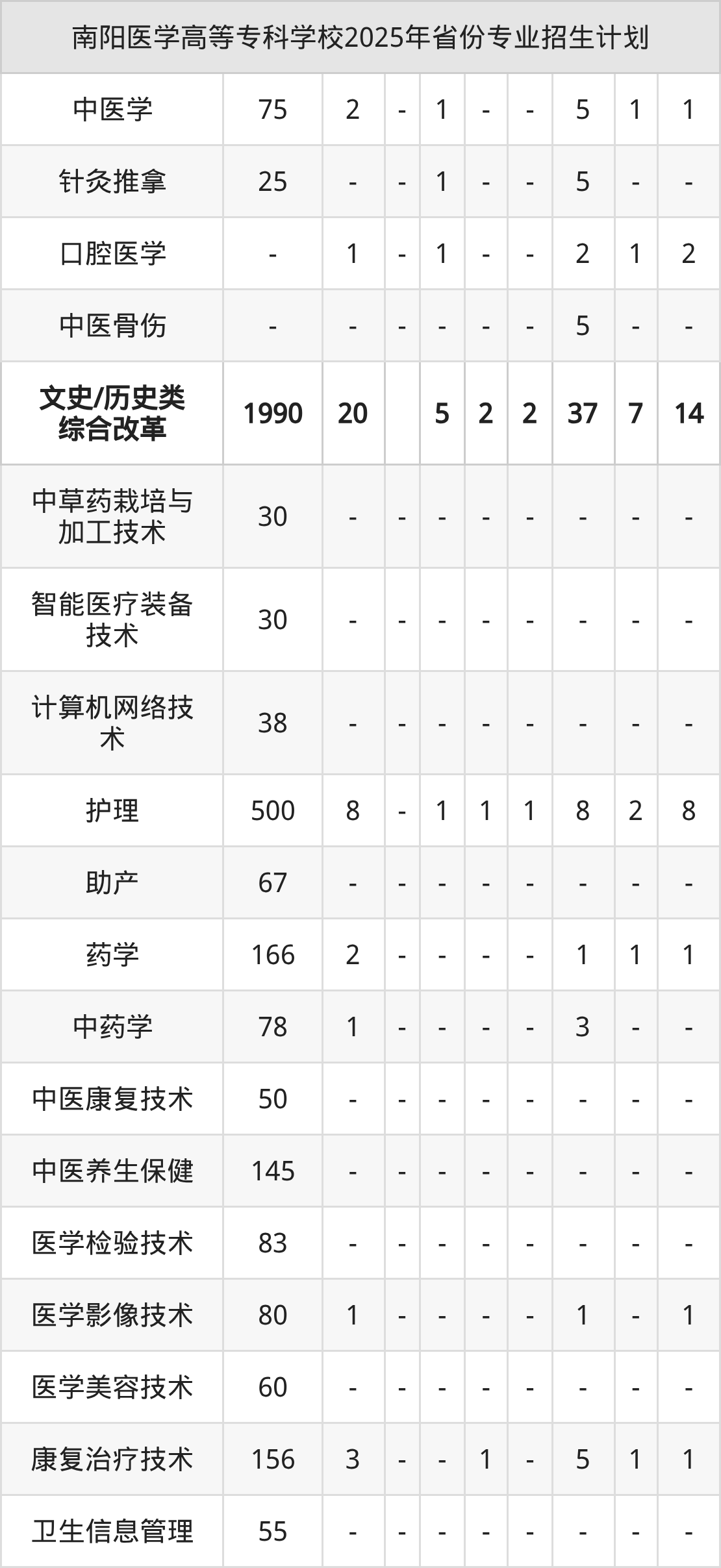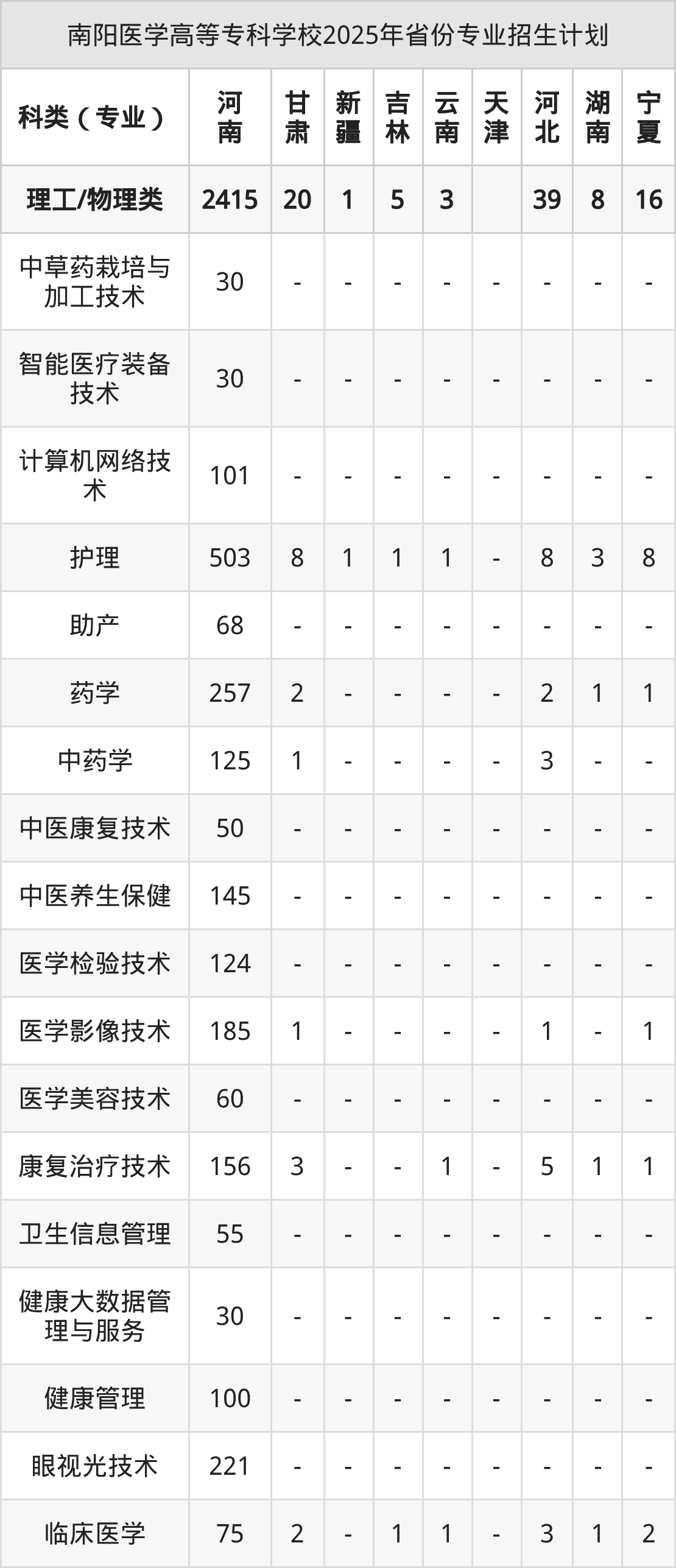 2026年南阳医学高等专科学校专科招生计划待公布,下面附上2025年数据,暂供参考: