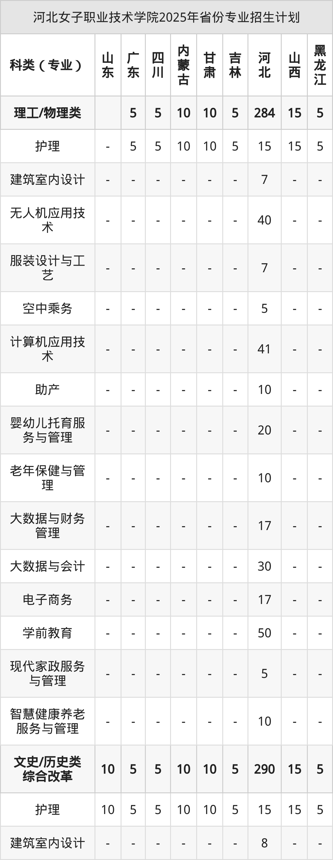 2026年河北女子职业技术学院专科招生计划待公布,下面附上2025年数据,暂供参考: