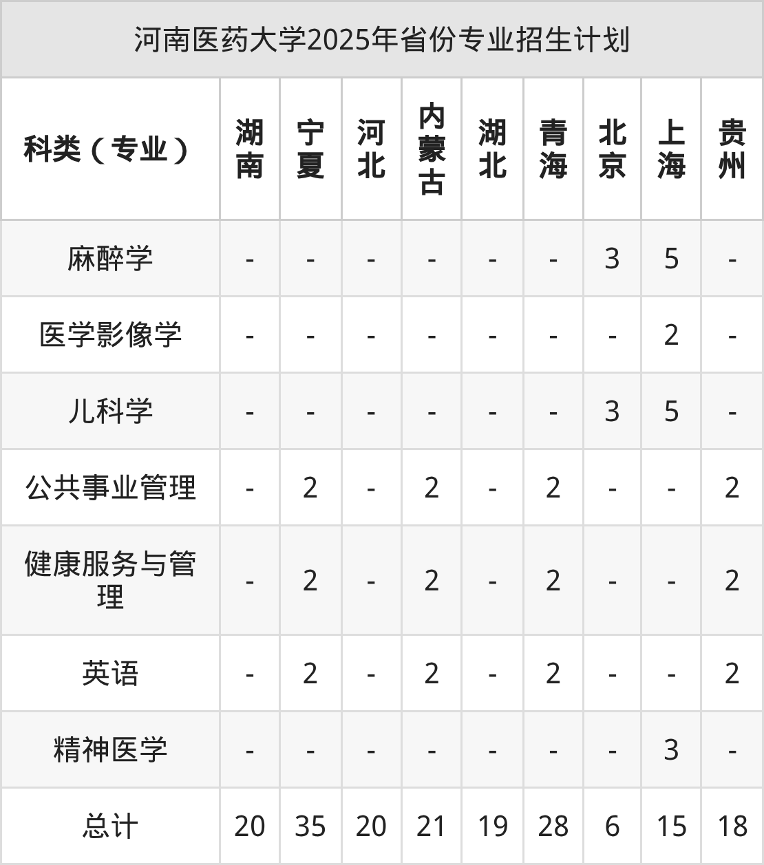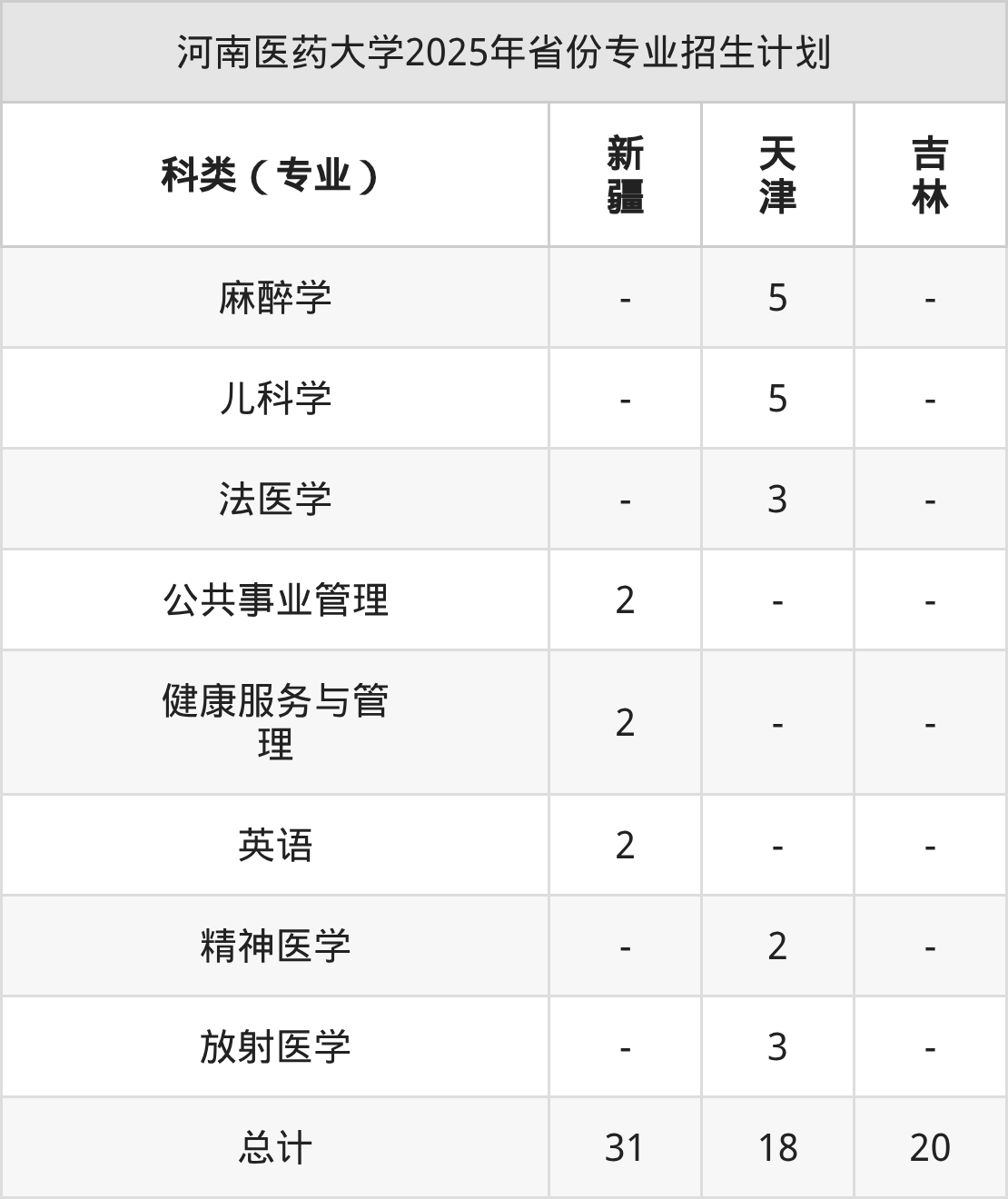 2025年河南医药大学计划招收本科生3822人,其中康复作业治疗专业30人,麻醉学专业170人,法医学专业95人,英语专业65人,口腔医学专业55人等。