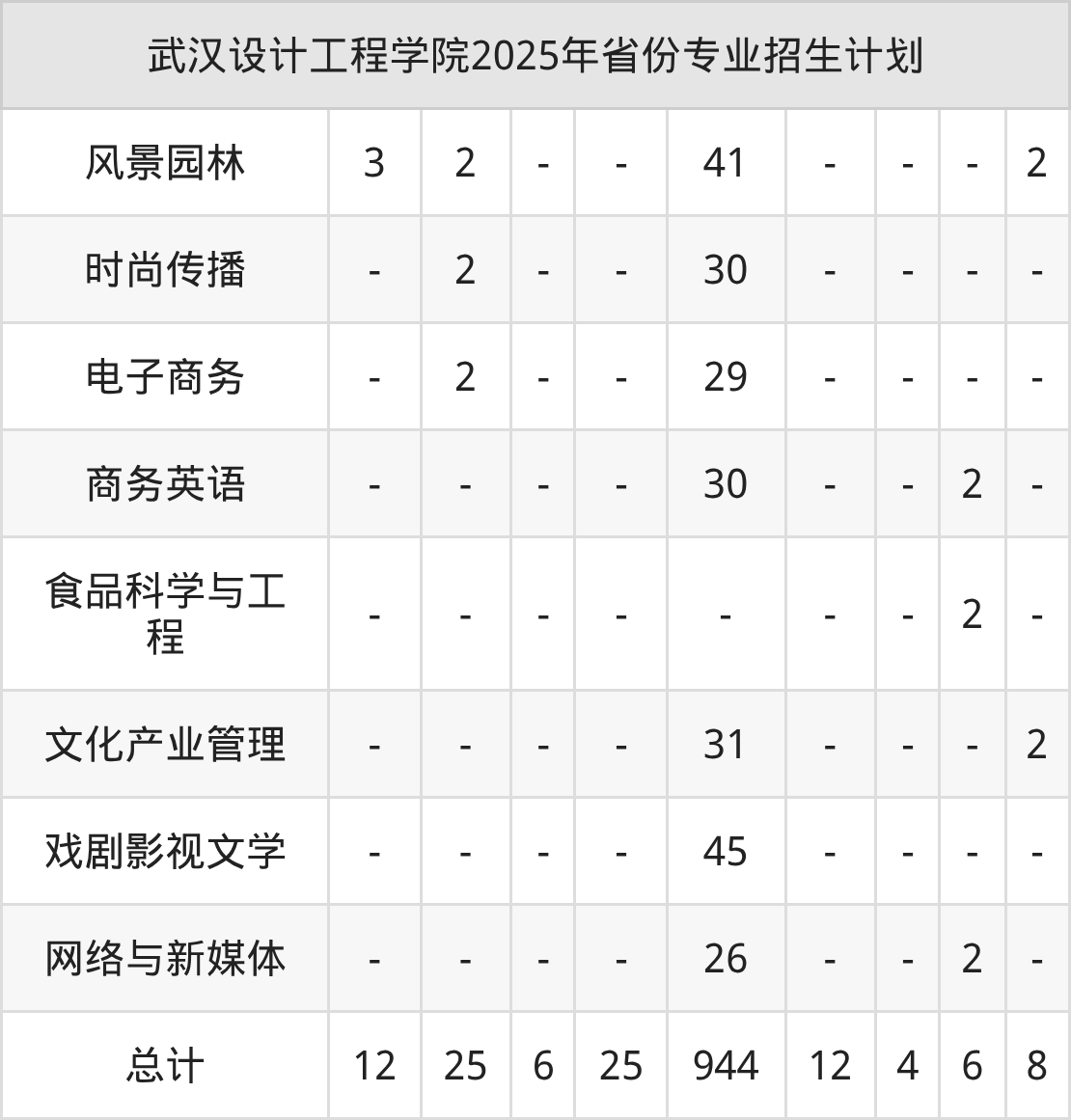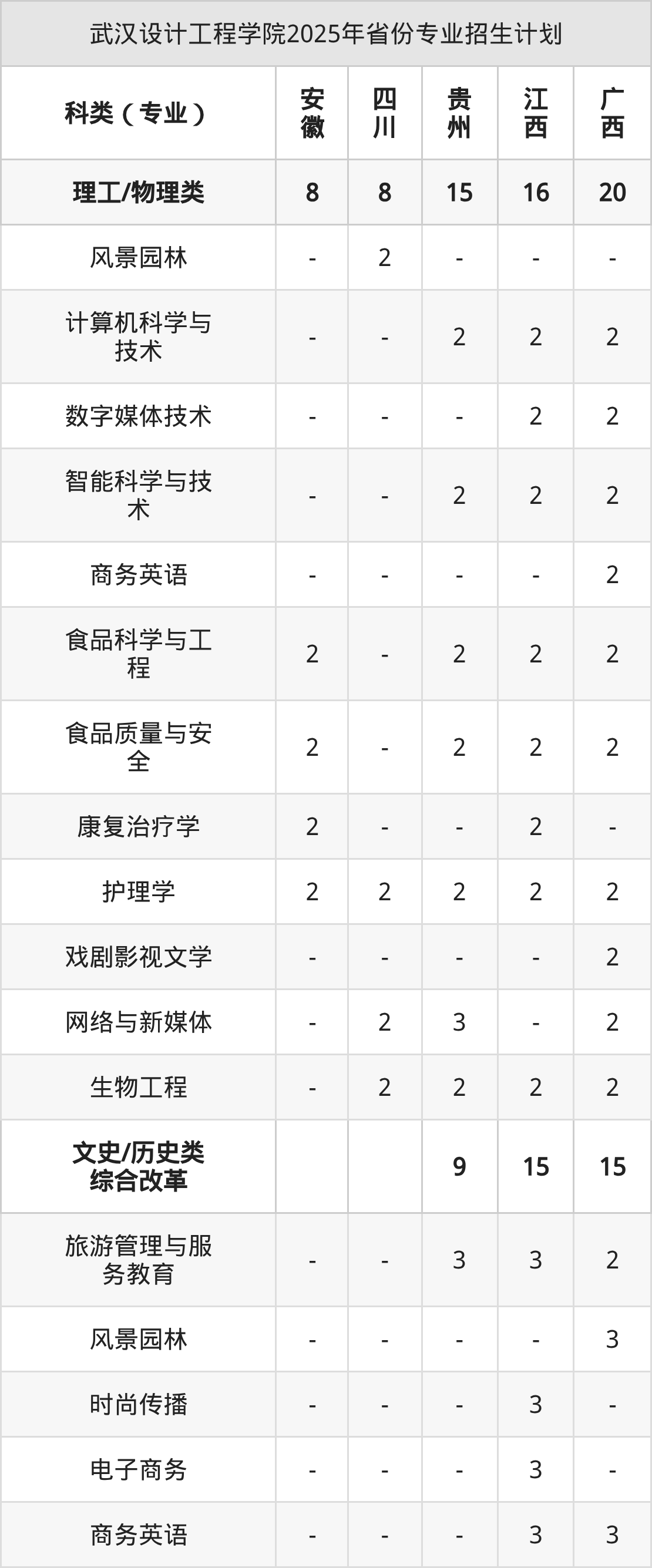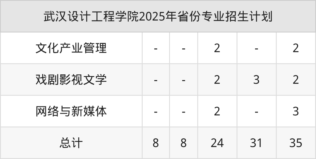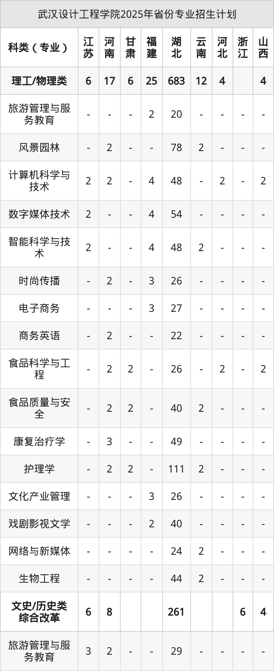 2026年武汉设计工程学院本科招生计划待公布,下面附上2025年数据,暂供参考: