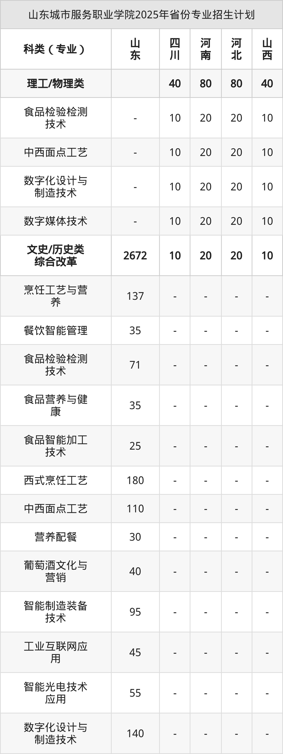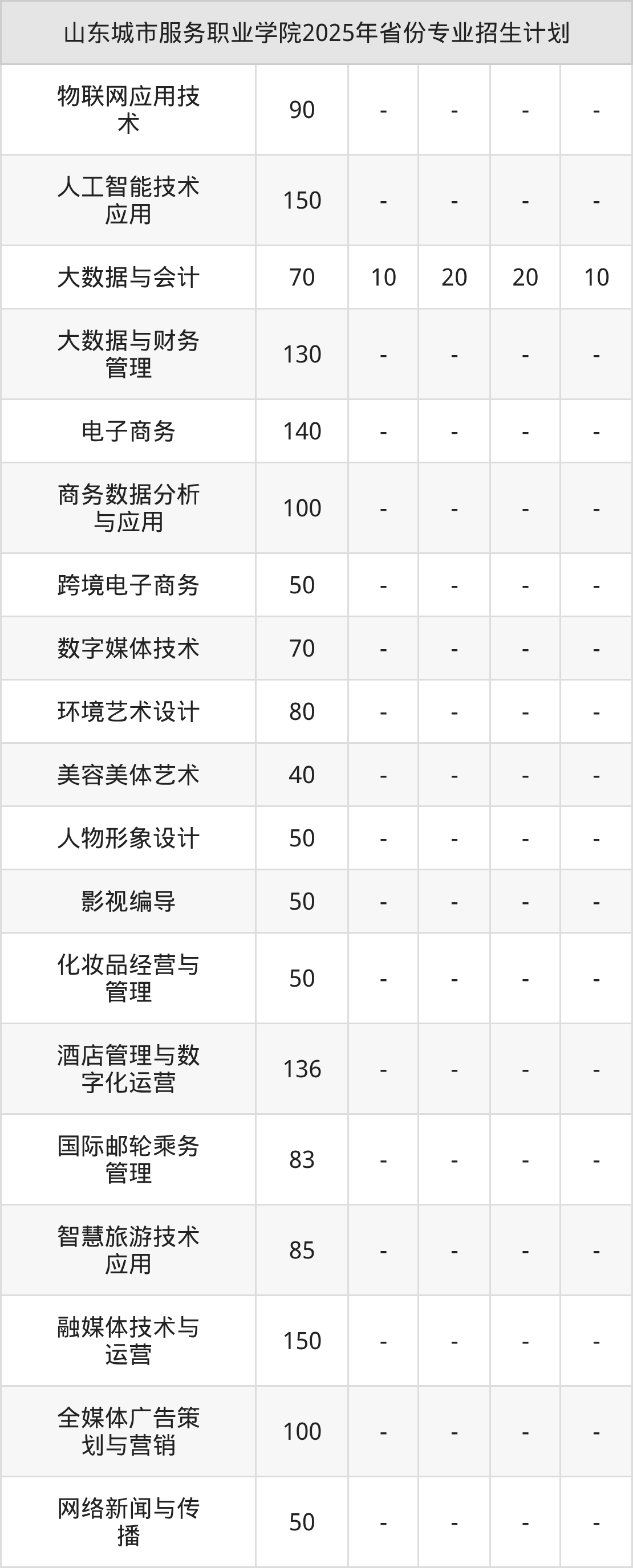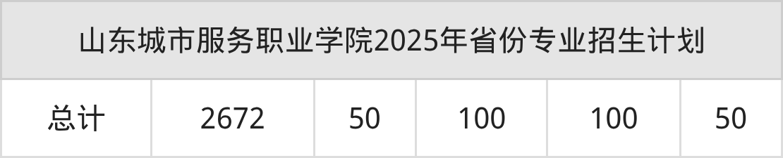 2026年山东城市服务职业学院专科招生计划待公布,下面附上2025年数据,暂供参考: