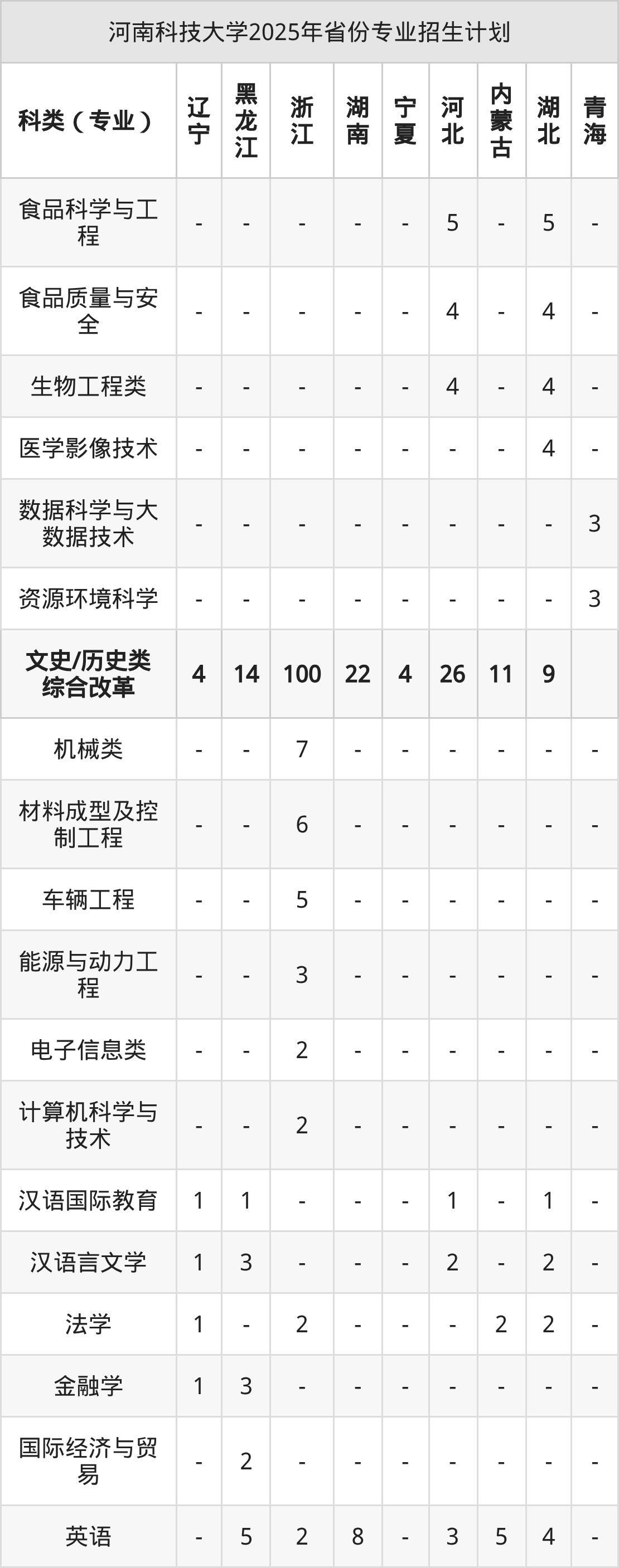 二、河南科技大学2026年招生计划
