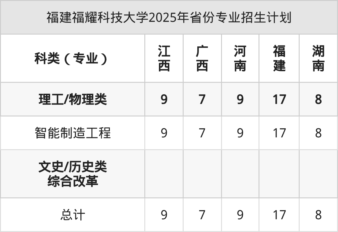 而各省份的招生计划数为江西9人,广西7人,河南9人,福建17人,湖南8人。