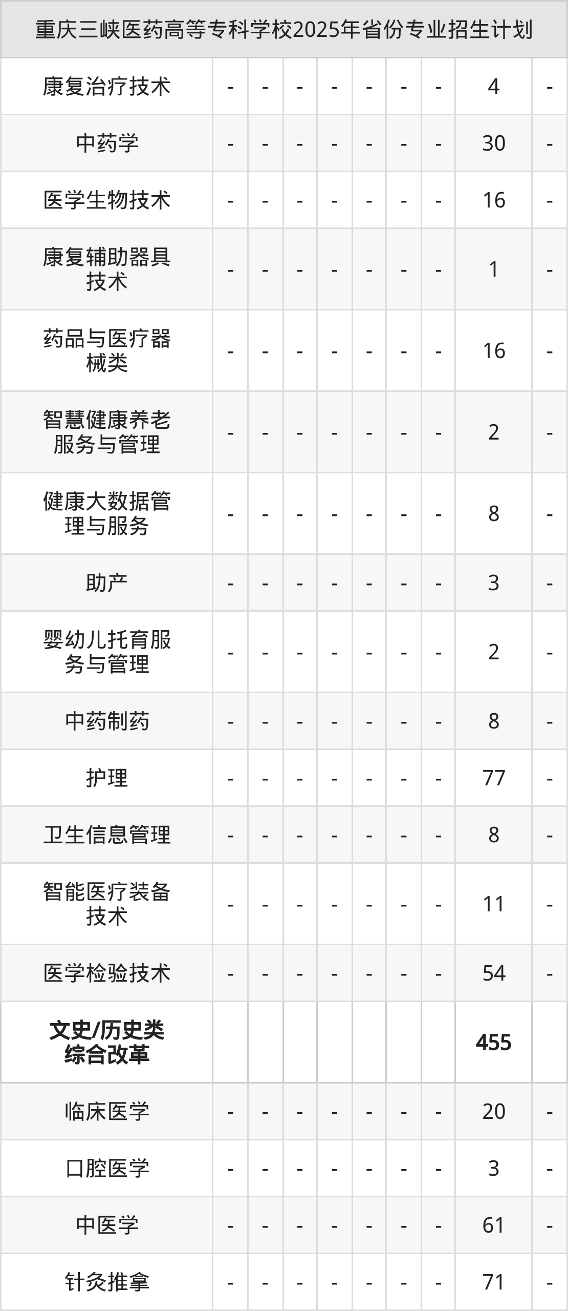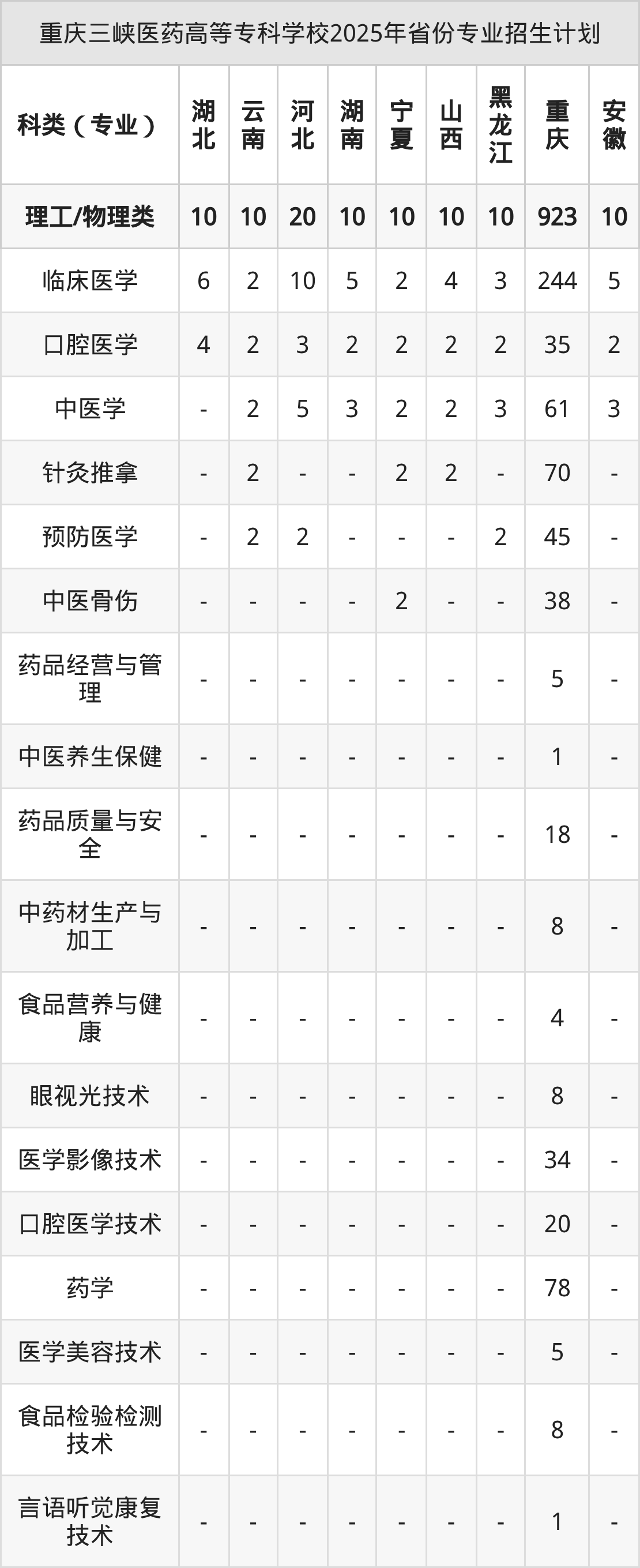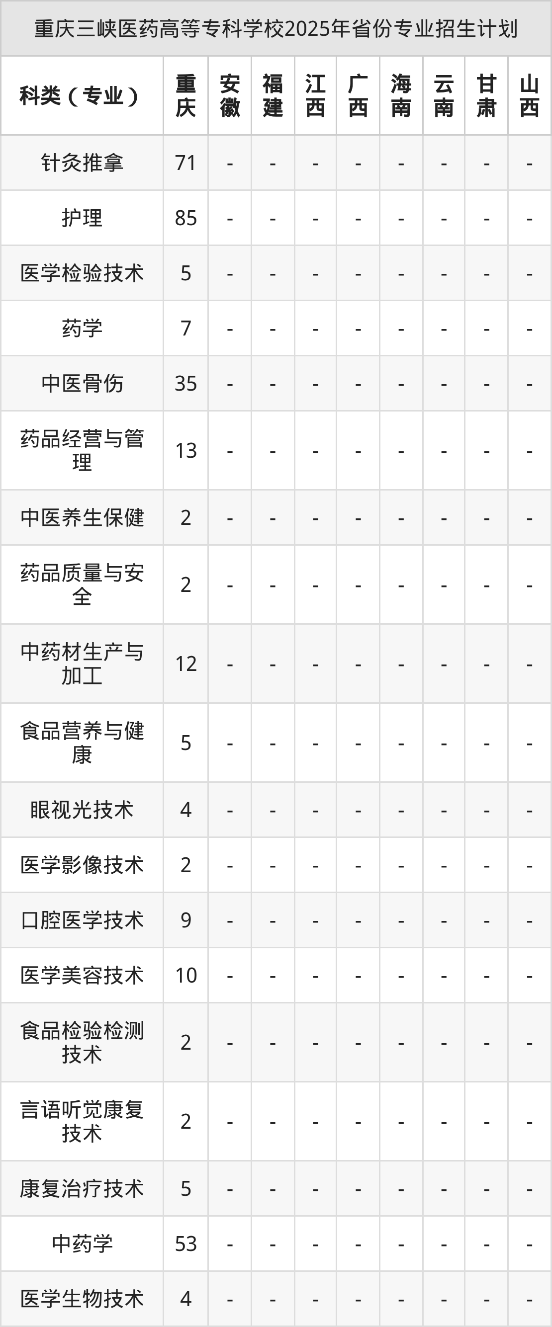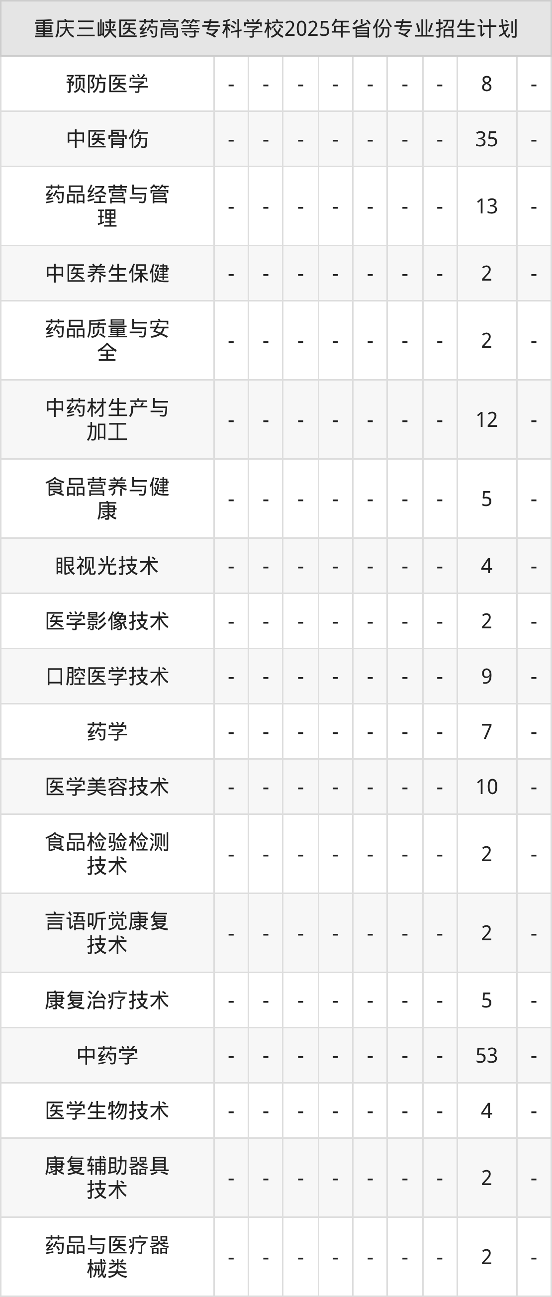 2026年重庆三峡医药高等专科学校专科招生计划待公布,下面附上2025年数据,暂供参考: