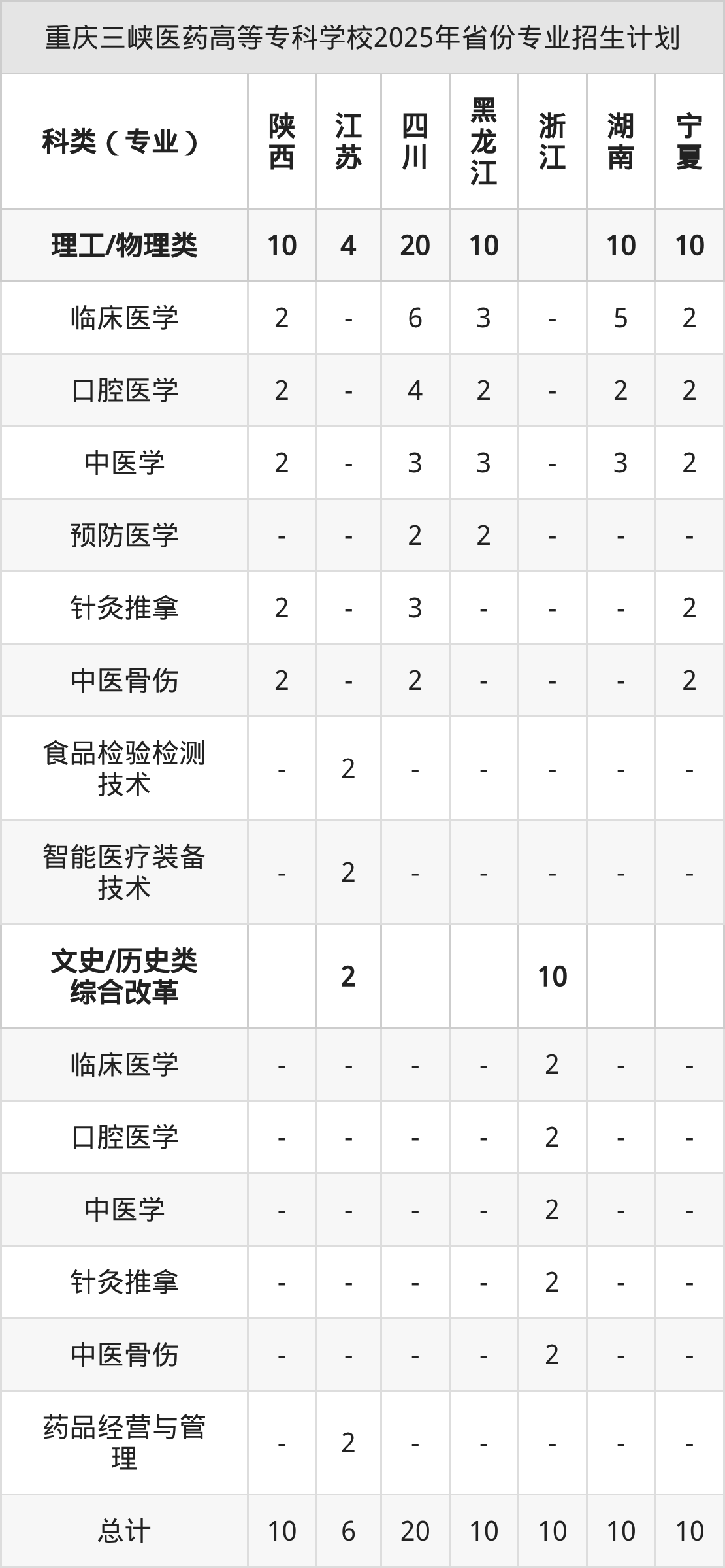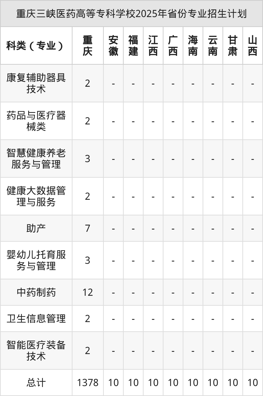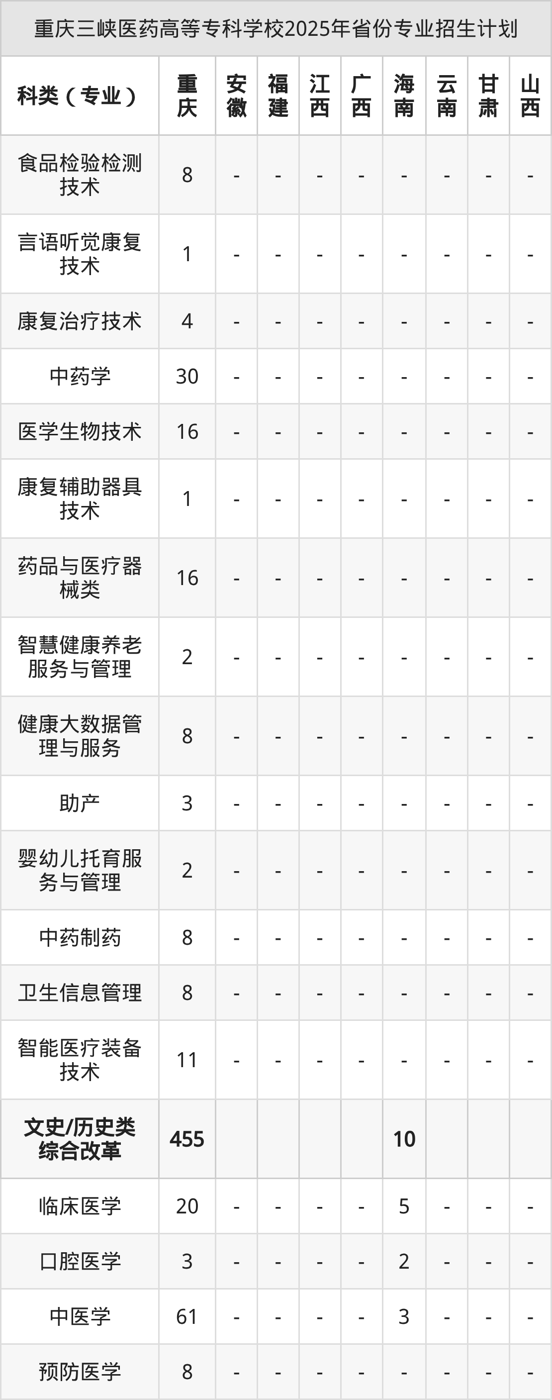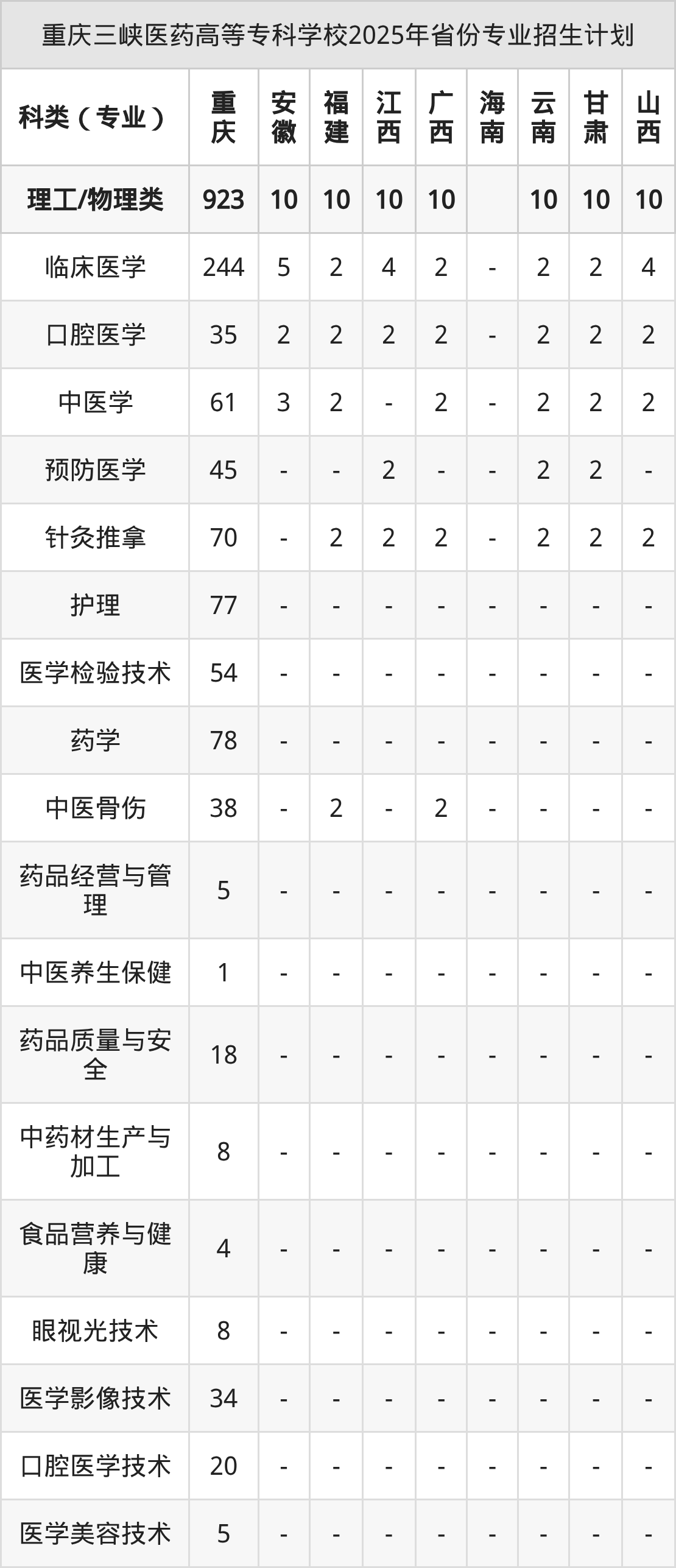 2026年重庆三峡医药高等专科学校专科招生计划待公布,下面附上2025年数据,暂供参考: