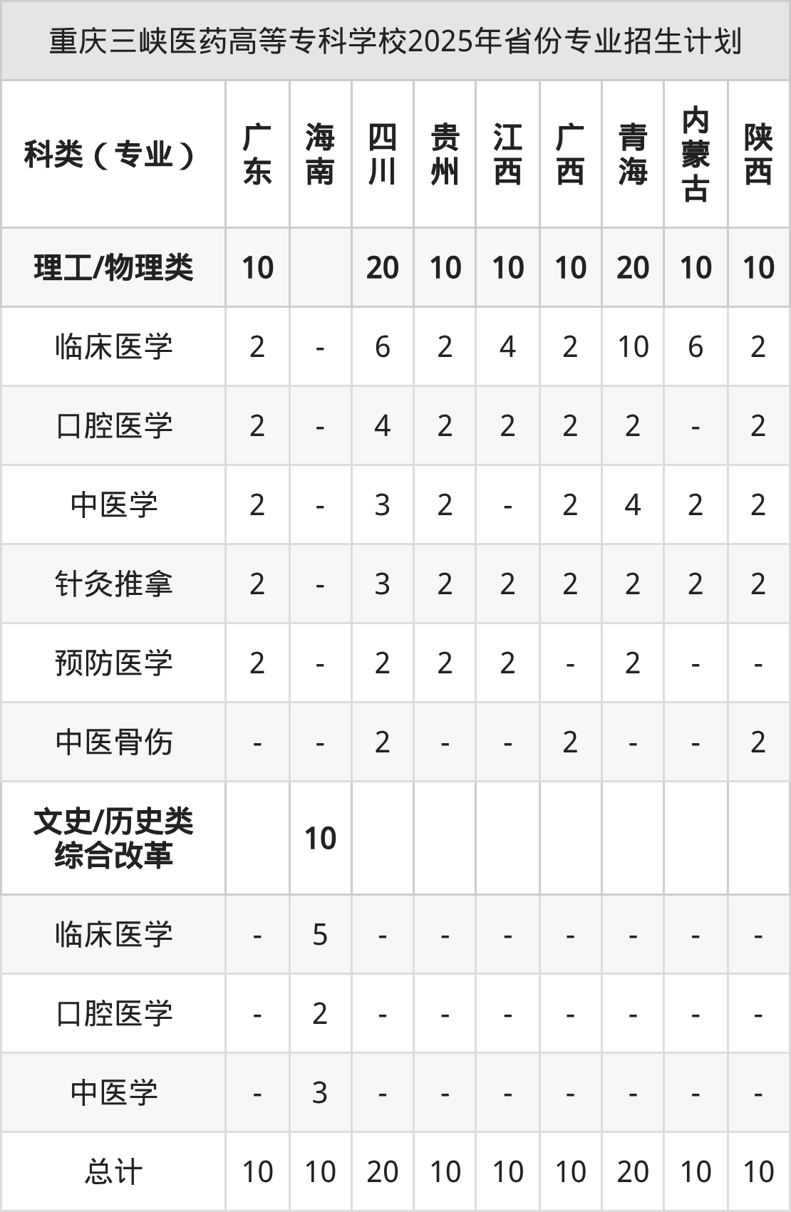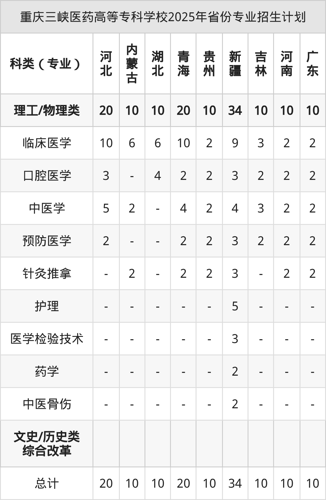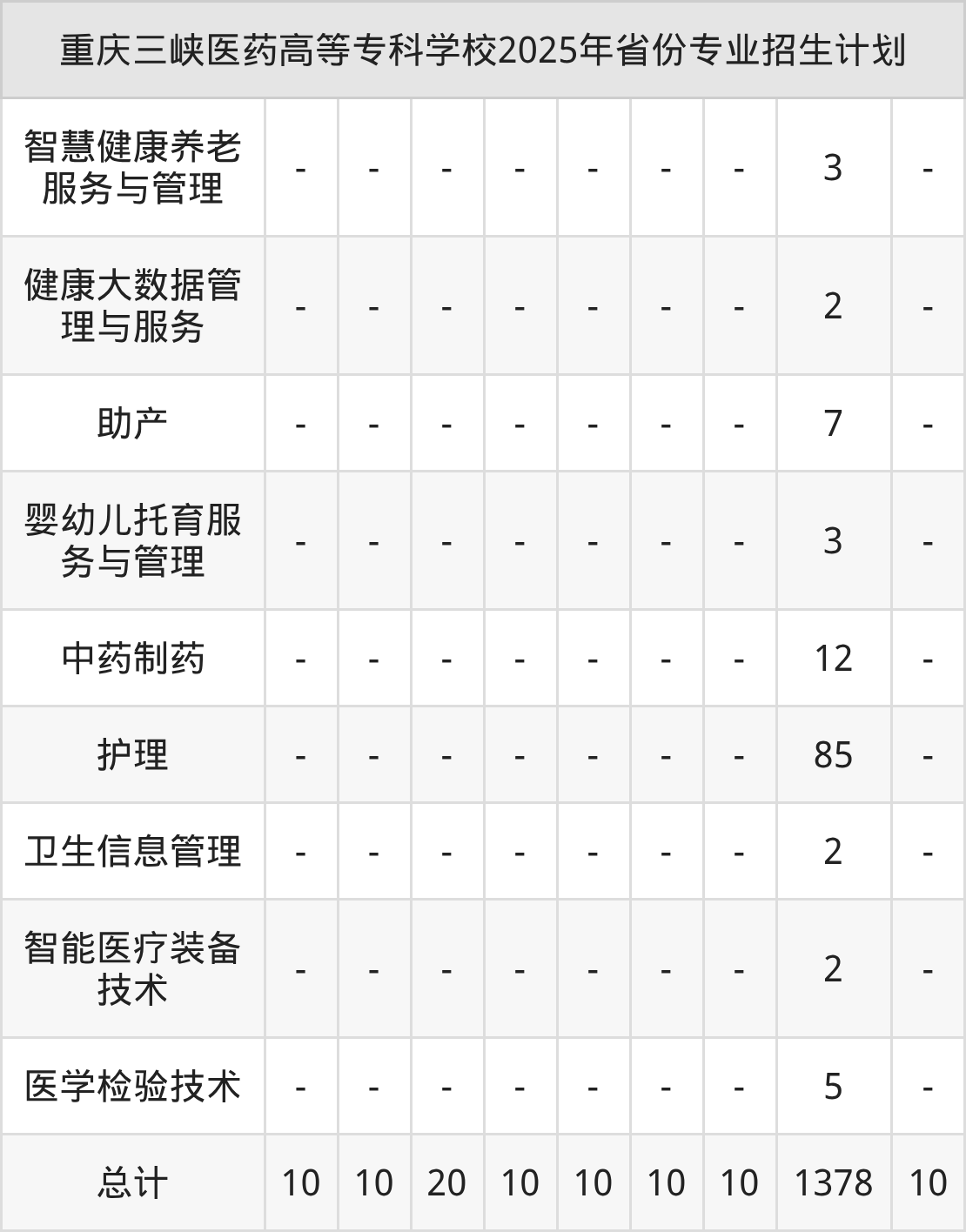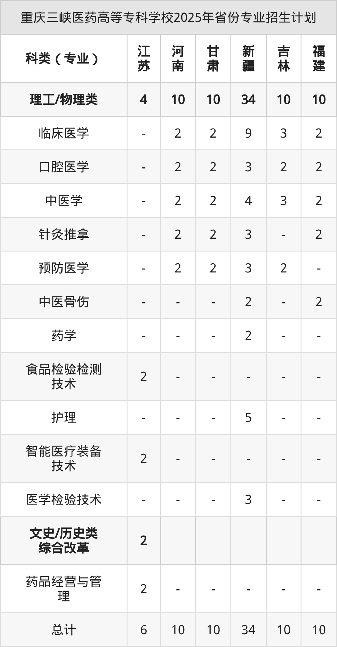 2026年重庆三峡医药高等专科学校专科招生计划待公布,下面附上2025年数据,暂供参考: