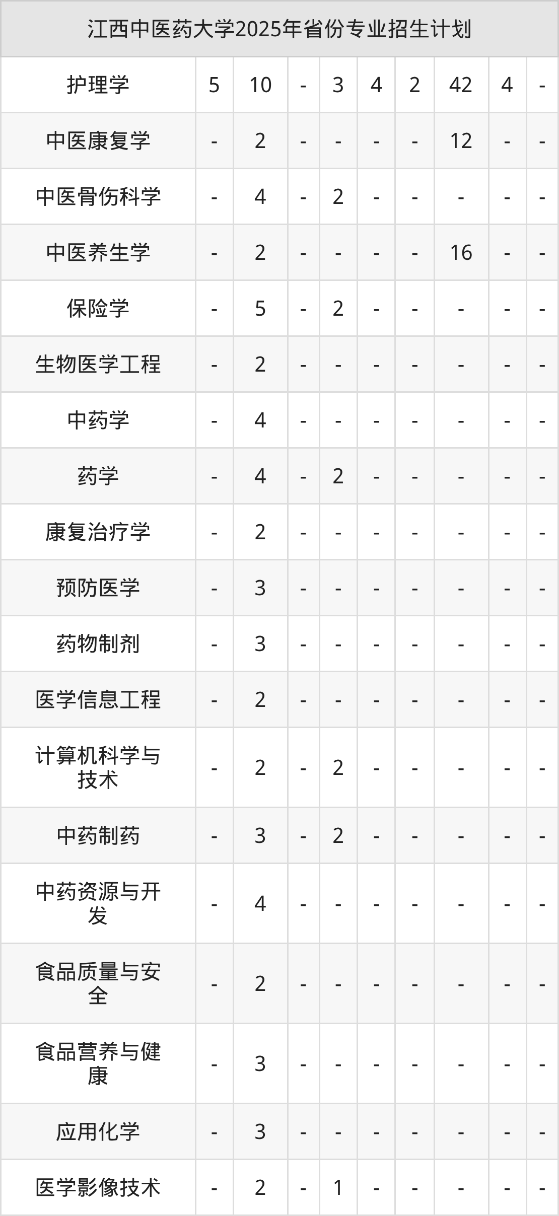 | 江西中医药大学本科招生专业 | |