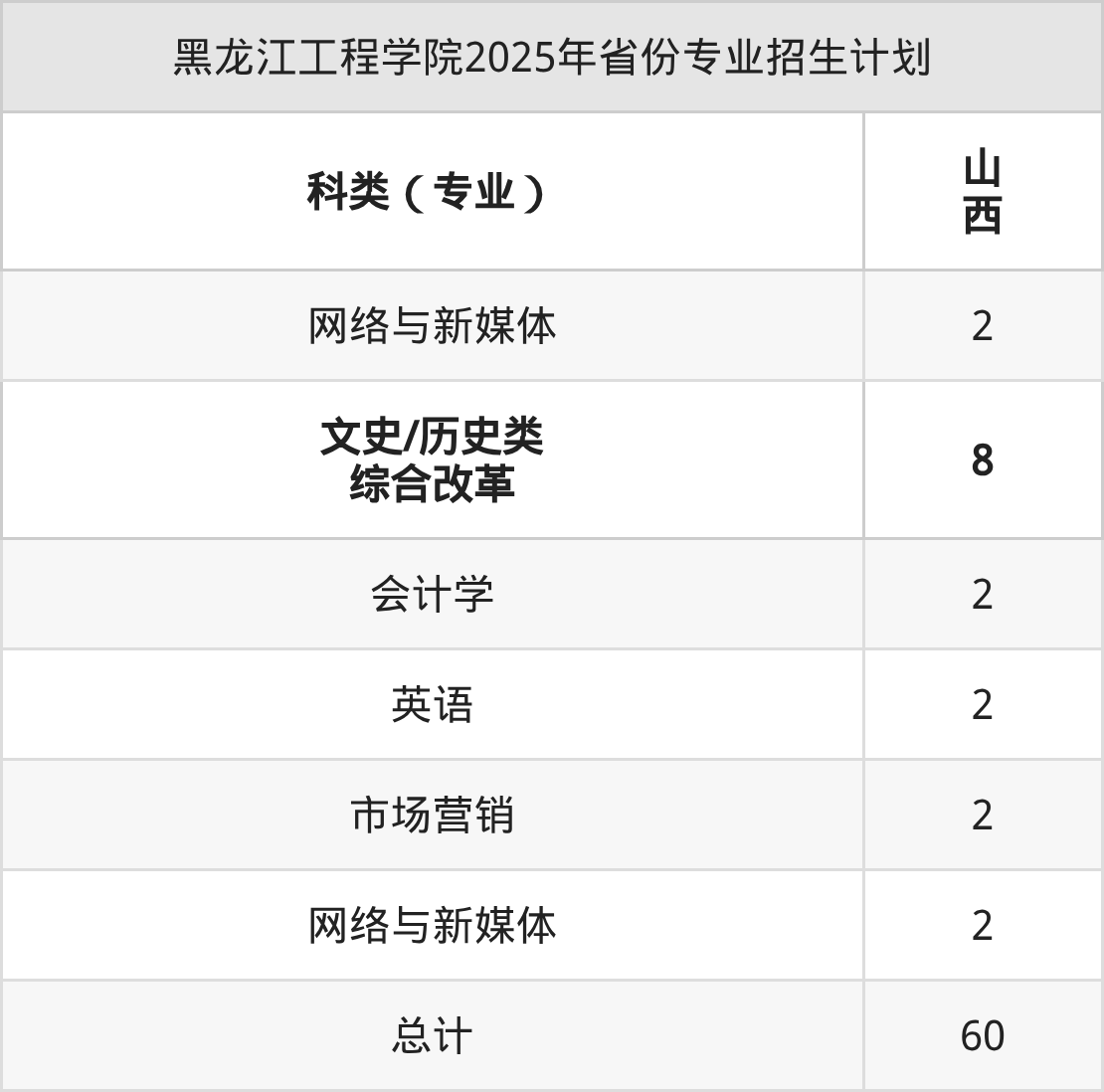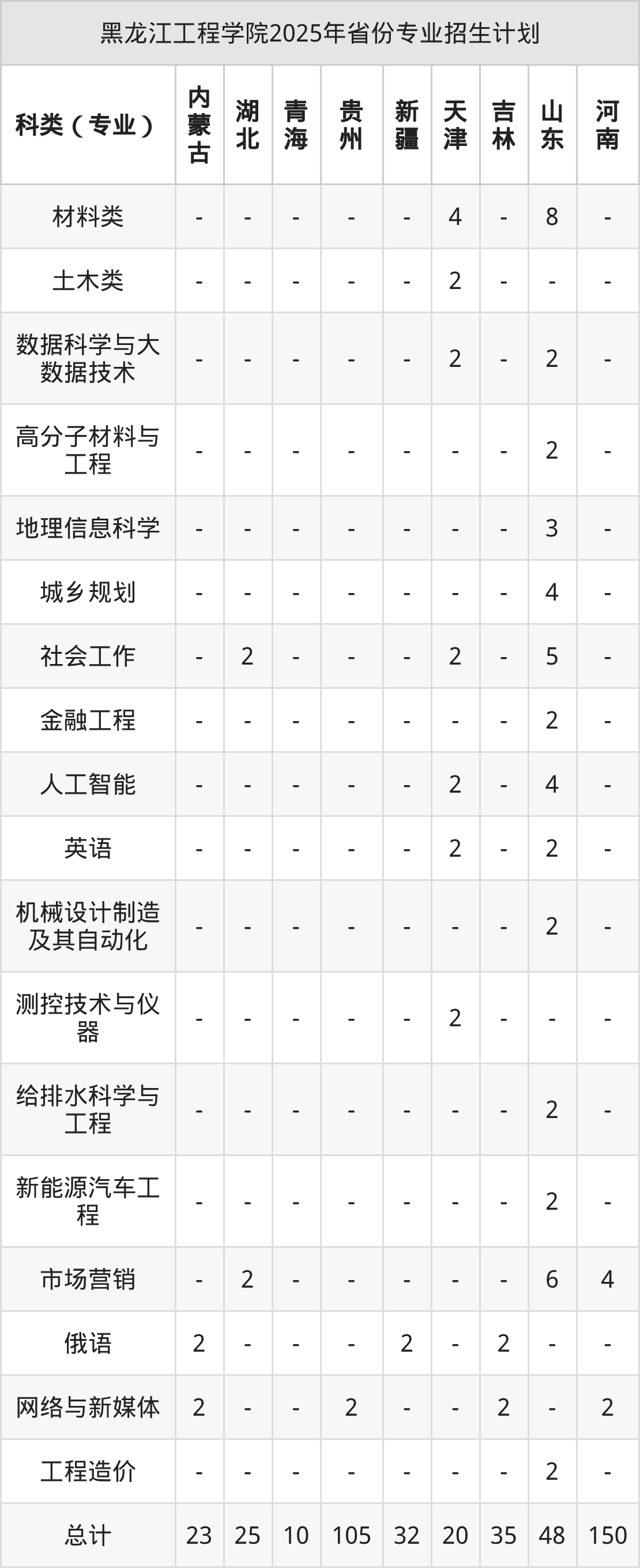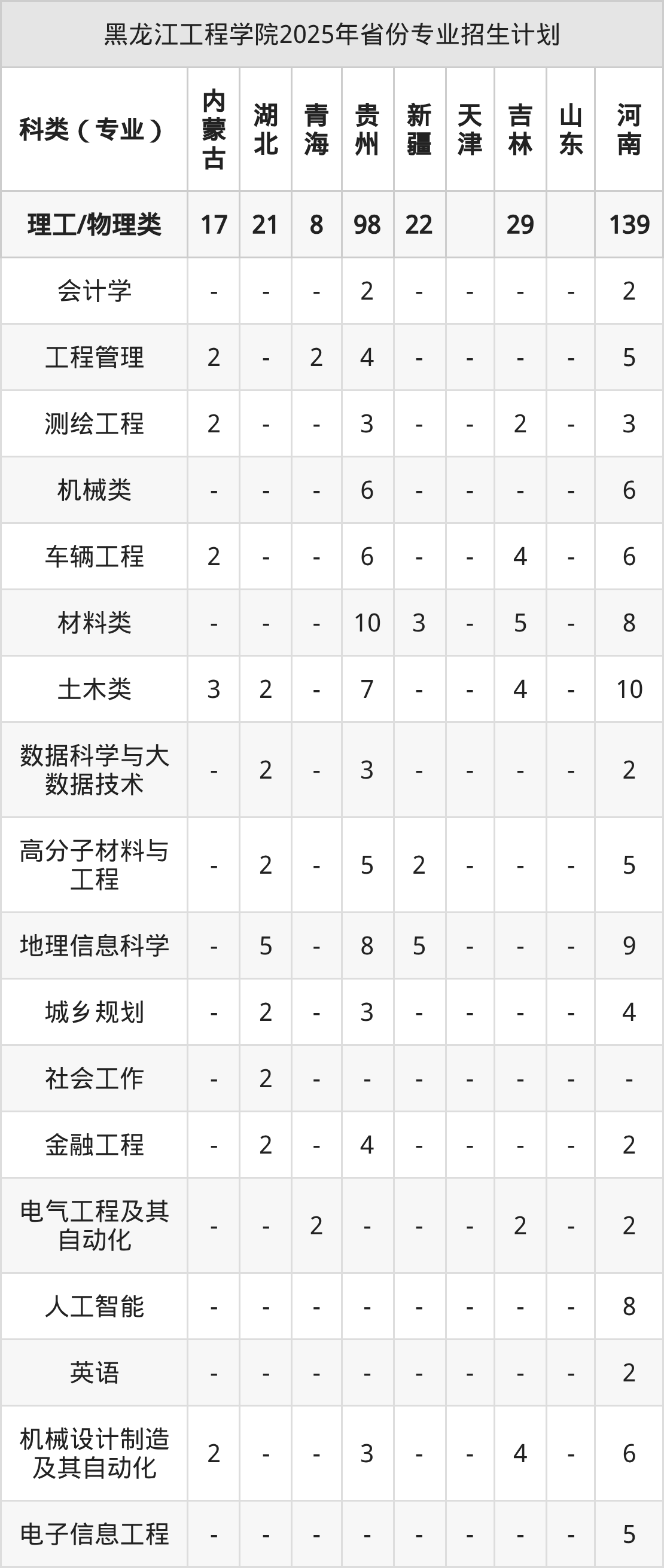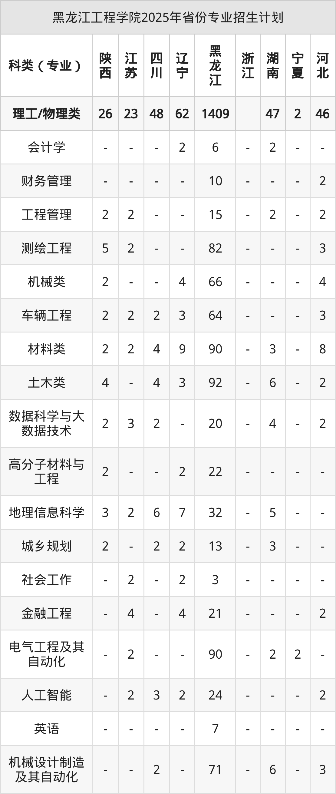 2026年黑龙江工程学院本科招生计划待公布,下面附上2025年数据,暂供参考: