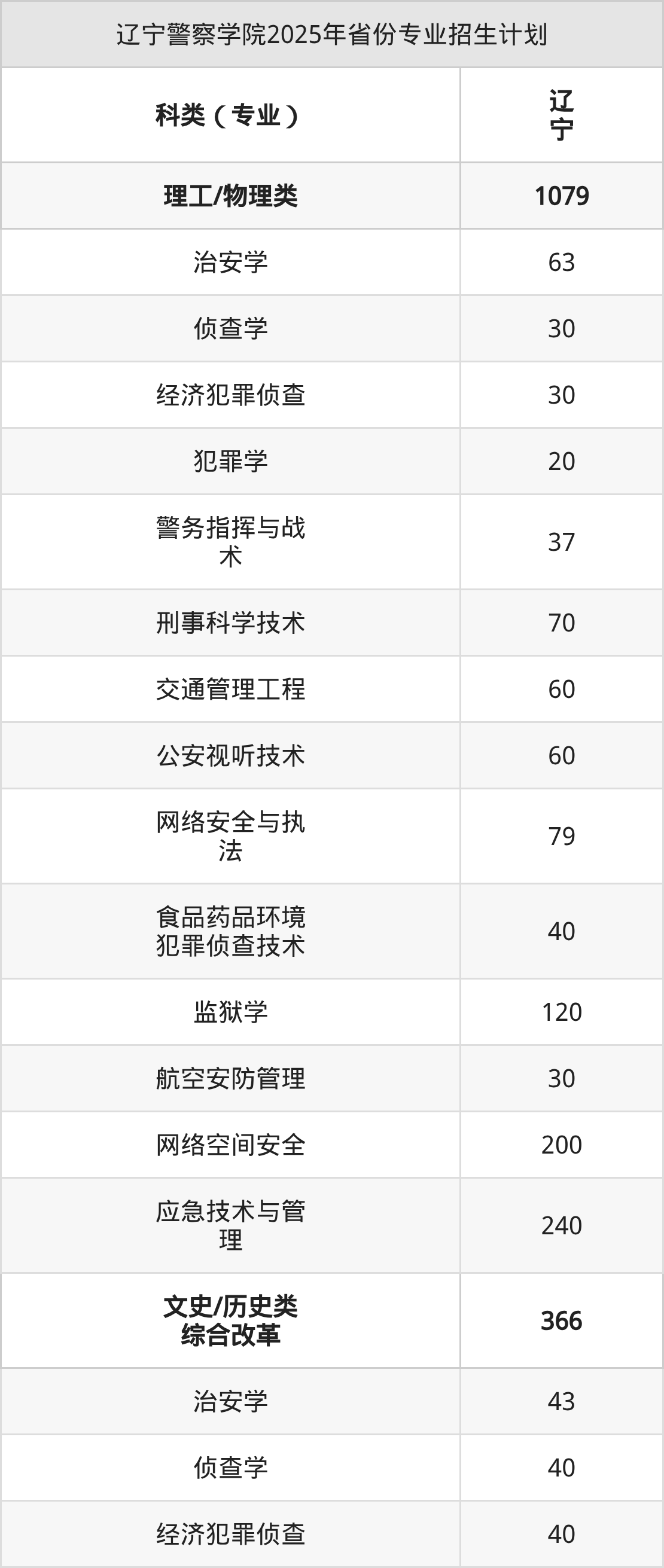 2026年辽宁警察学院本科招生计划待公布,下面附上2025年数据,暂供参考: