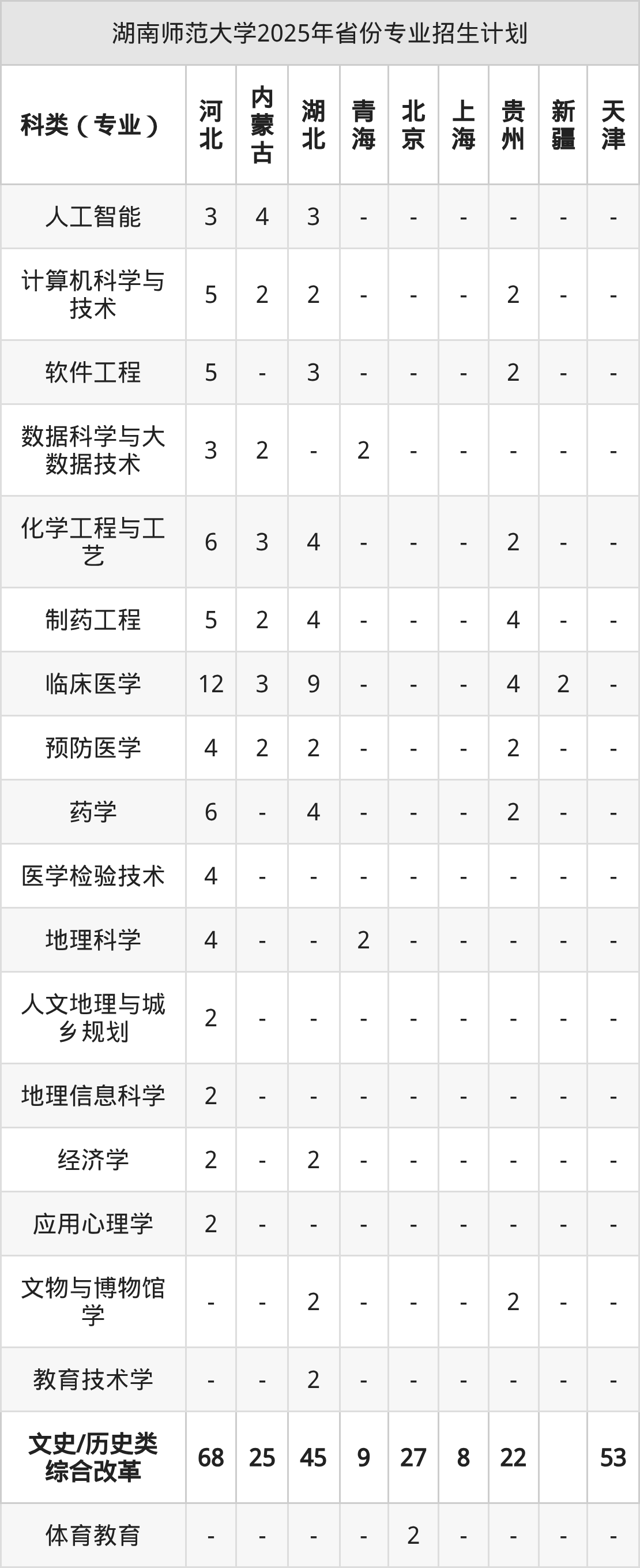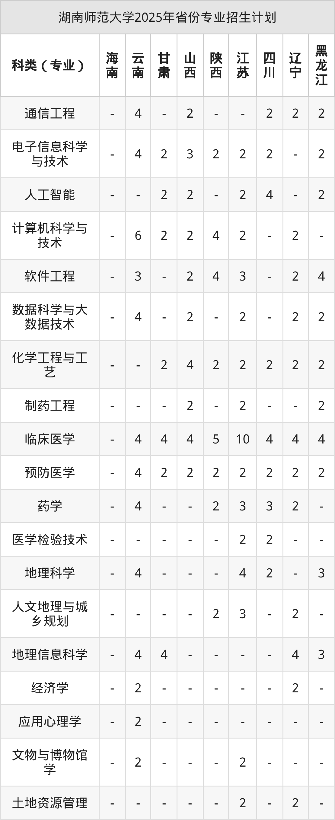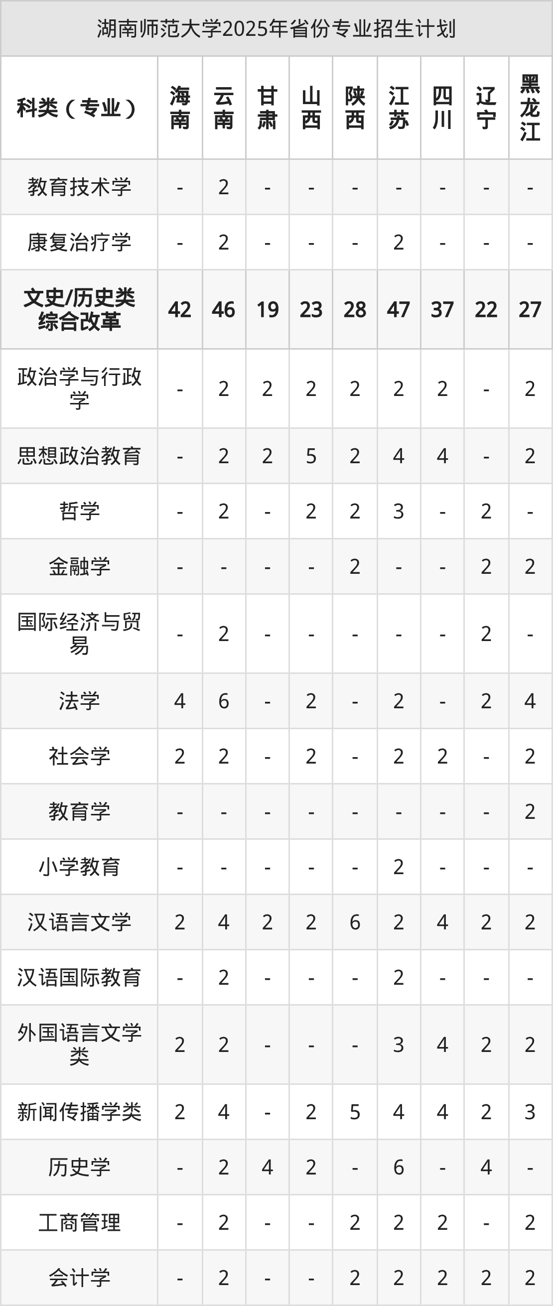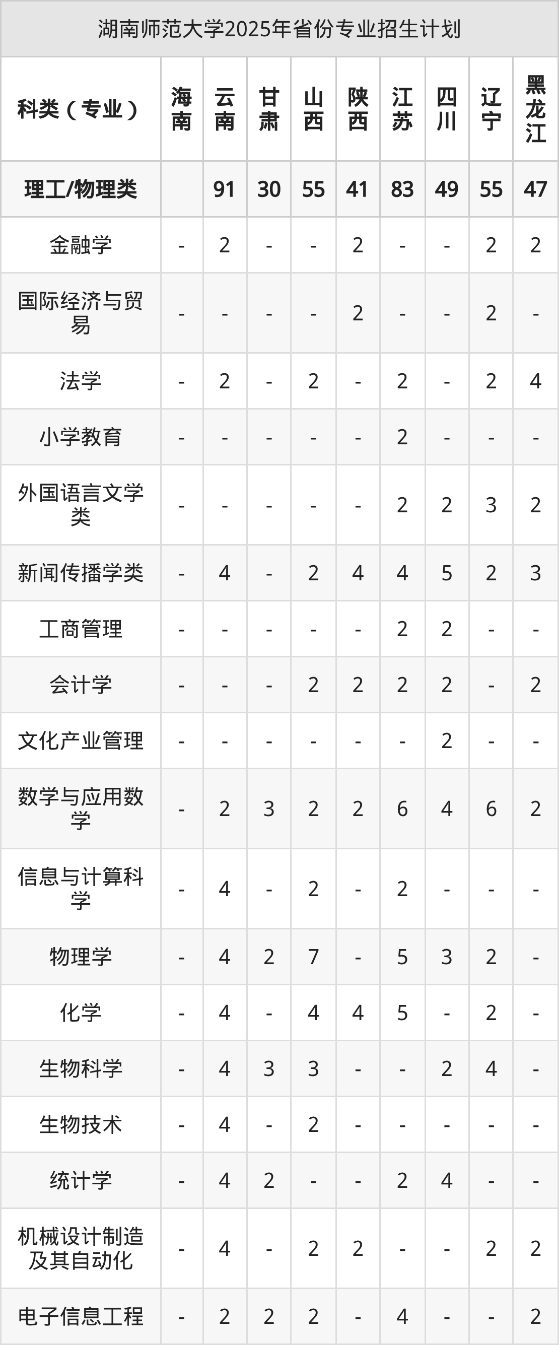 2026年湖南师范大学本科招生计划待公布,下面附上2025年数据,暂供参考: