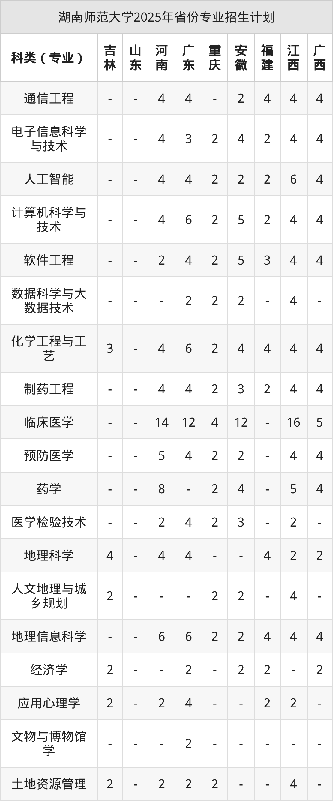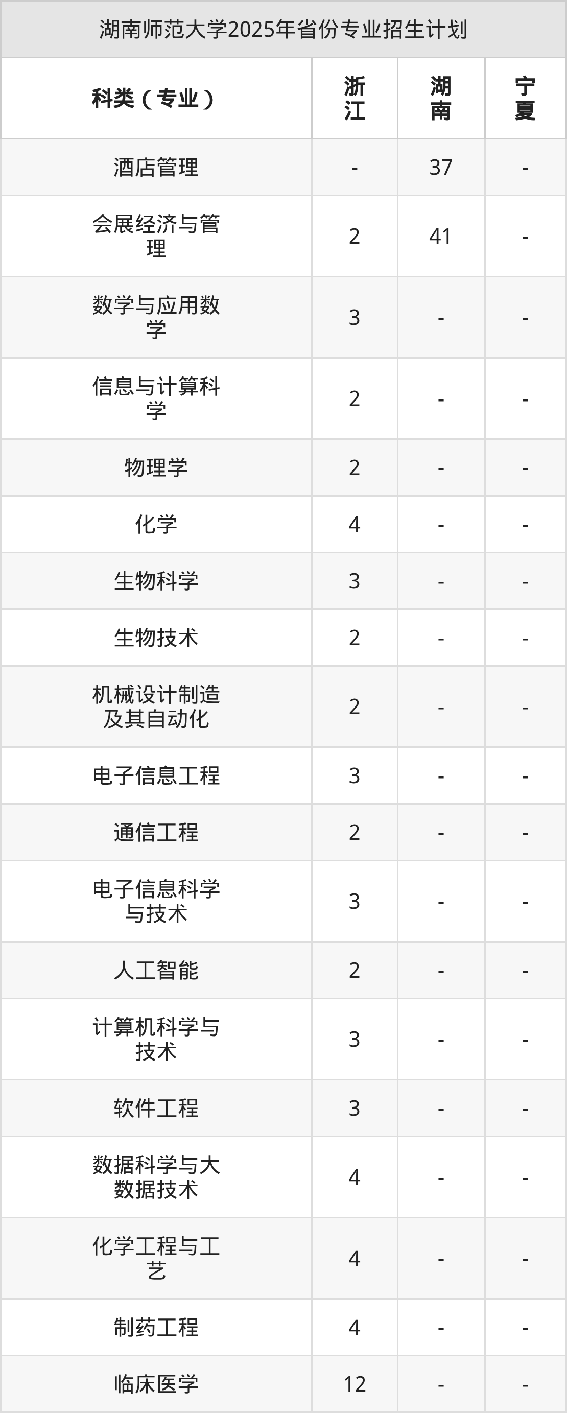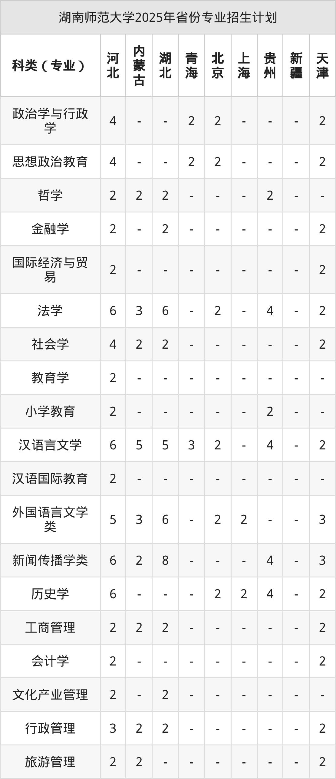 | 湖南师范大学本科招生专业 | |