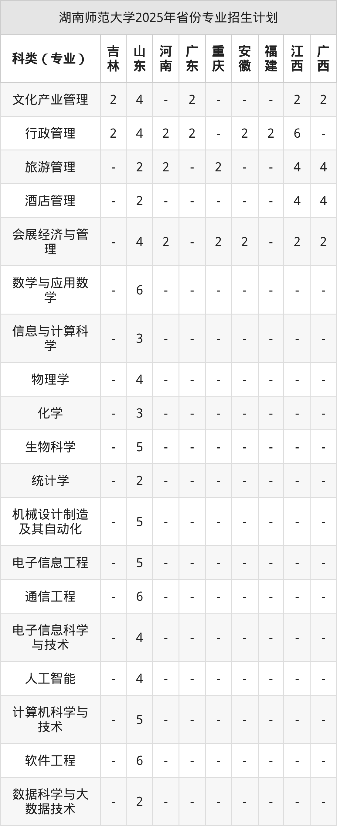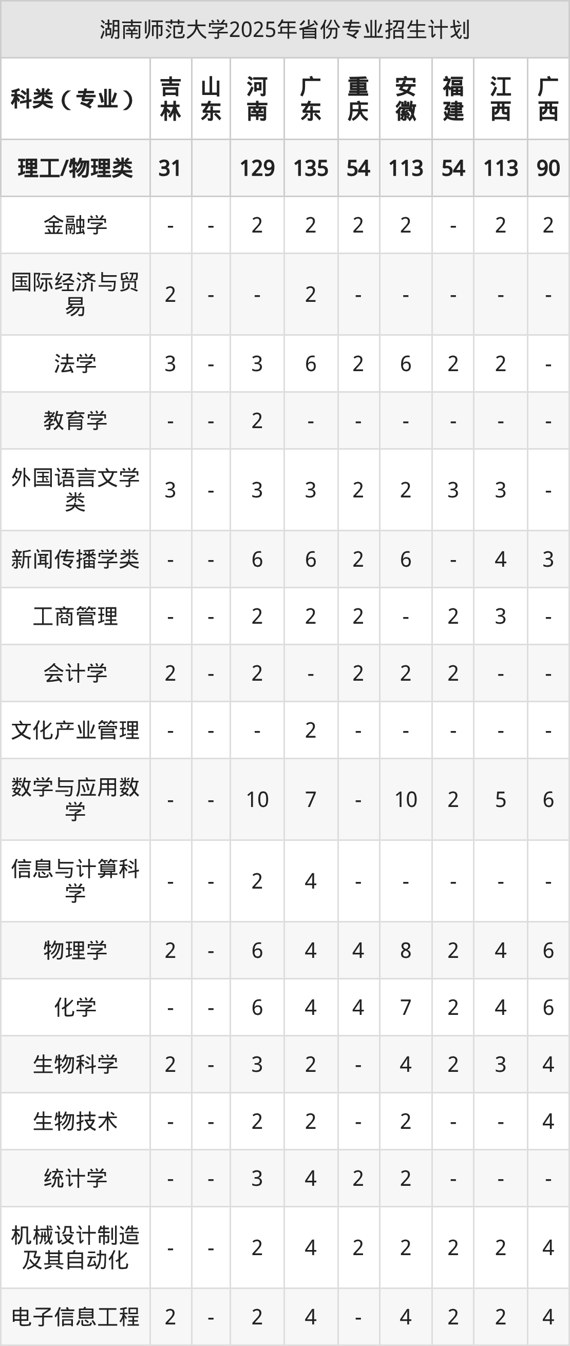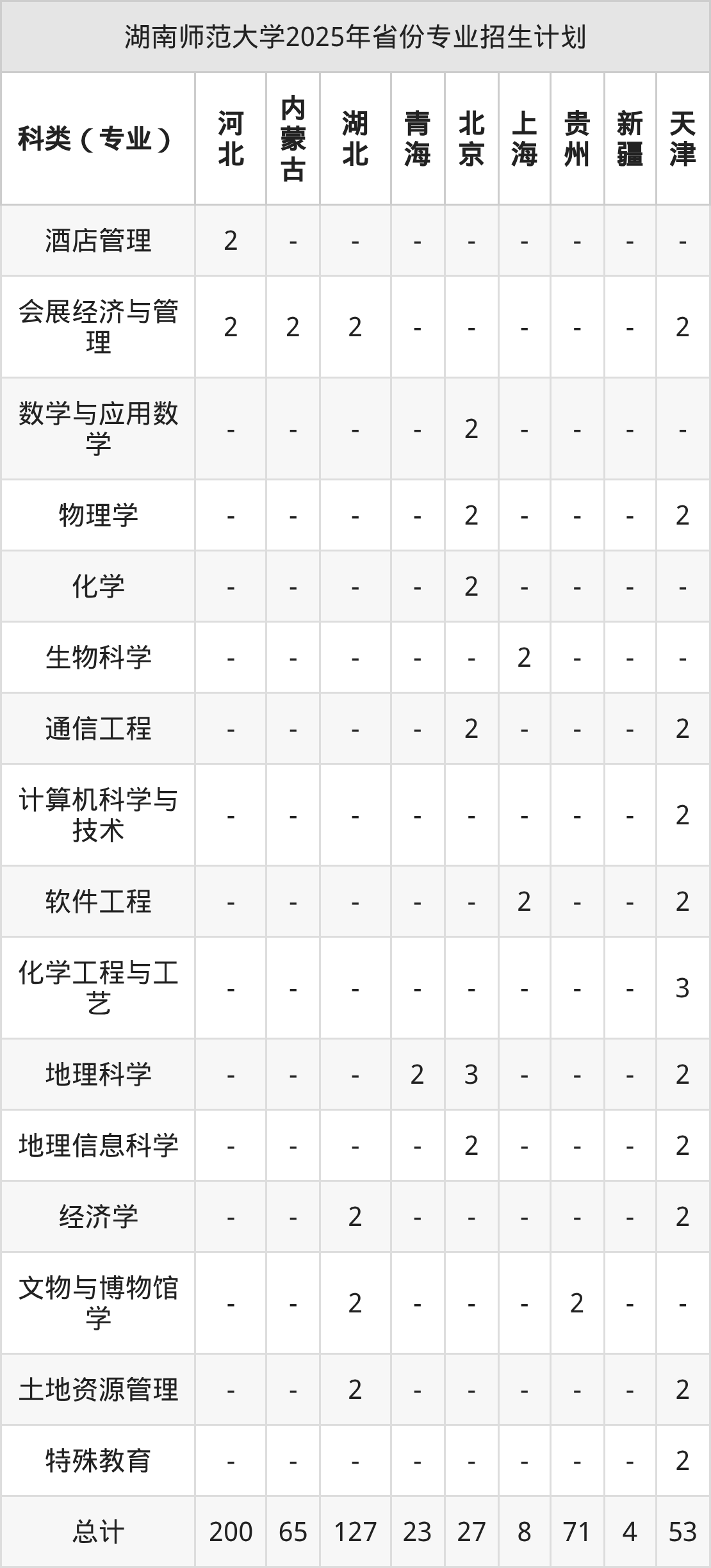 | 湖南师范大学本科招生专业 | |