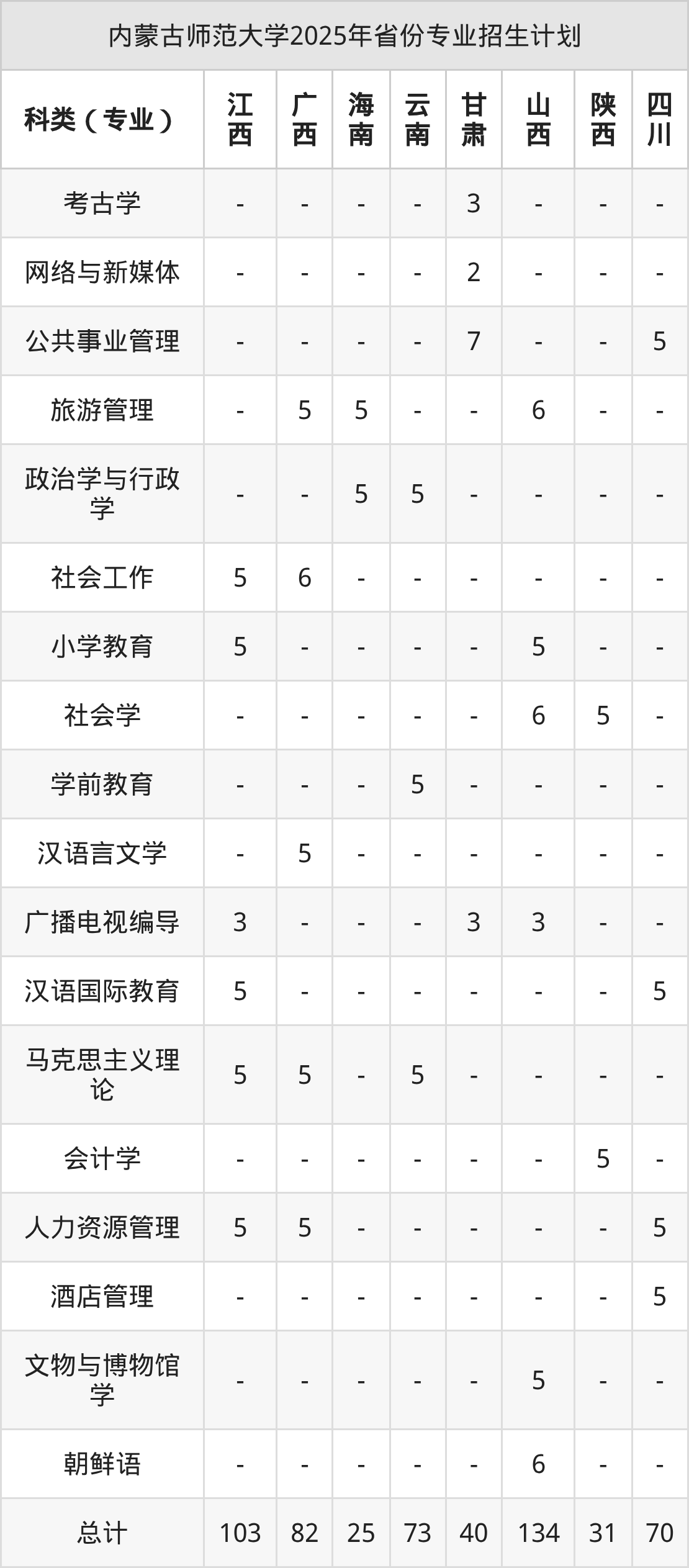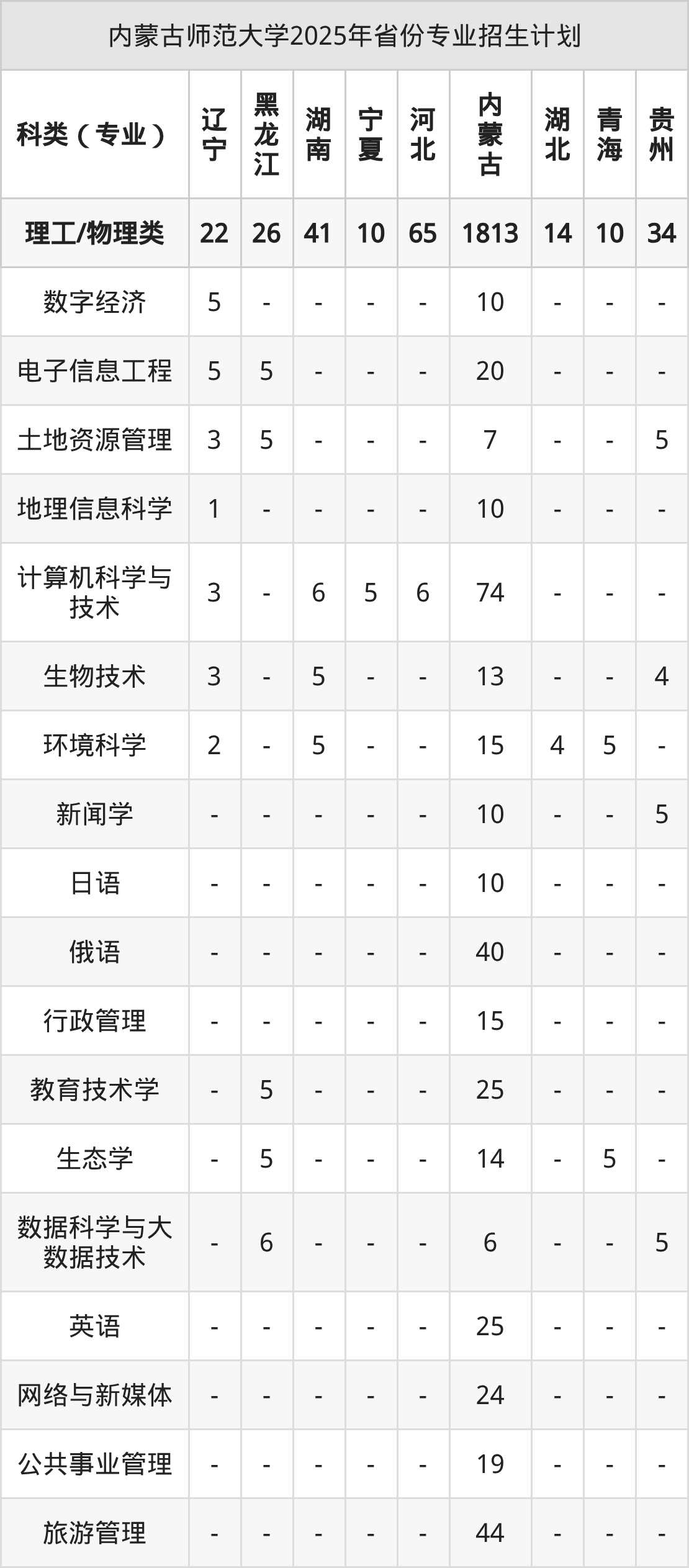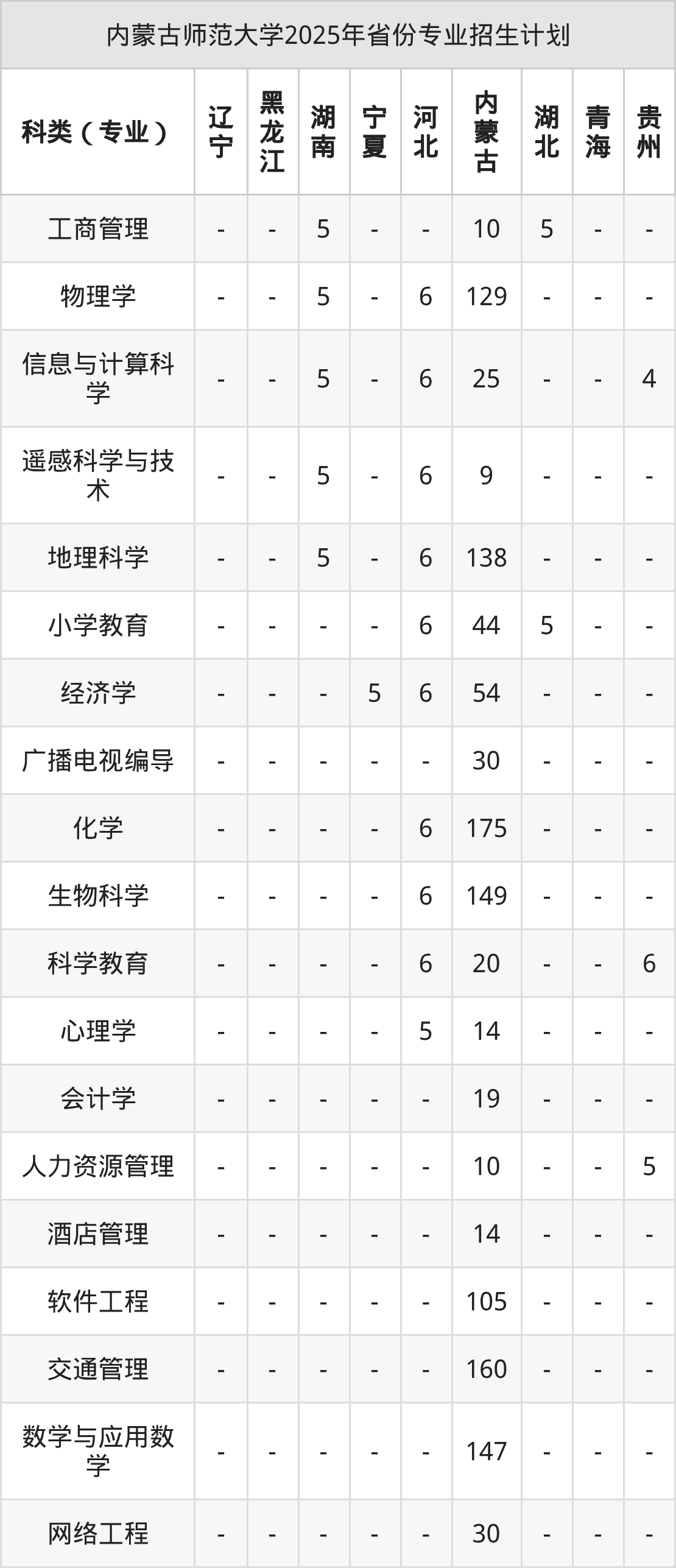 2026年内蒙古师范大学本科招生计划待公布,下面附上2025年数据,暂供参考: