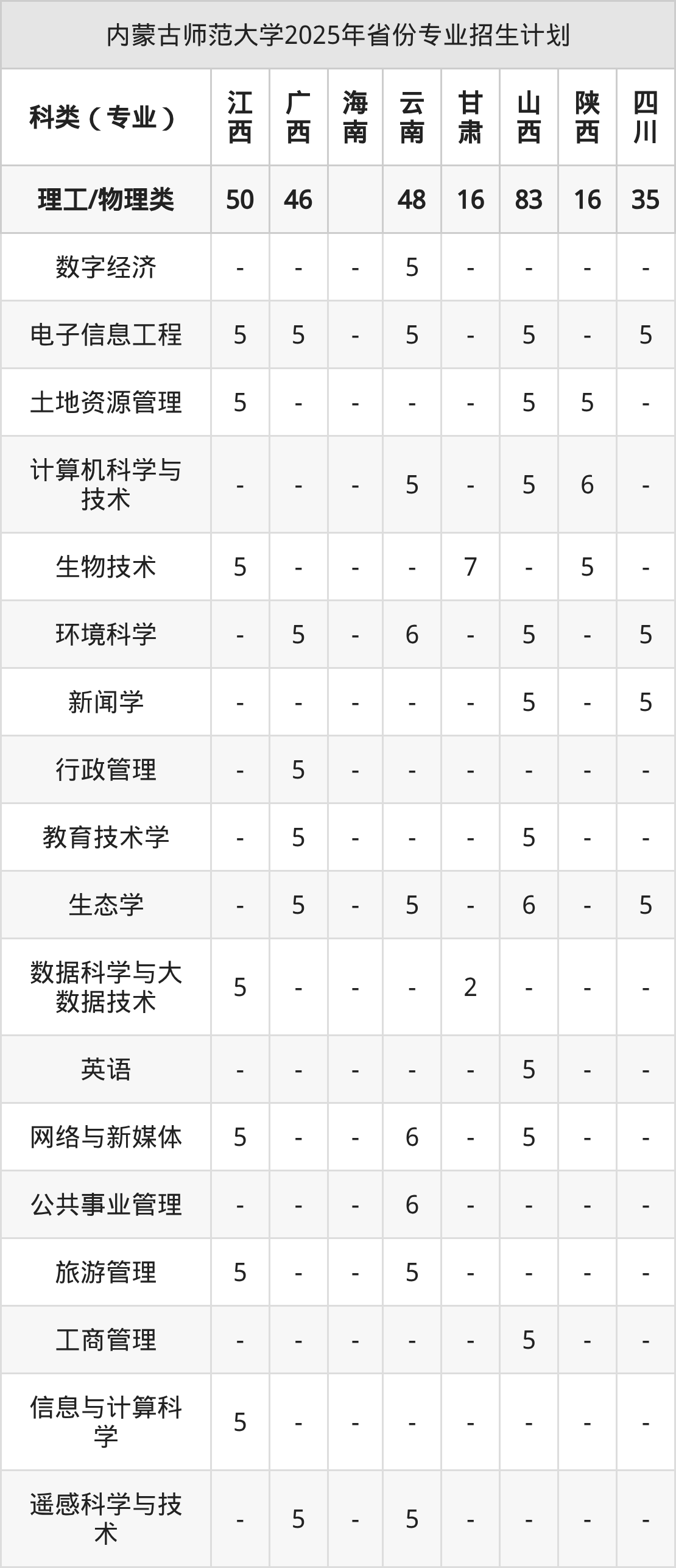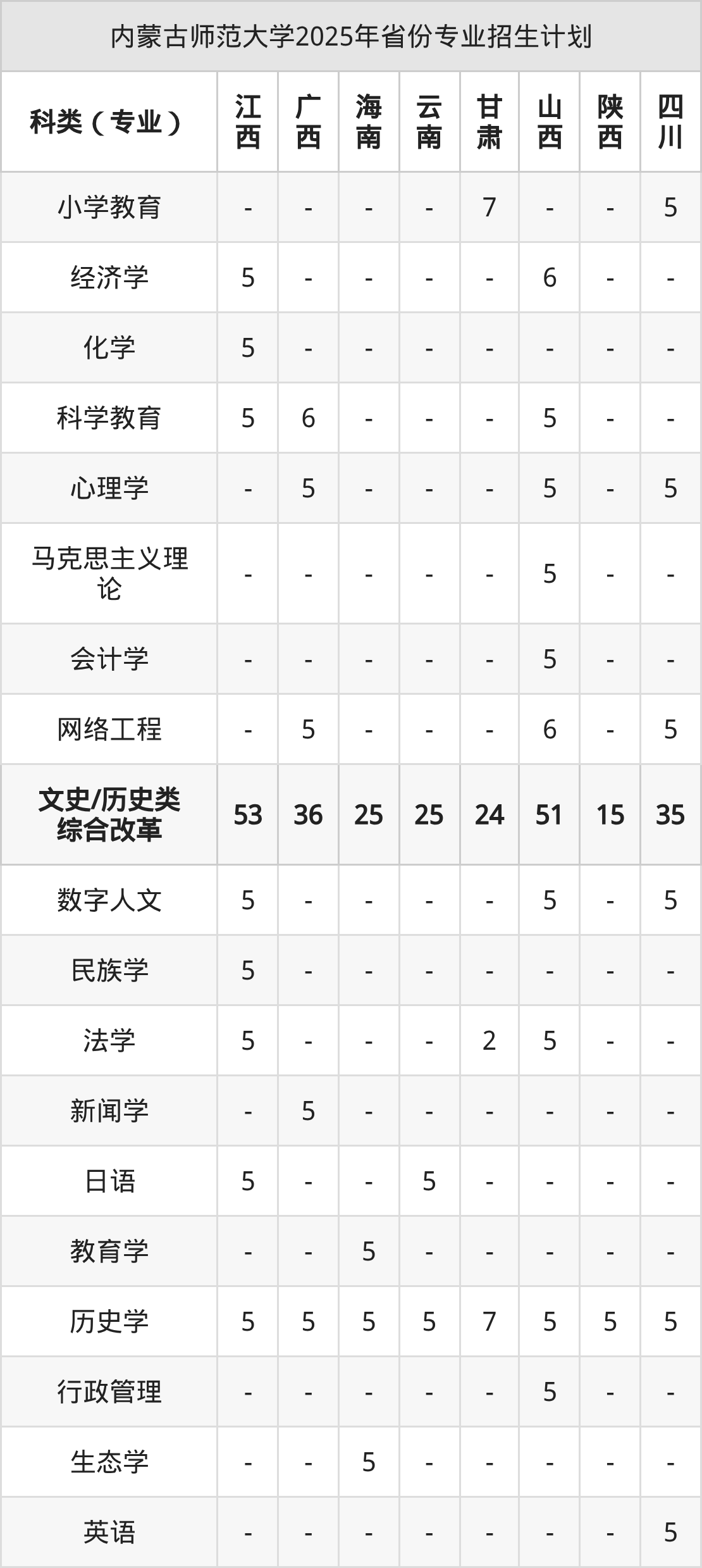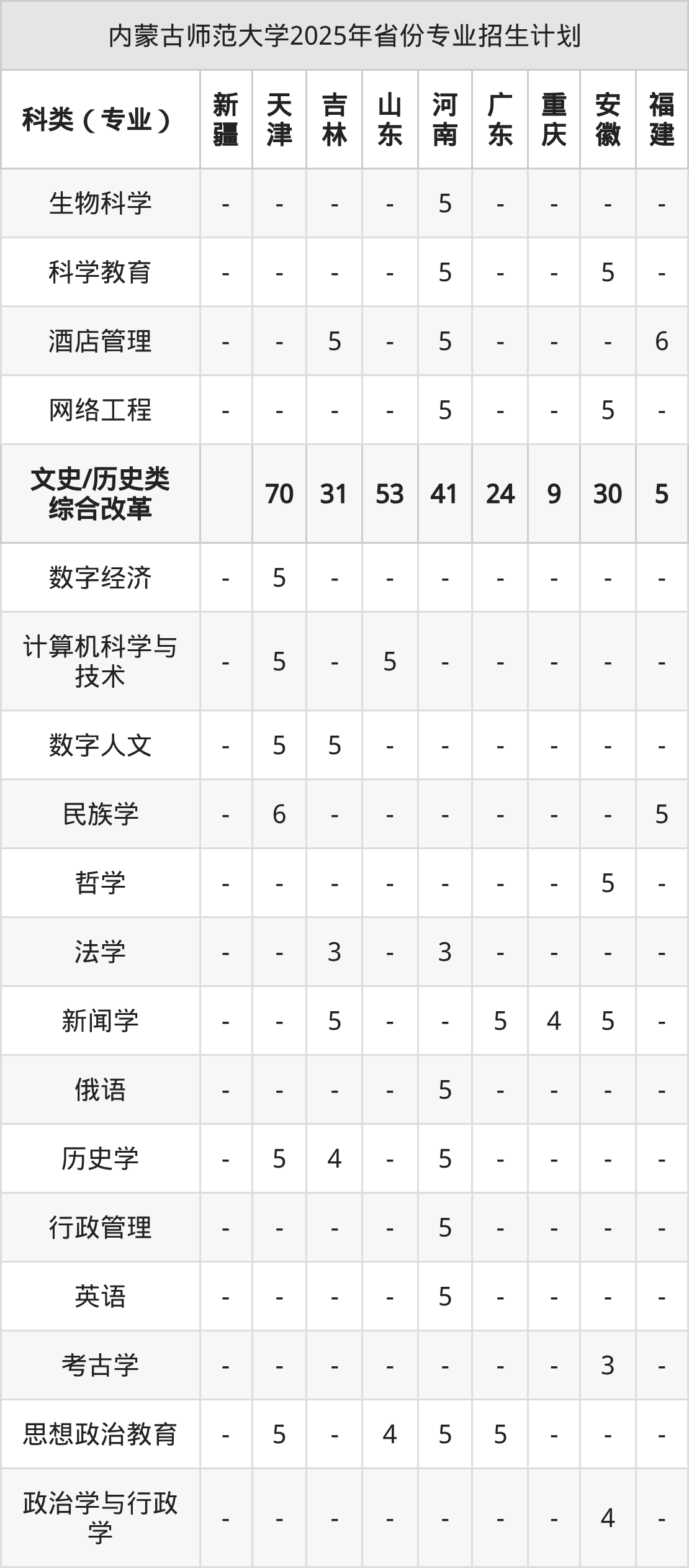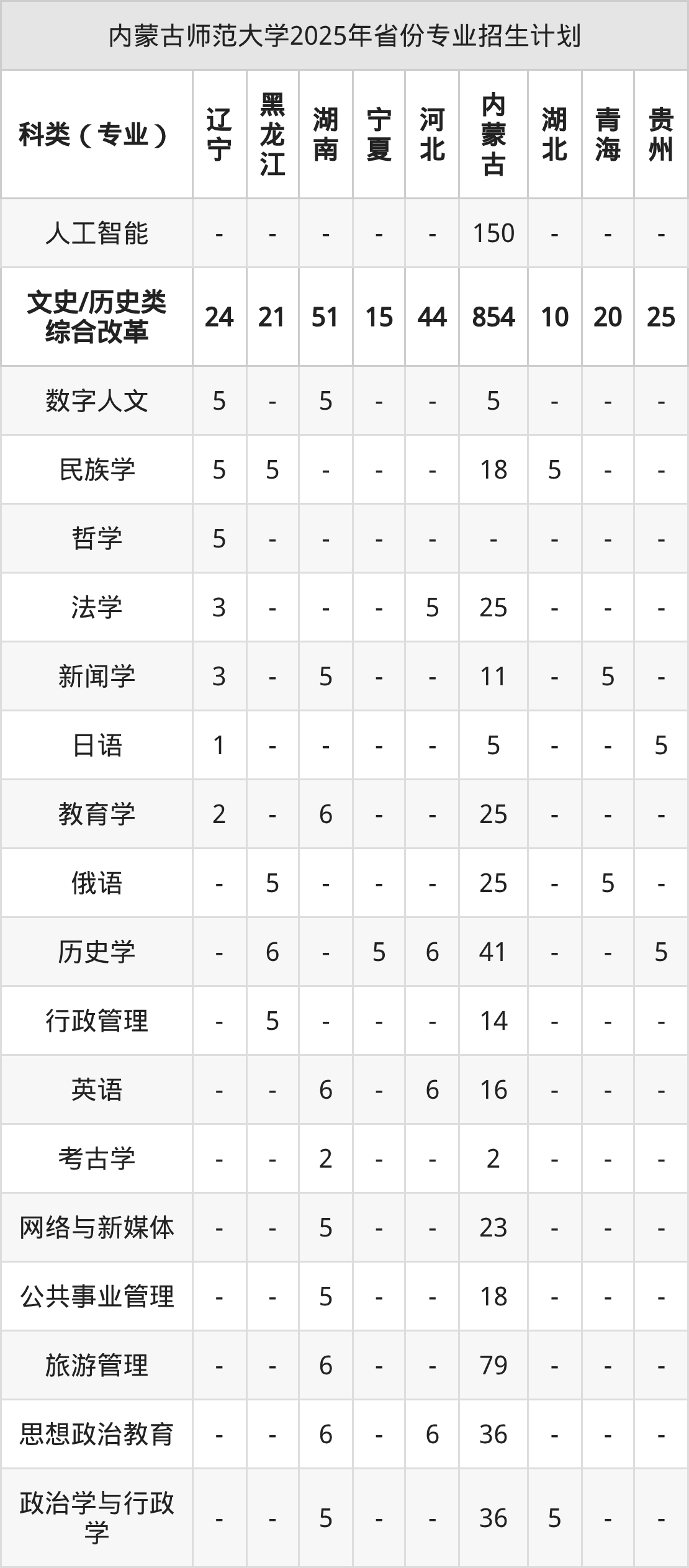 2026年内蒙古师范大学本科招生计划待公布,下面附上2025年数据,暂供参考: