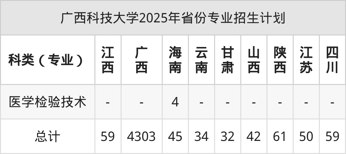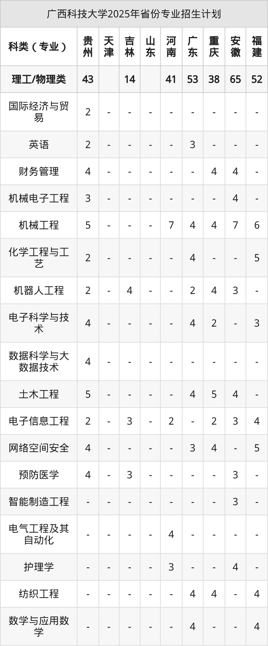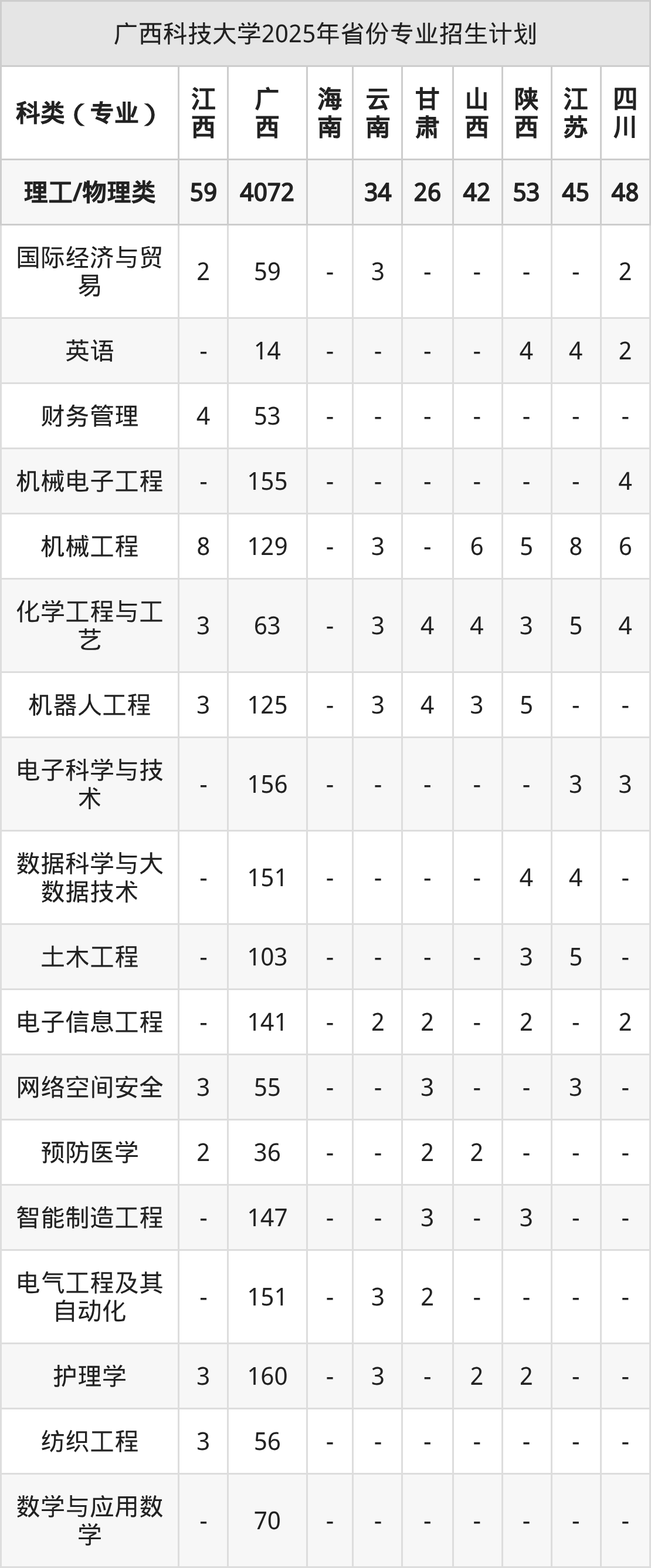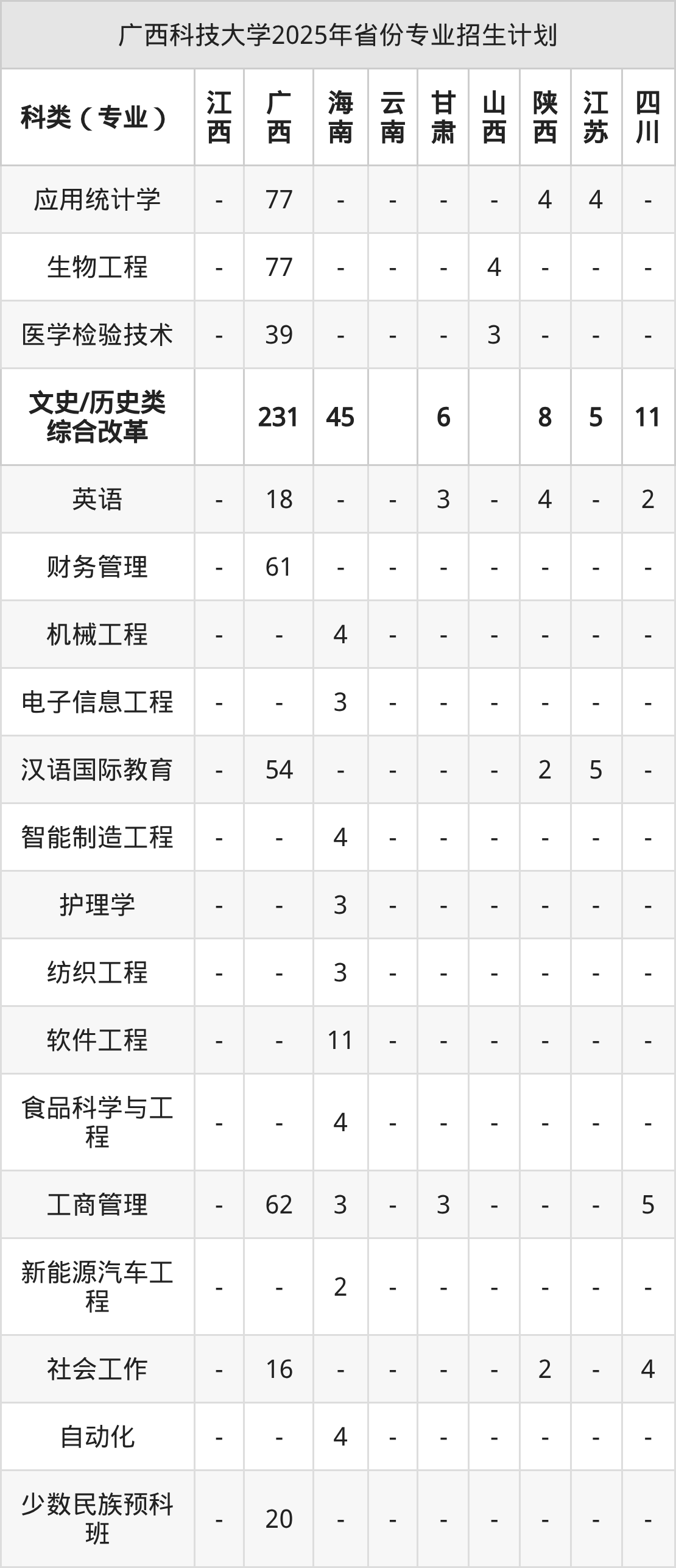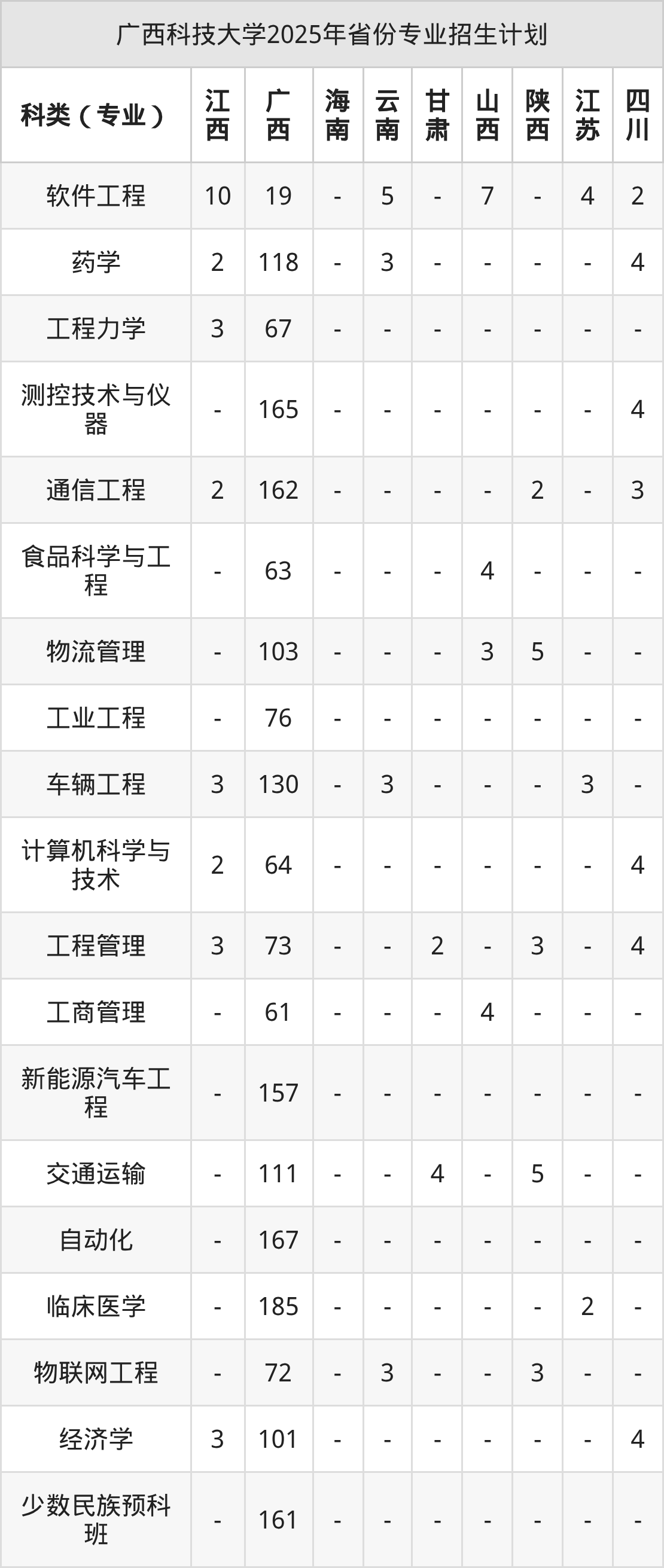 2026年广西科技大学本科招生计划待公布,下面附上2025年数据,暂供参考: