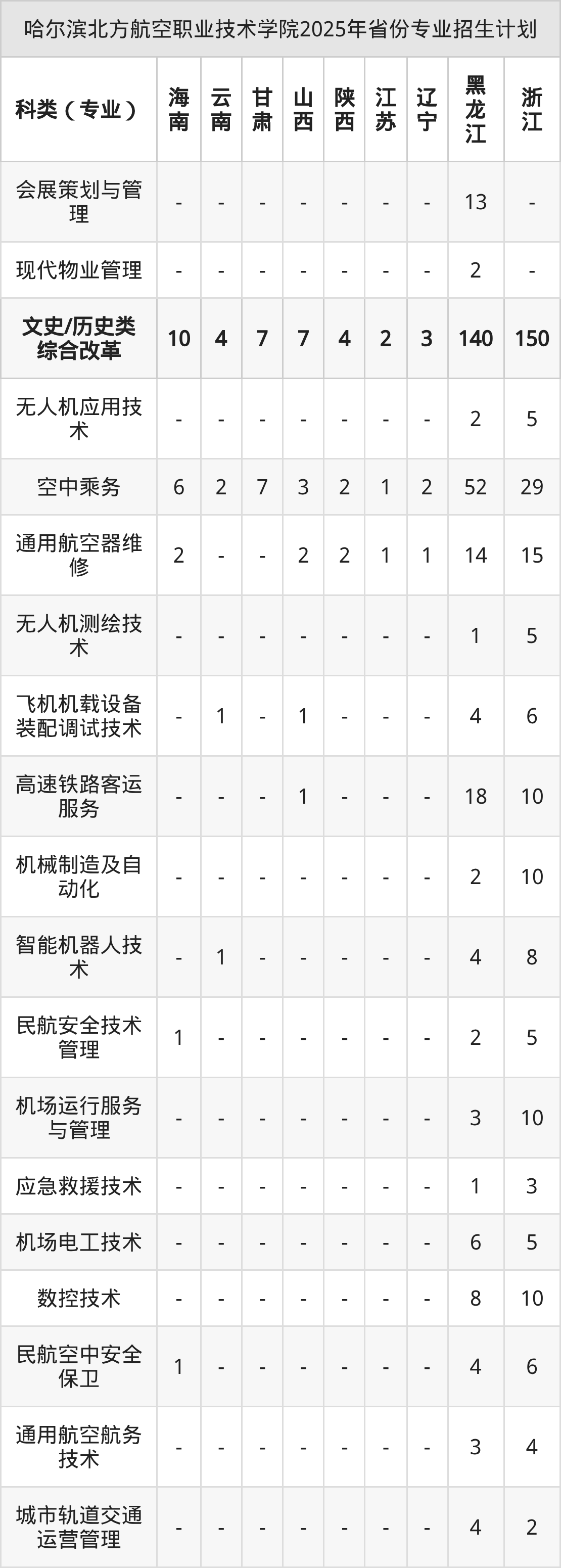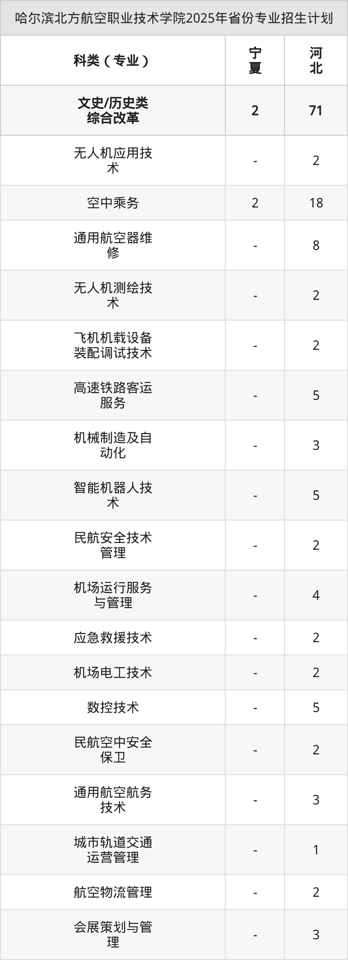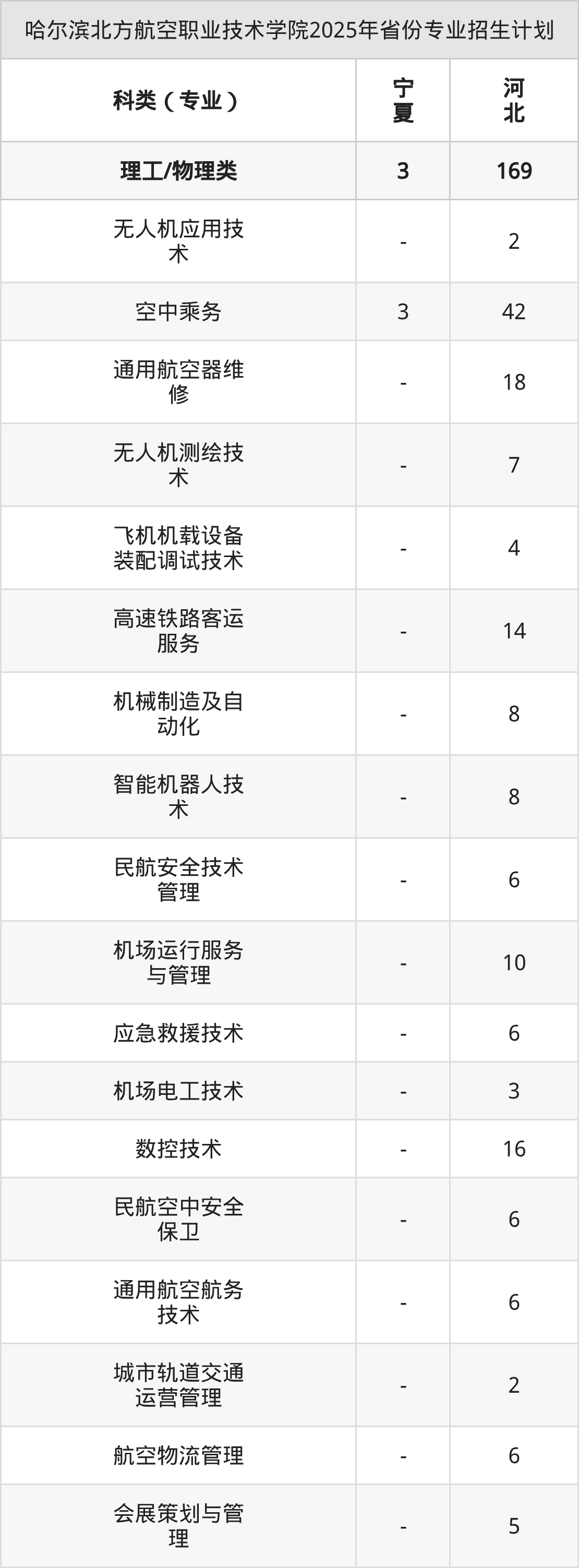 2026年哈尔滨北方航空职业技术学院专科招生计划待公布,下面附上2025年数据,暂供参考: