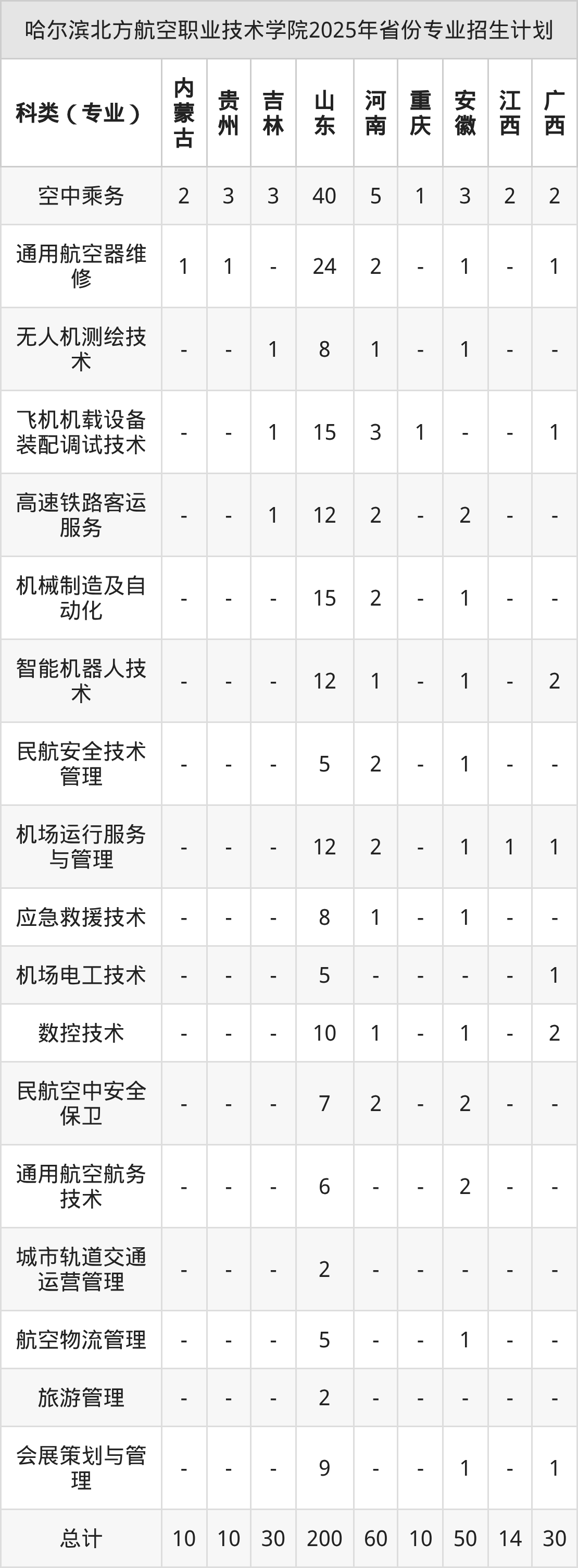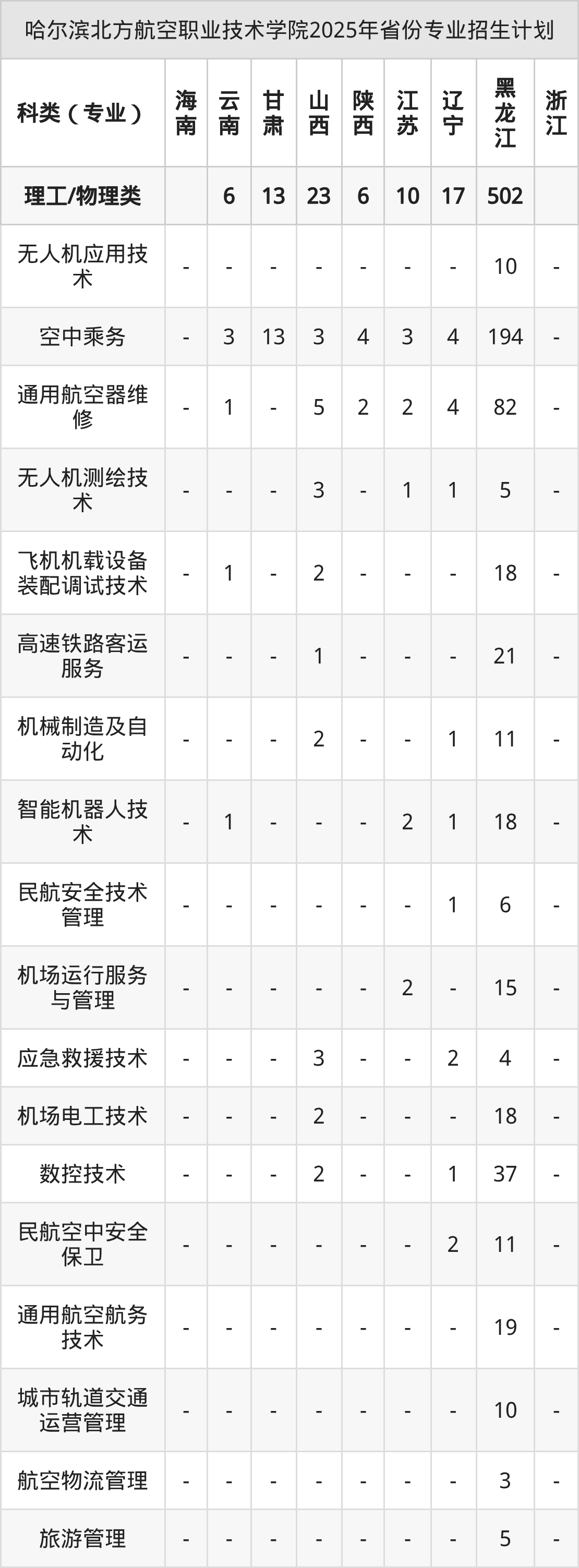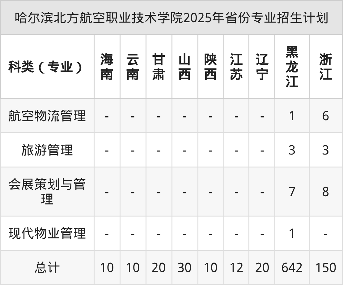 2026年哈尔滨北方航空职业技术学院专科招生计划待公布,下面附上2025年数据,暂供参考: