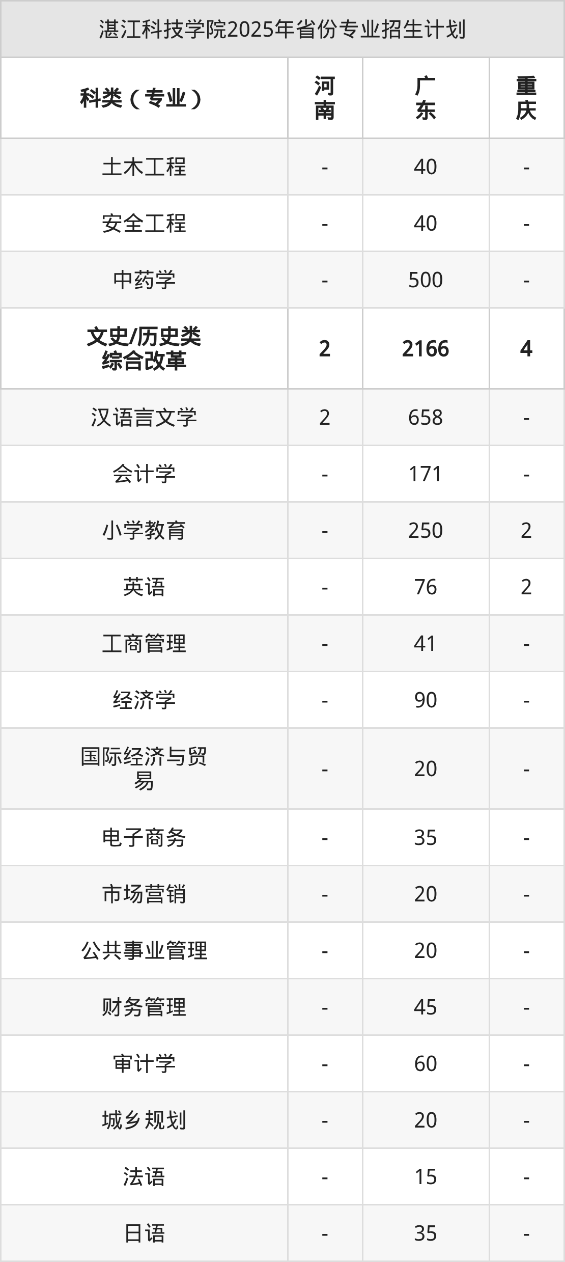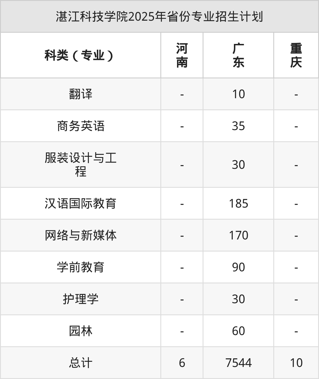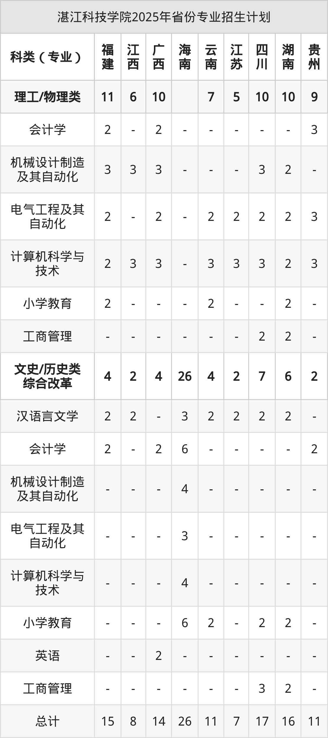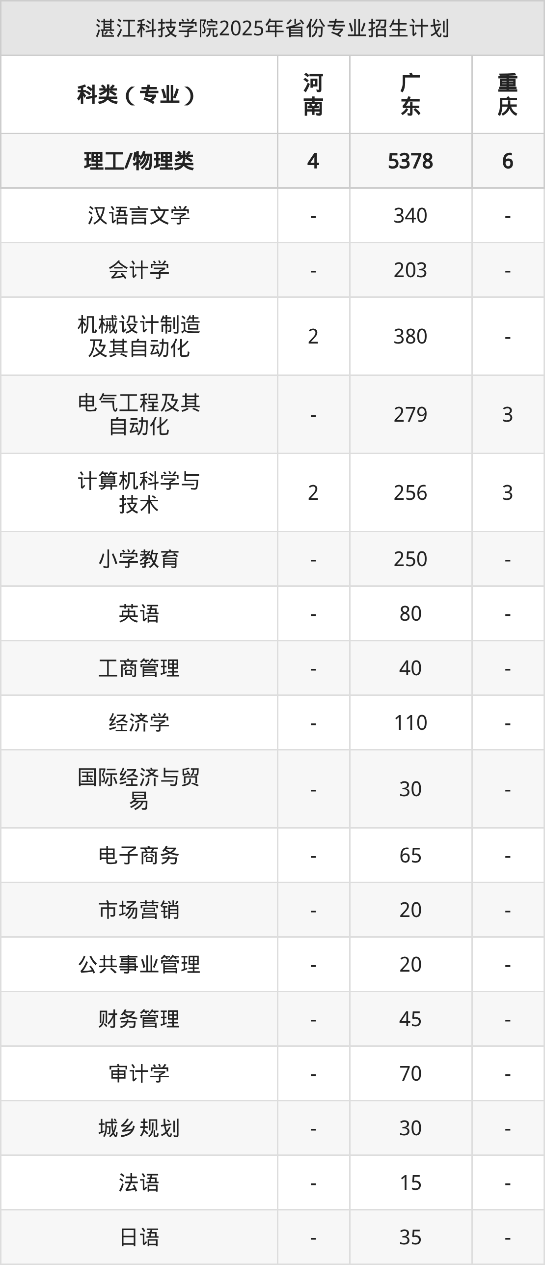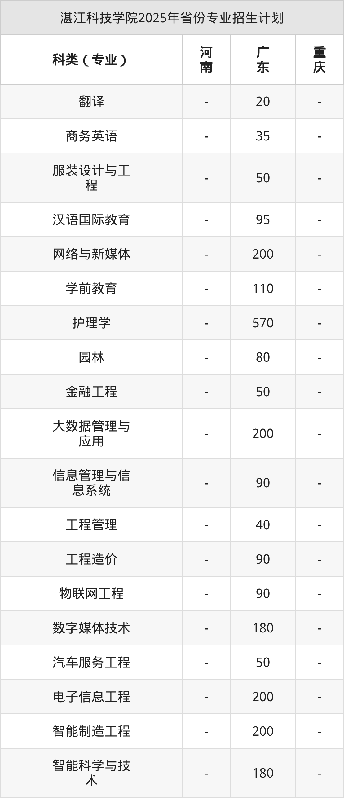 2026年湛江科技学院本科招生计划待公布,下面附上2025年数据,暂供参考: