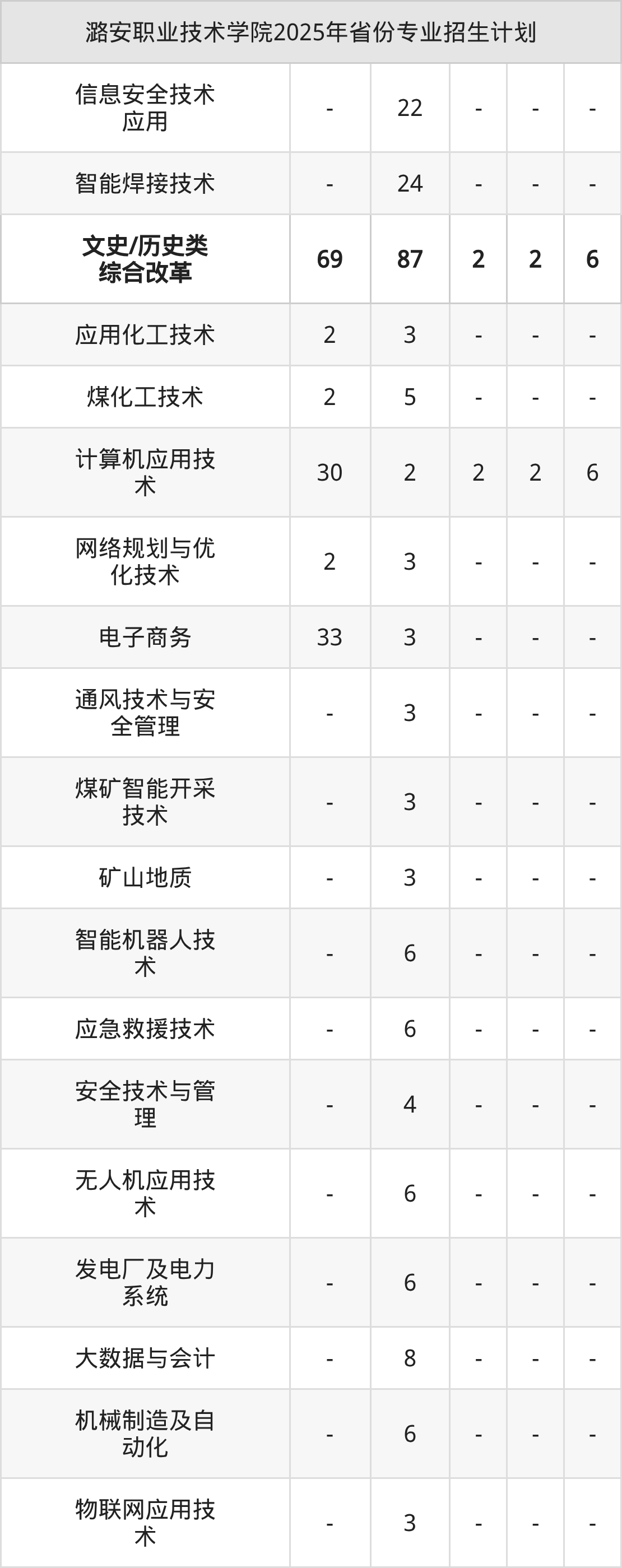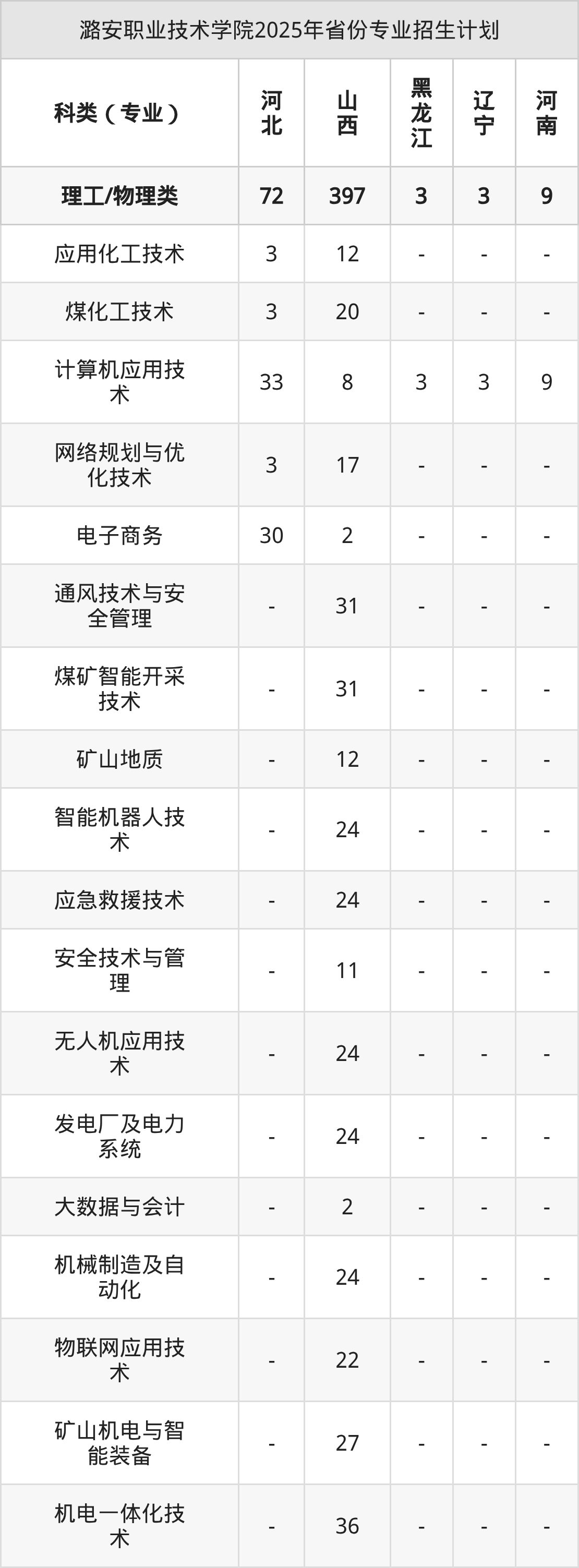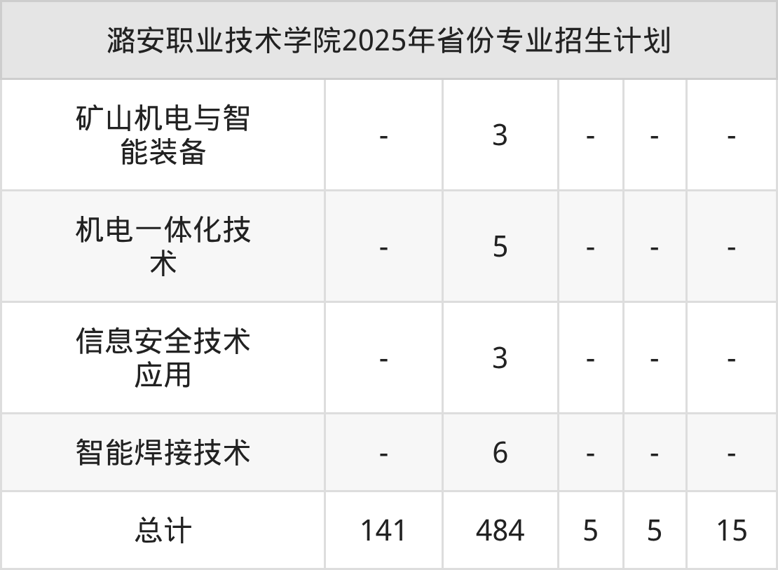 2026年潞安职业技术学院专科招生计划待公布,下面附上2025年数据,暂供参考:
