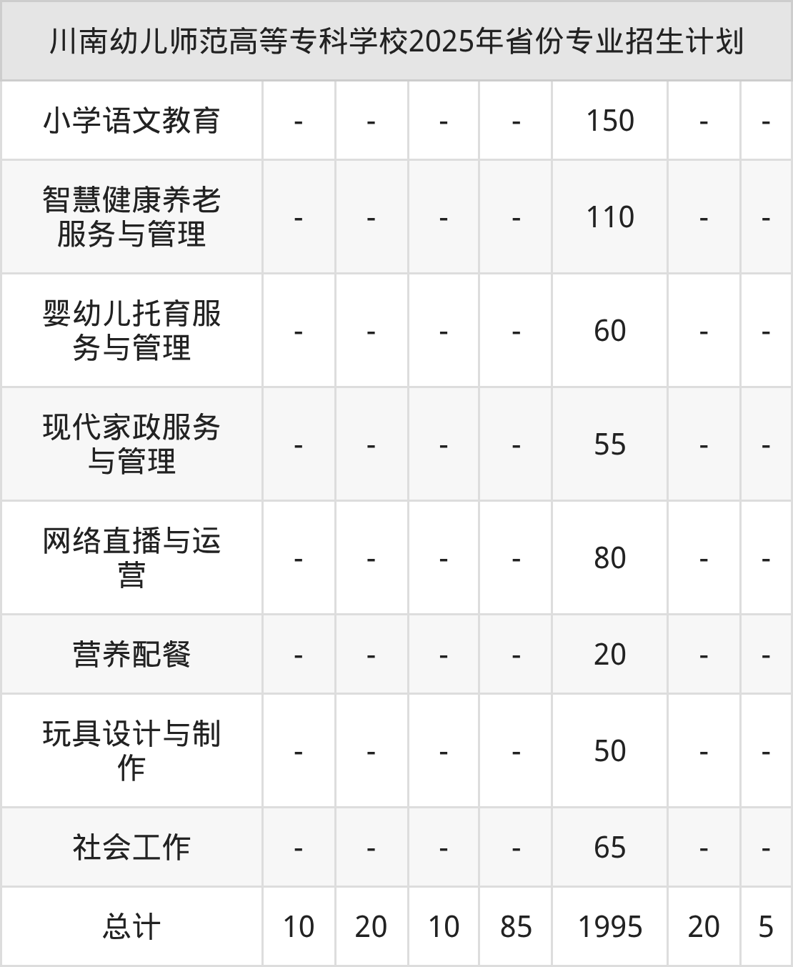 2026年川南幼儿师范高等专科学校专科招生计划待公布,下面附上2025年数据,暂供参考: