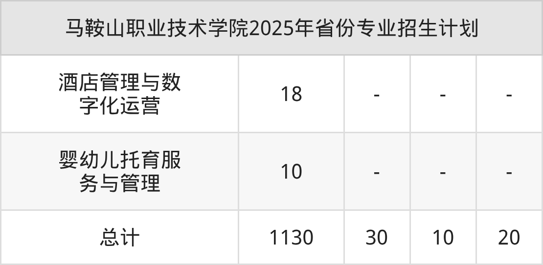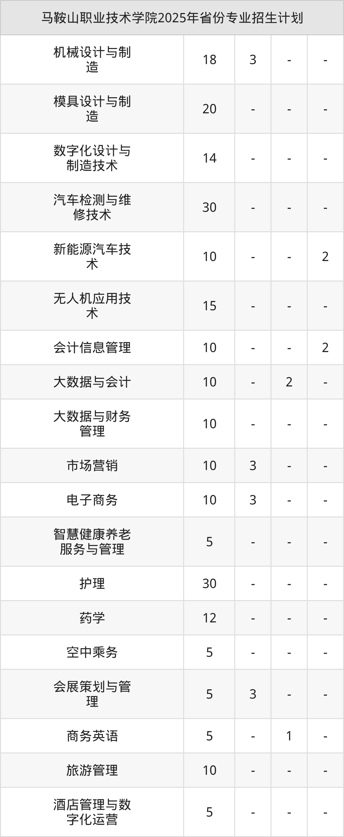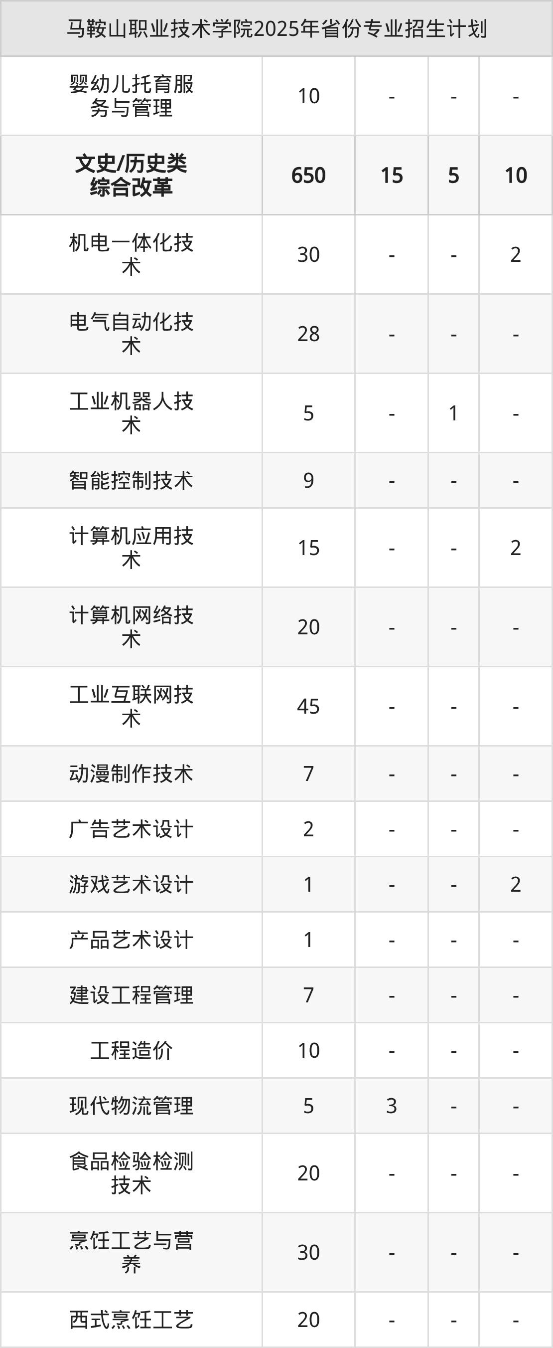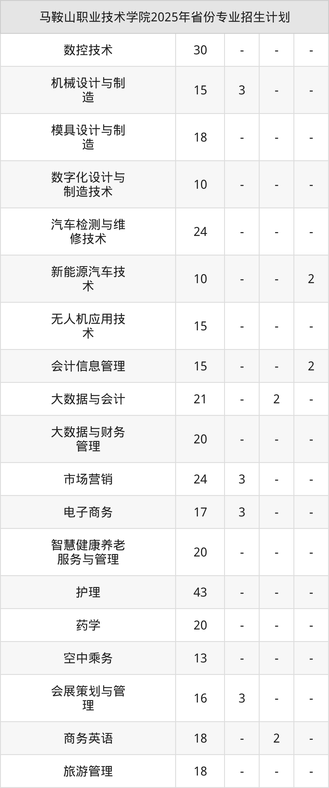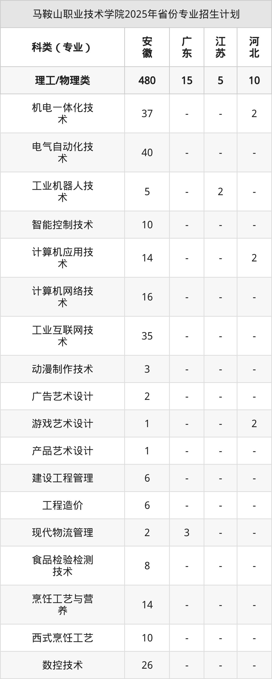 2026年马鞍山职业技术学院专科招生计划待公布,下面附上2025年数据,暂供参考: