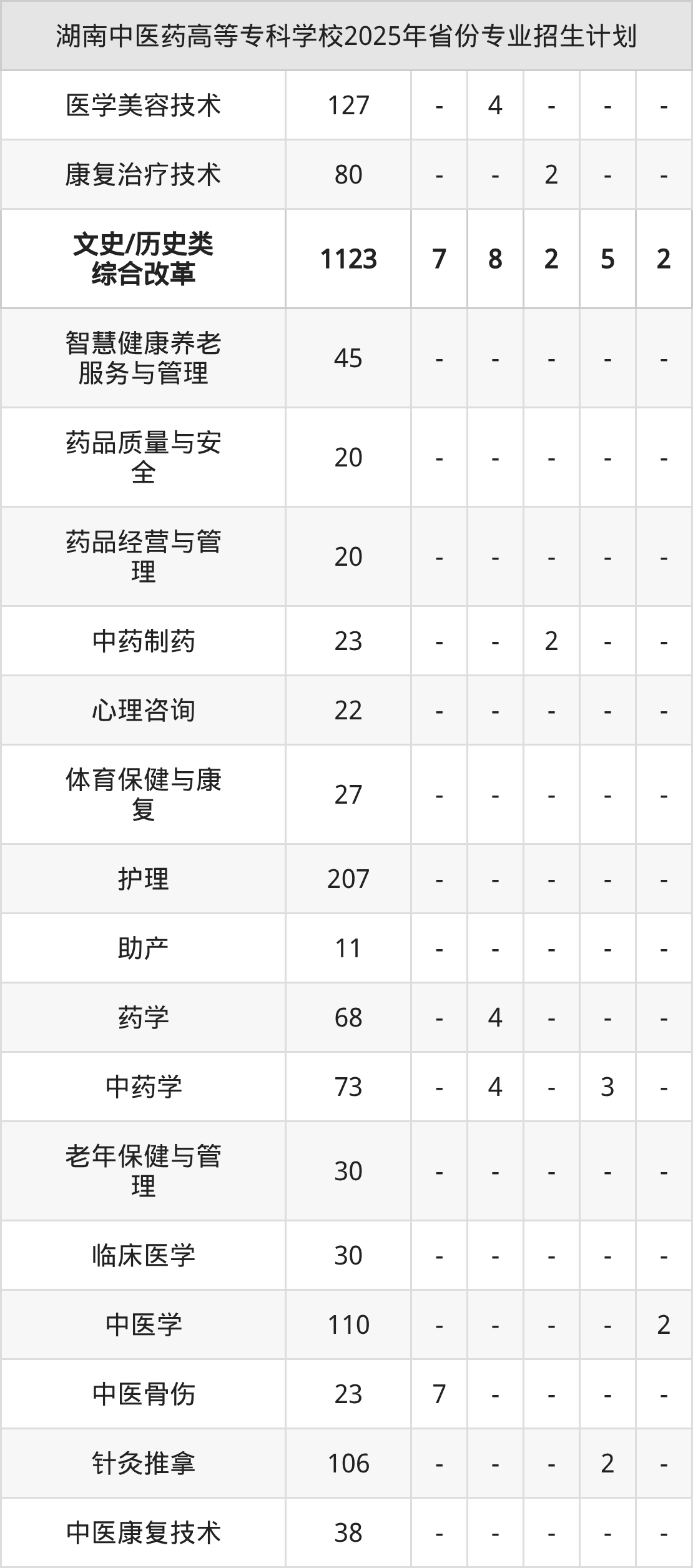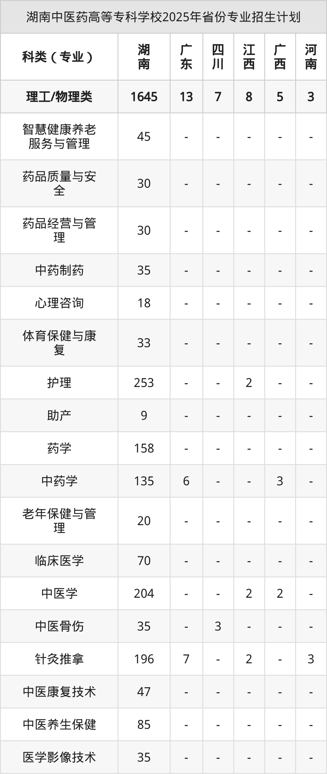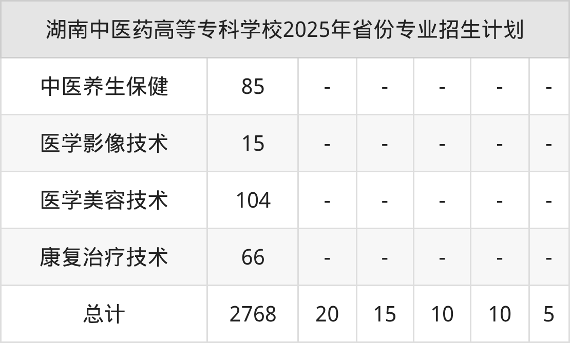 2026年湖南中医药高等专科学校专科招生计划待公布,下面附上2025年数据,暂供参考: