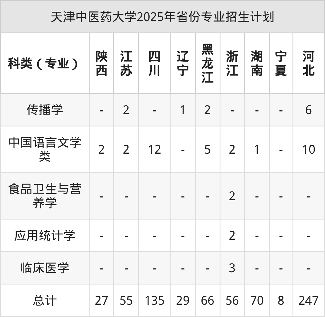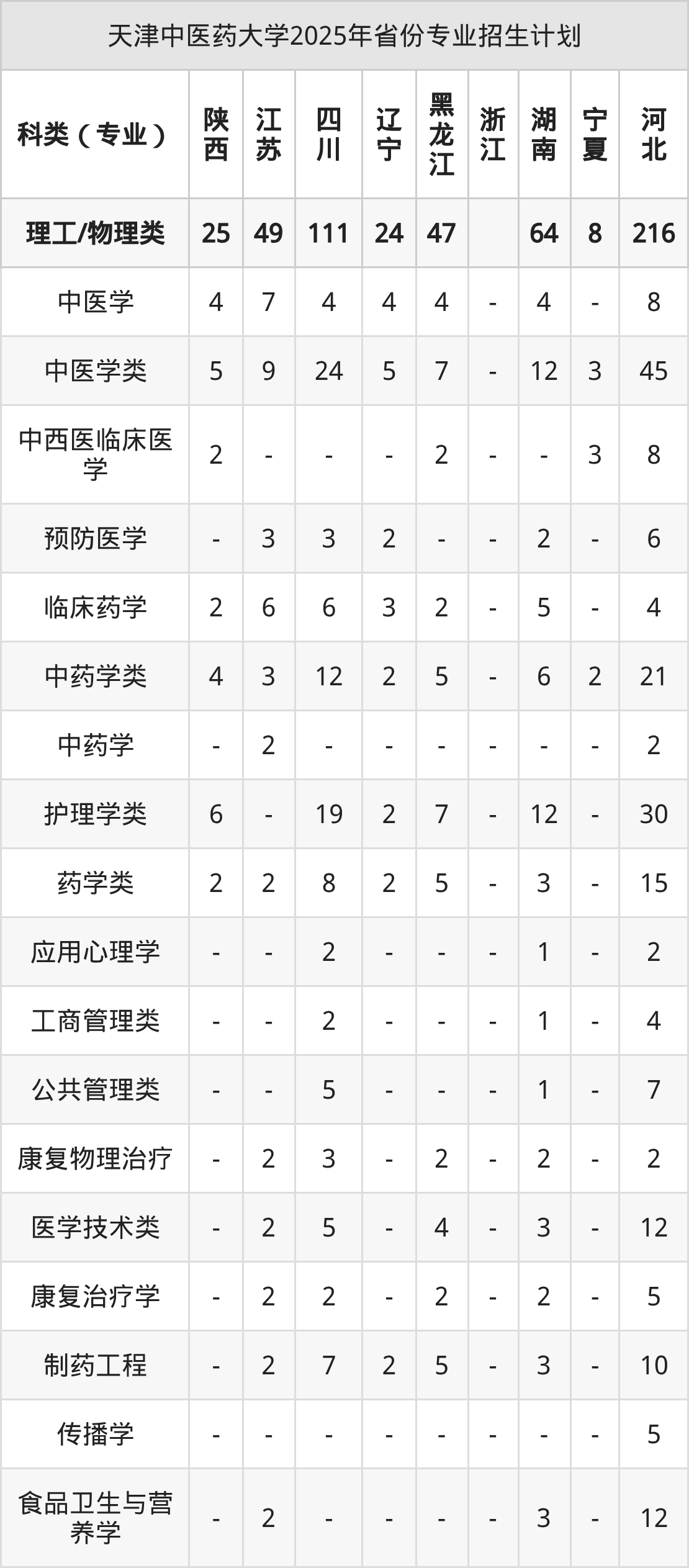 2026年天津中医药大学本科招生计划待公布,下面附上2025年数据,暂供参考: