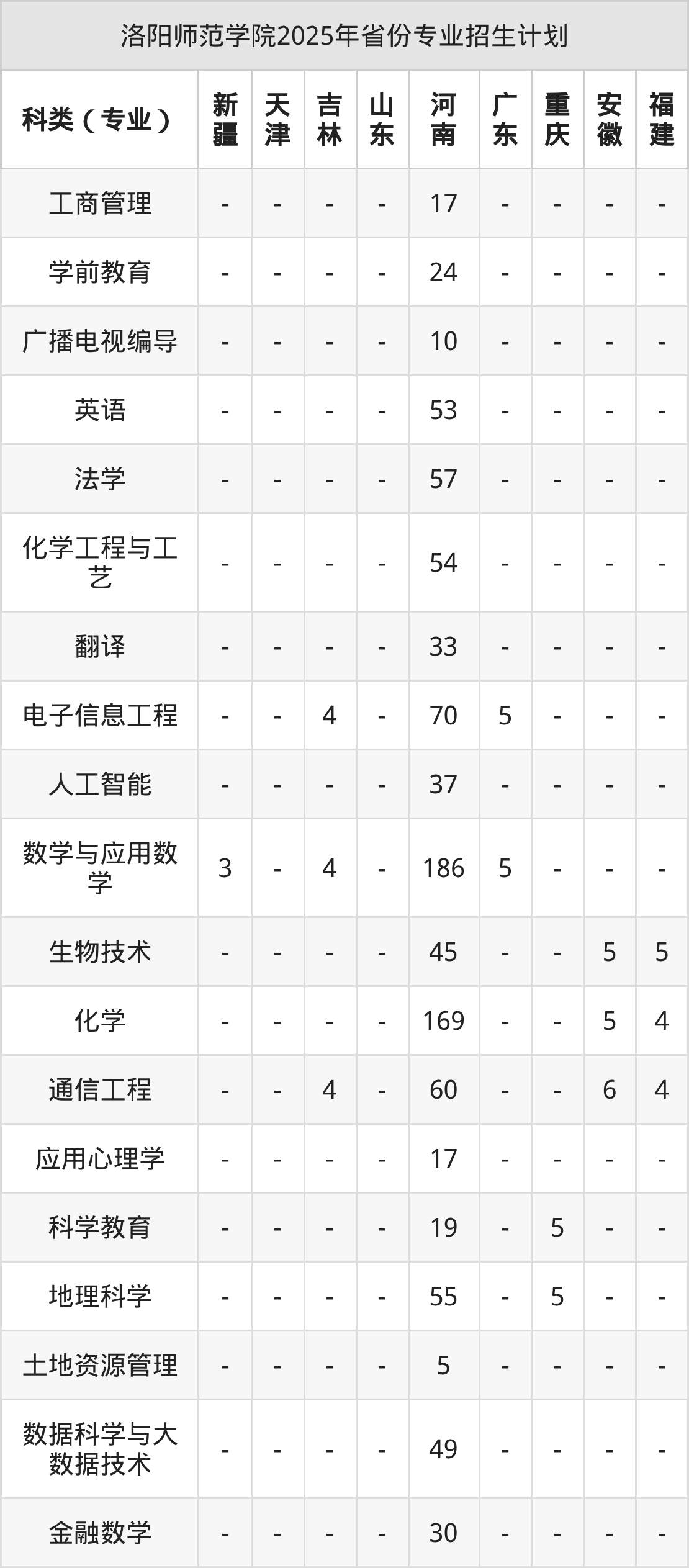 2026年洛阳师范学院本科招生计划待公布,下面附上2025年数据,暂供参考: