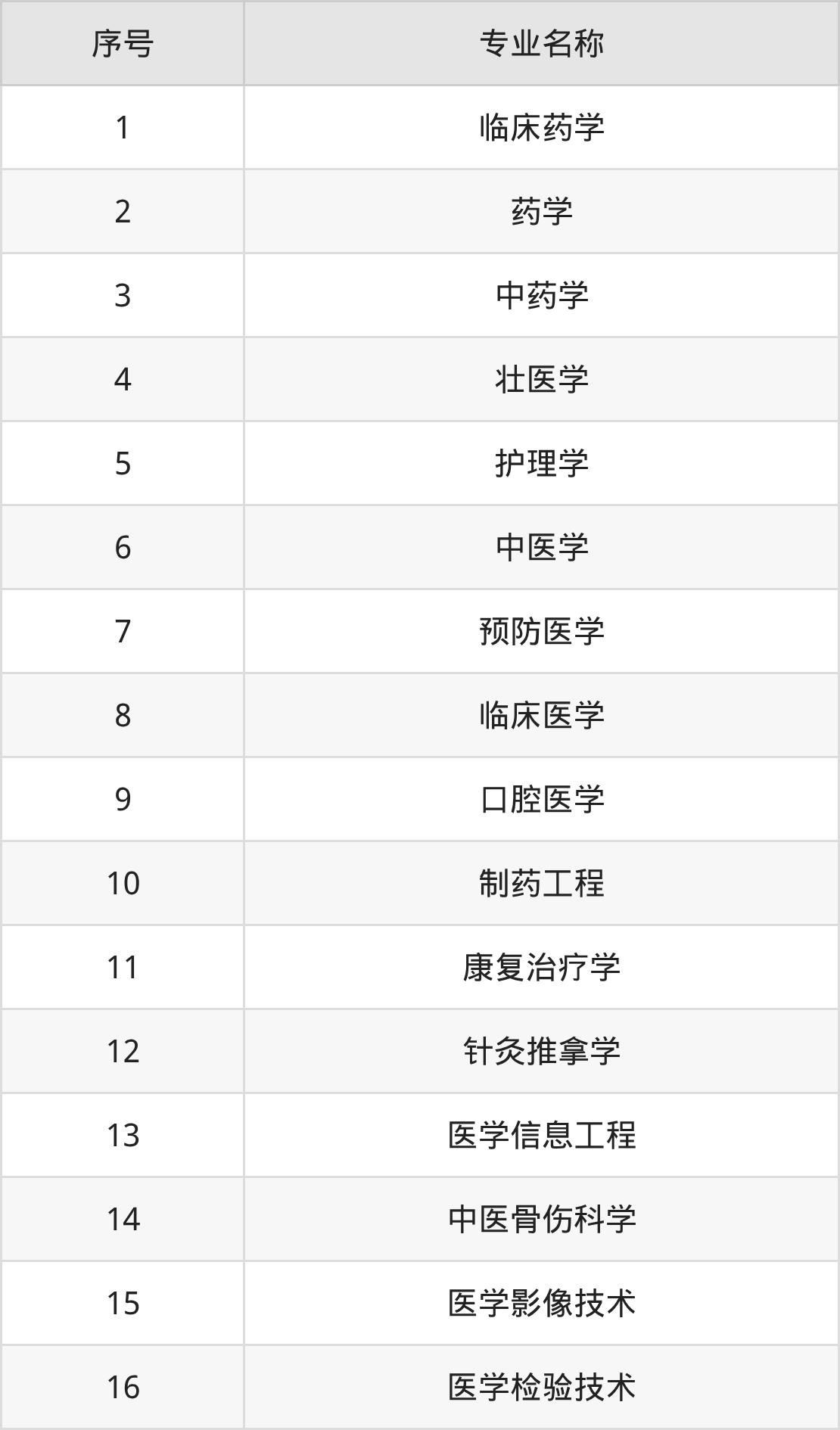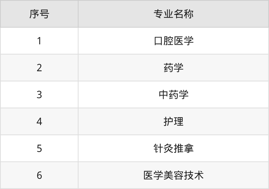 物理类(理科)本科招生专业:临床药学、药学、护理学、壮医学、中药学、中医学、制药工程、预防医学、口腔医学、临床医学等。