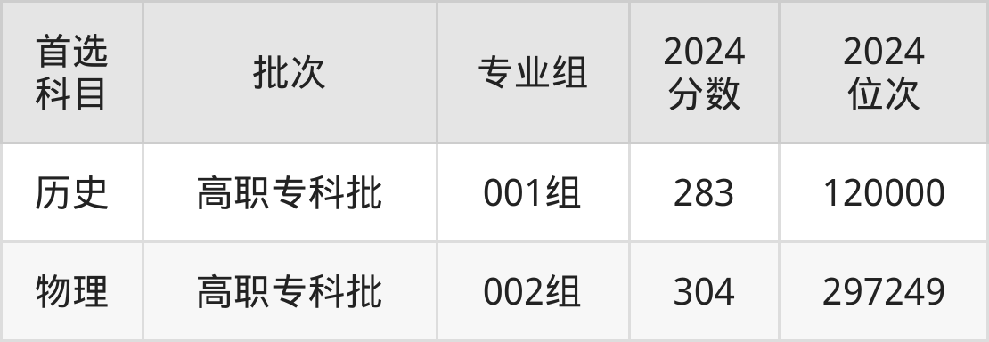 2024年宿州职业技术学院在安徽省内专科批的录取分数线都在280分以上,在历史类的录取分数线为283分;物理类的录取分数线为304分。