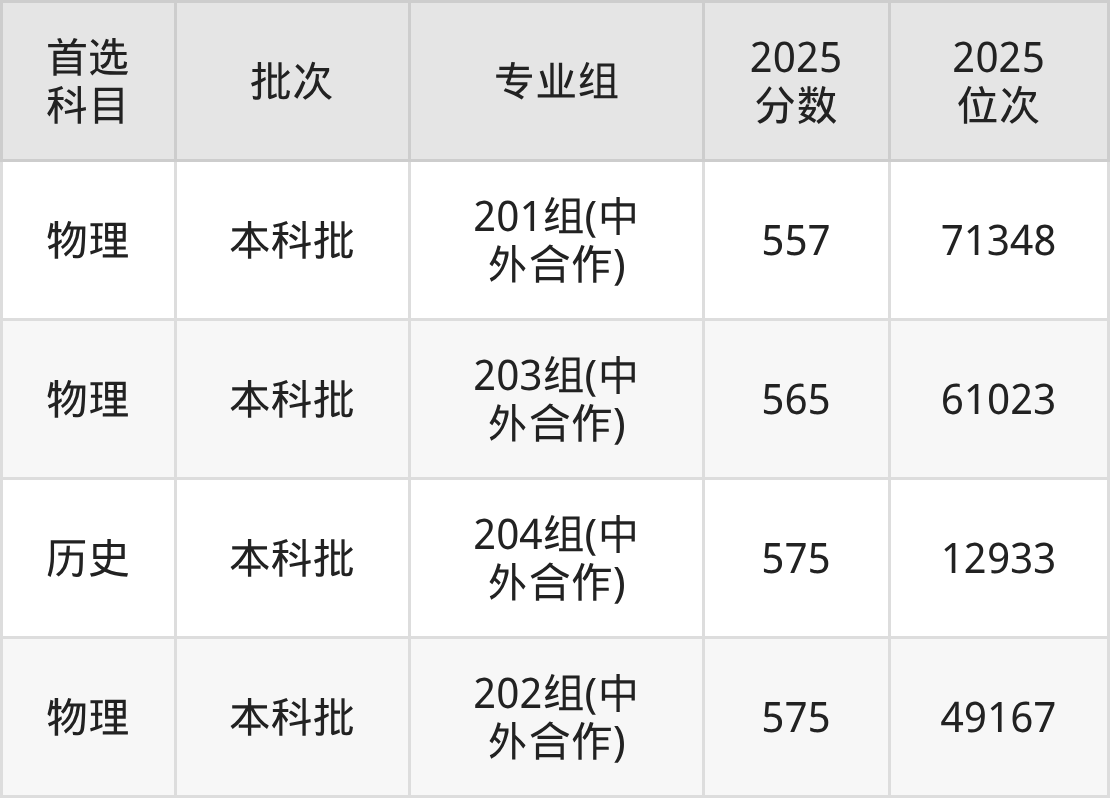 从2025年深圳北理莫斯科大学在广东省内的录取分数线来看,本科批录取分数线都在550分以上,录取分数线最高的是202组(中外合作),2025年最低分为575分;录取分数线最低的是201组(中外合作),2025年最低分为557分。