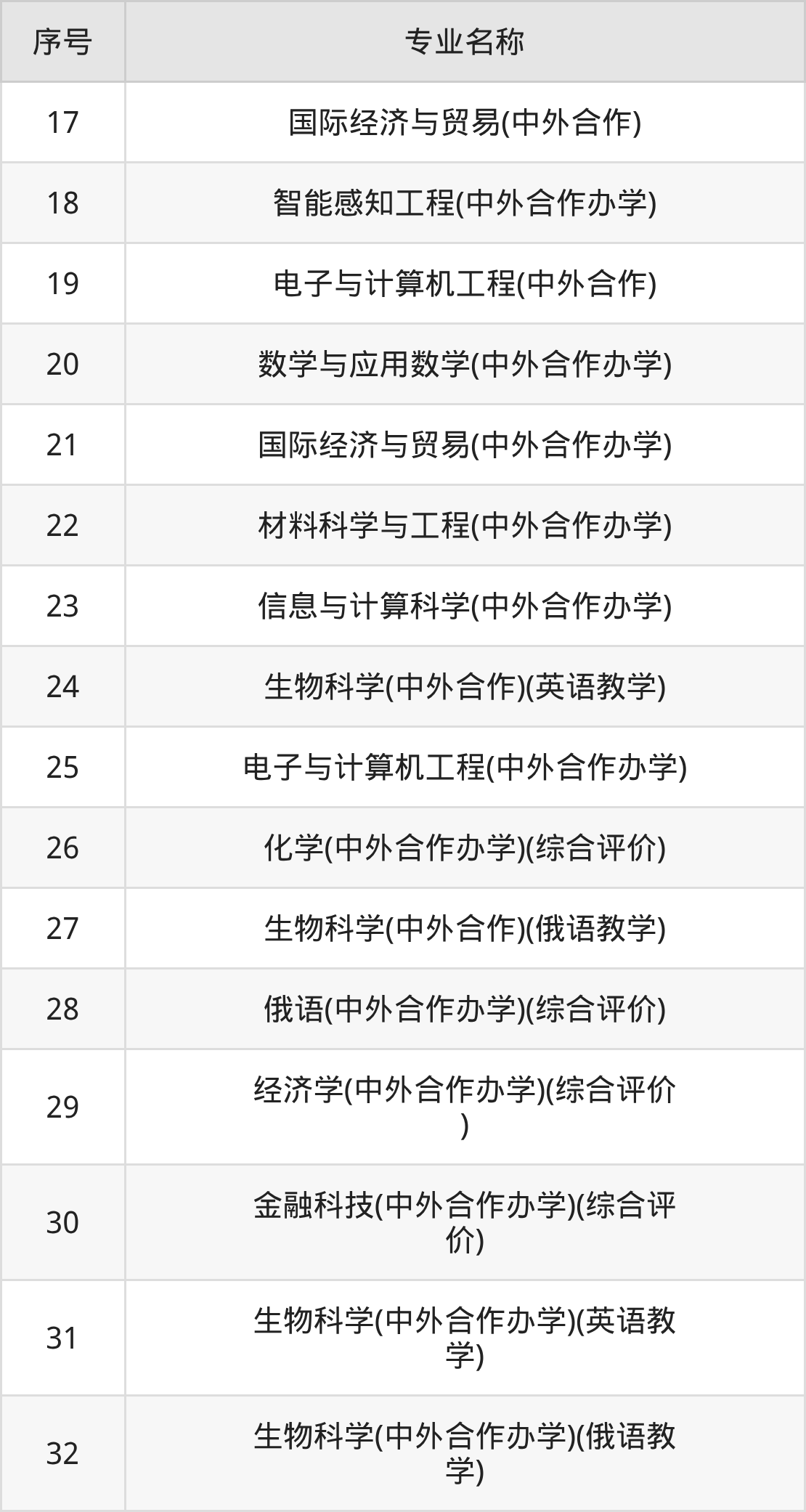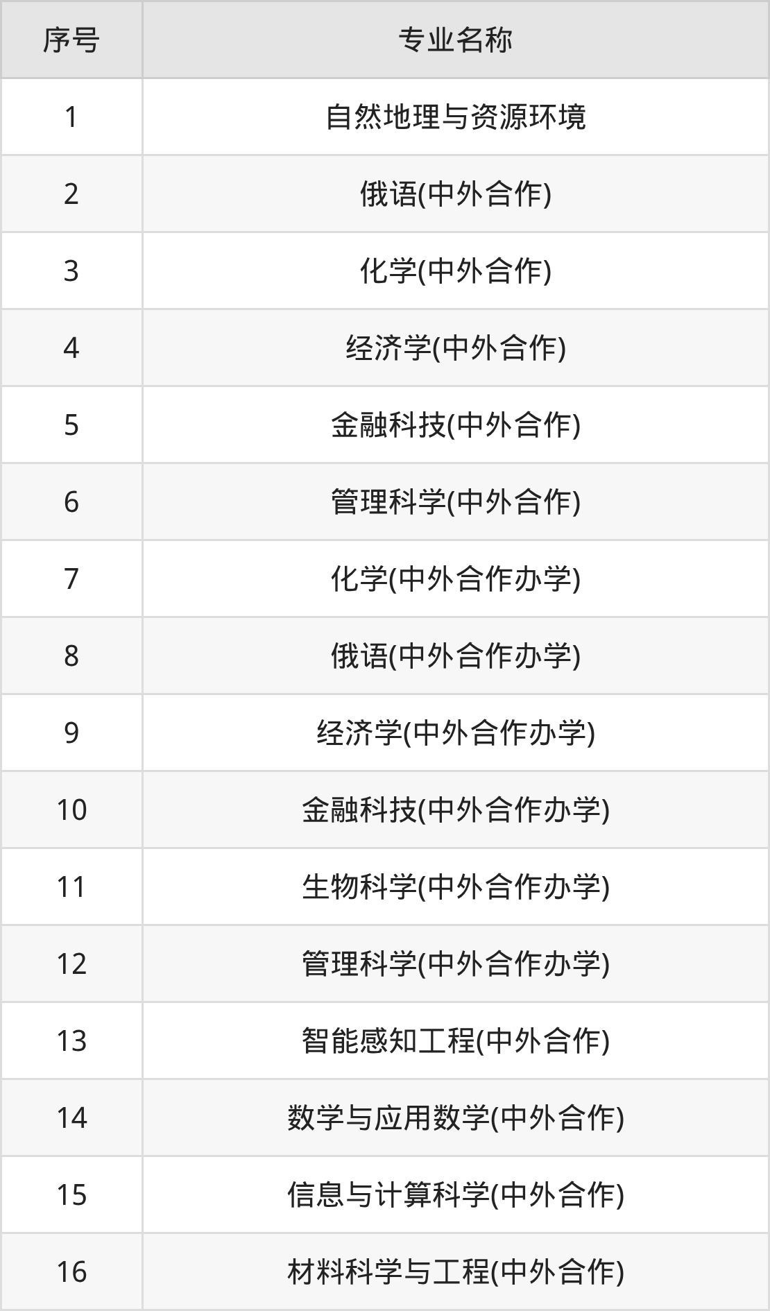 历史类(文科)本科招生专业:俄语(中外合作)、俄语(中外合作办学)、经济学(中外合作办学)、国际经济与贸易(中外合作)、国际经济与贸易(中外合作办学)、俄语(中外合作办学)(综合评价)。