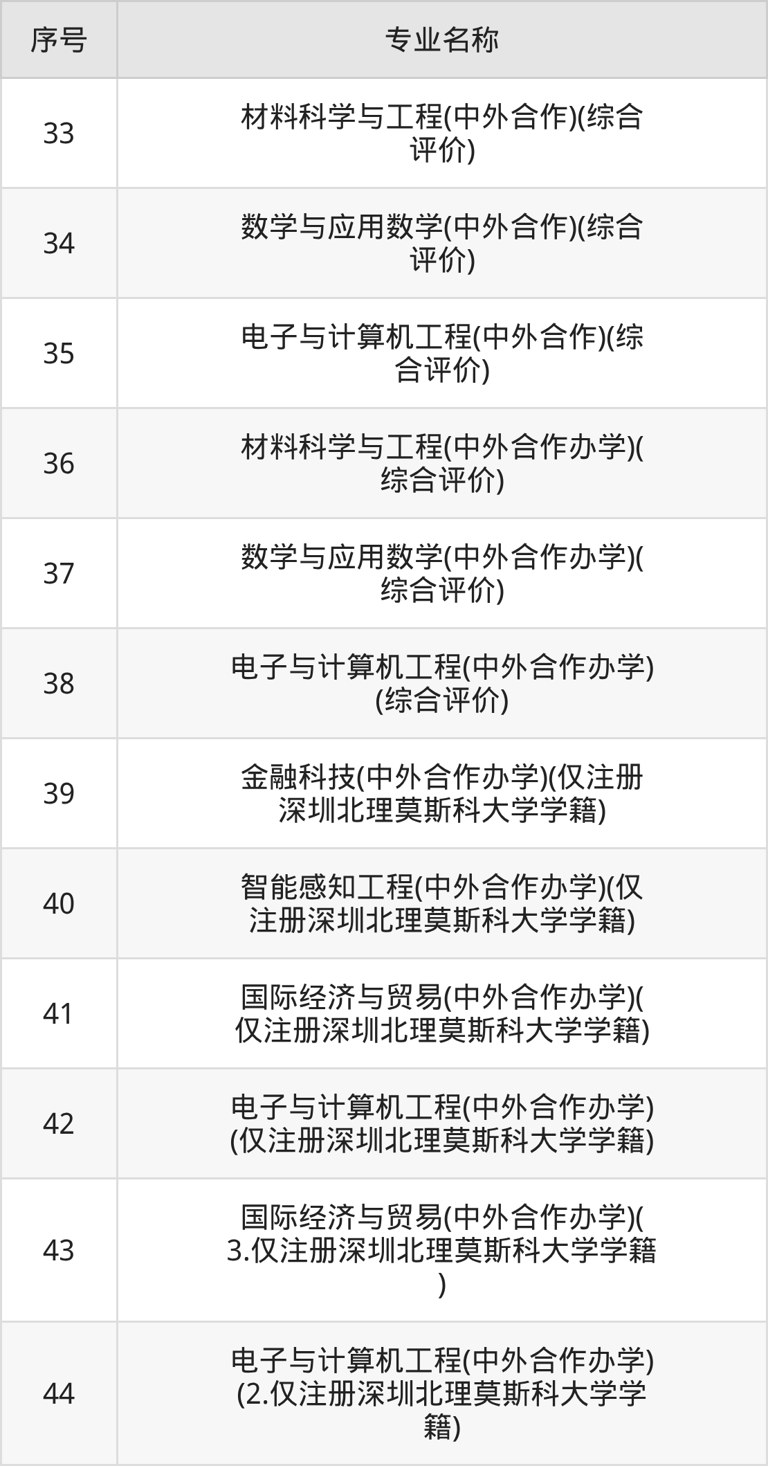 目前,深圳北理莫斯科大学公布了2025年本科招生专业,共44个。