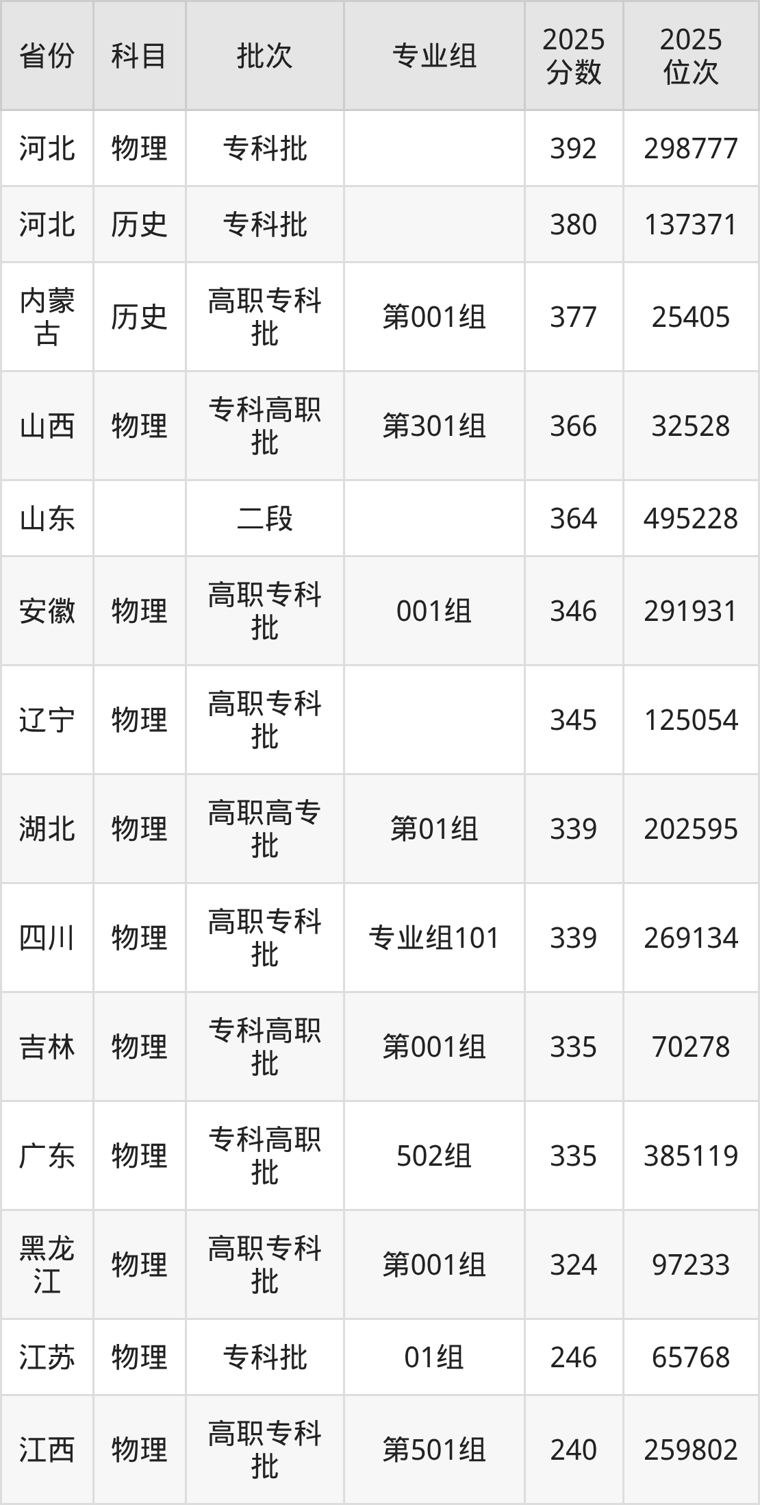 下面是2025年秦皇岛工业职业技术学院在全国各省录取最低分数据及位次,各位考生也可作为一个参考。