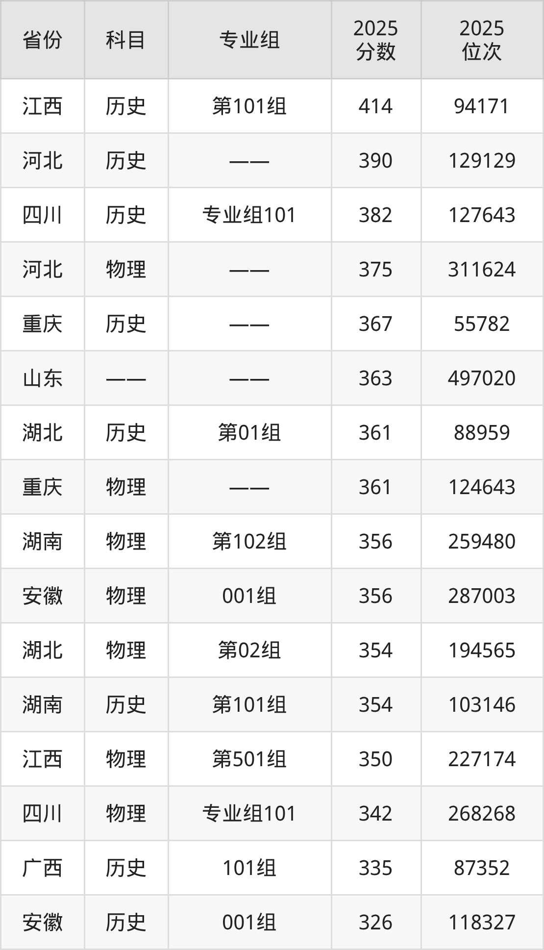 2025年三峡旅游职业技术学院全国录取分数线237分到414分,录取最高在江西(历史类第101组)、录取最低在贵州(历史类)。