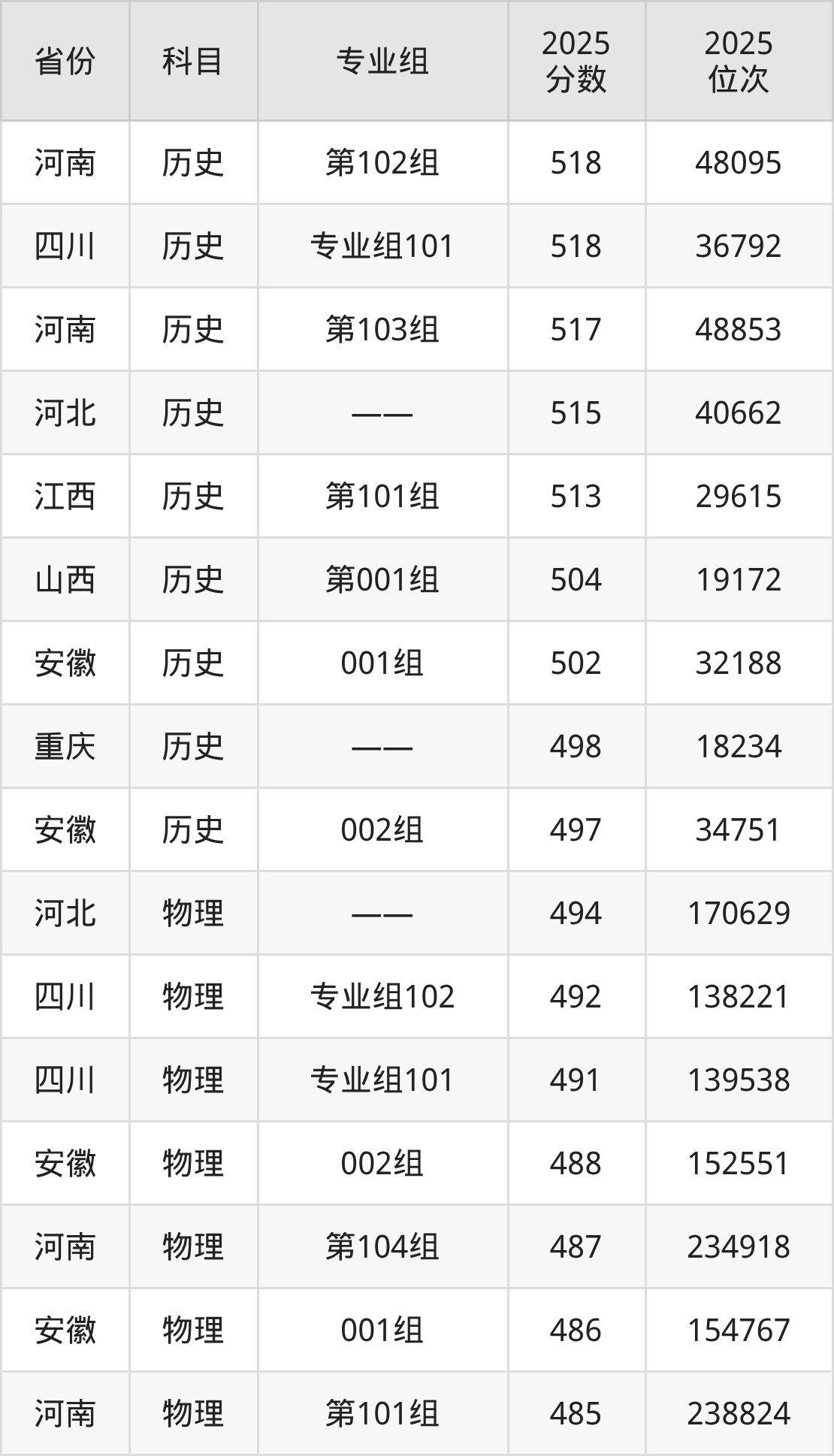 2025年西藏农牧大学全国录取分数线393分到518分,录取最高在河南(历史类第102组)、录取最低在黑龙江(物理类第003组)。