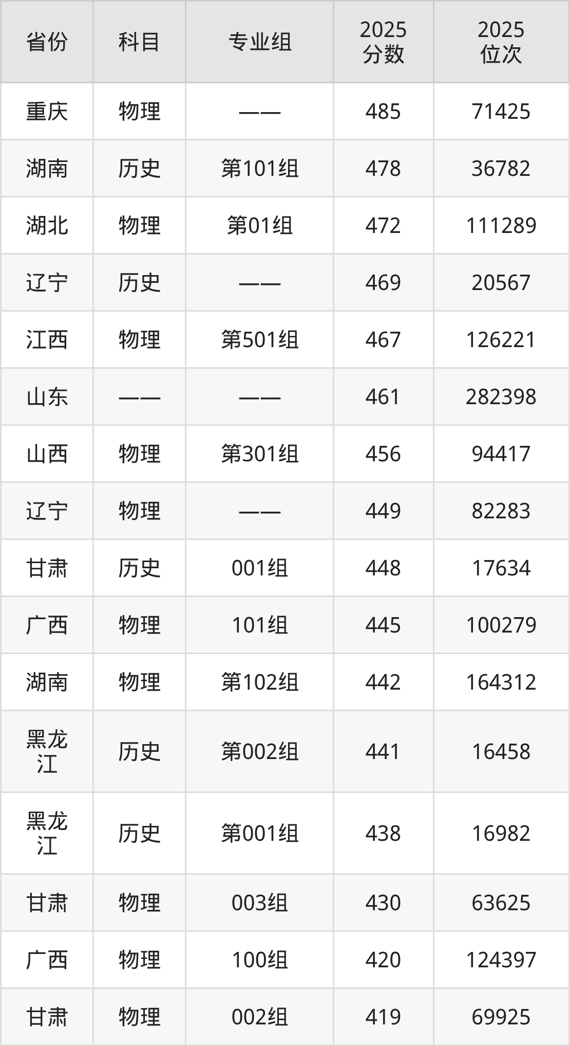 下面是2025年西藏农牧大学在全国各省录取最低分数据及位次,各位考生也可作为一个参考。