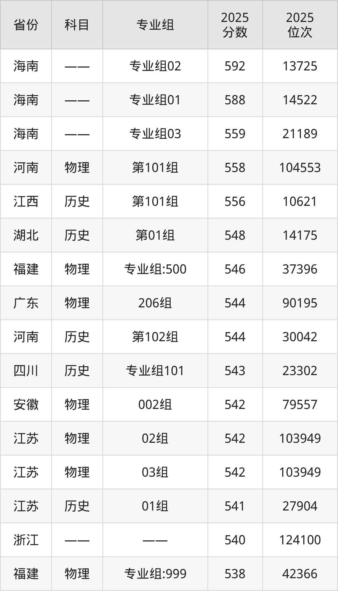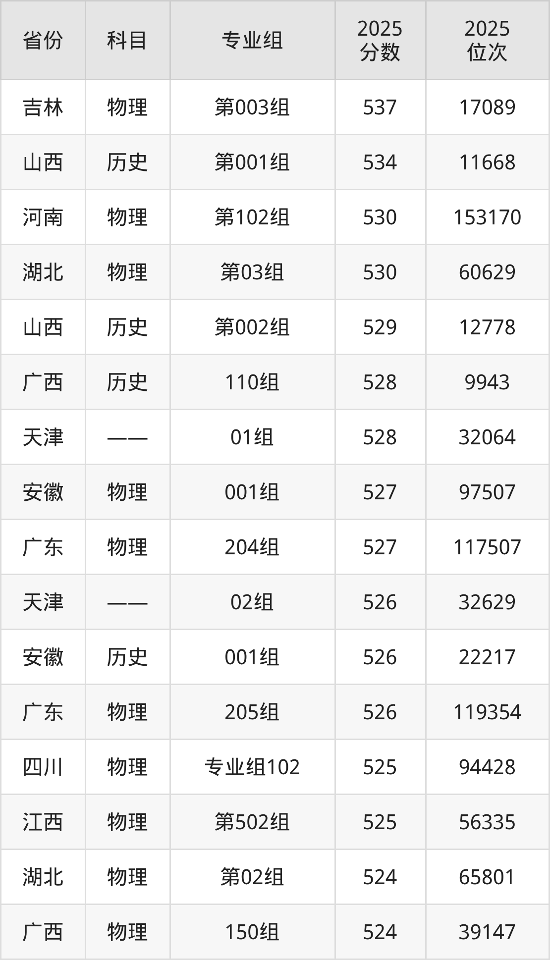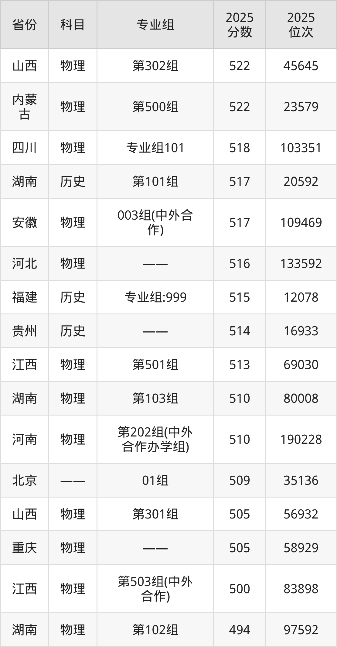 2025年福建理工大学各专业录取分数线从484分到533分不等,录取分数线最低的专业是土木工程、信息与计算科学;录取分数线最高的专业是软件工程、海洋机器人。本文将展示福建理工大学所有专业最低分数线及位次,供2026届高考生参考。