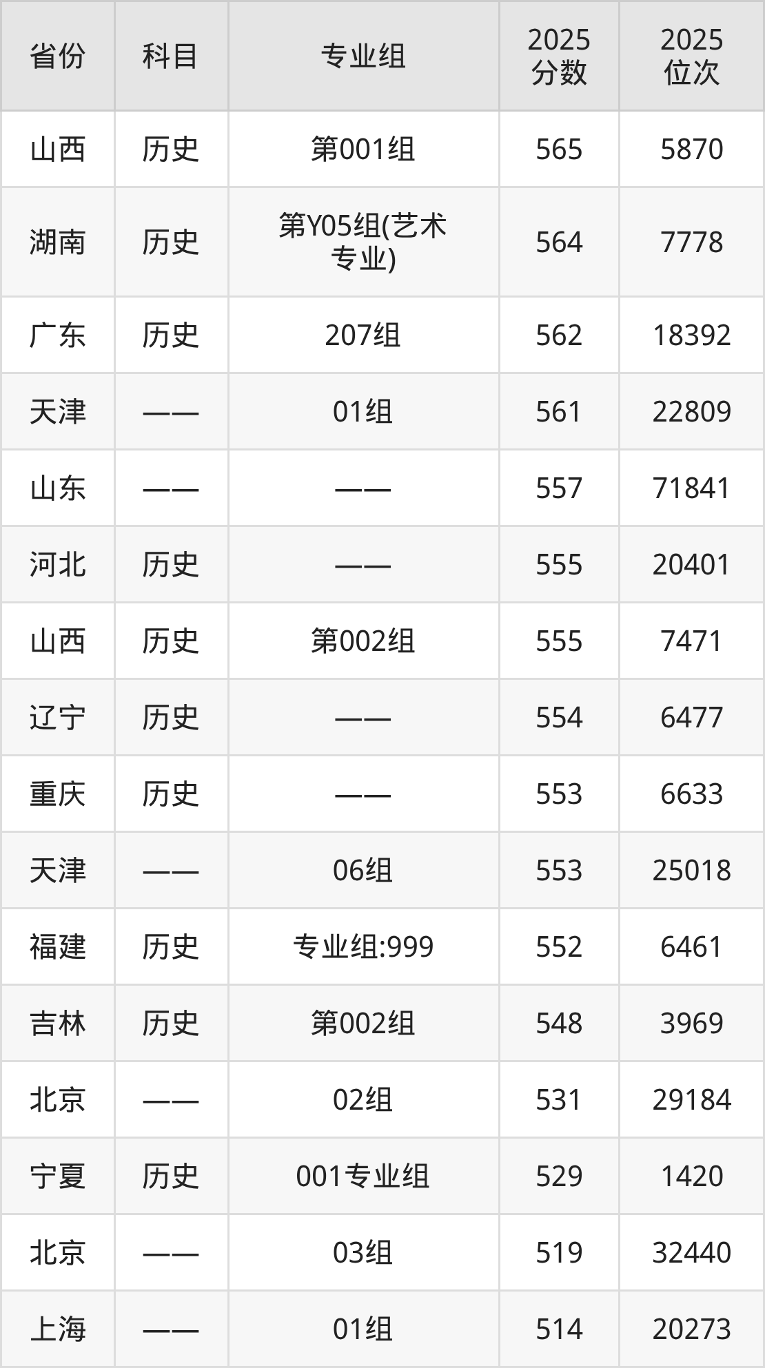 下面是2025年中国戏曲学院在全国各省录取最低分数据及位次,各位考生也可作为一个参考。