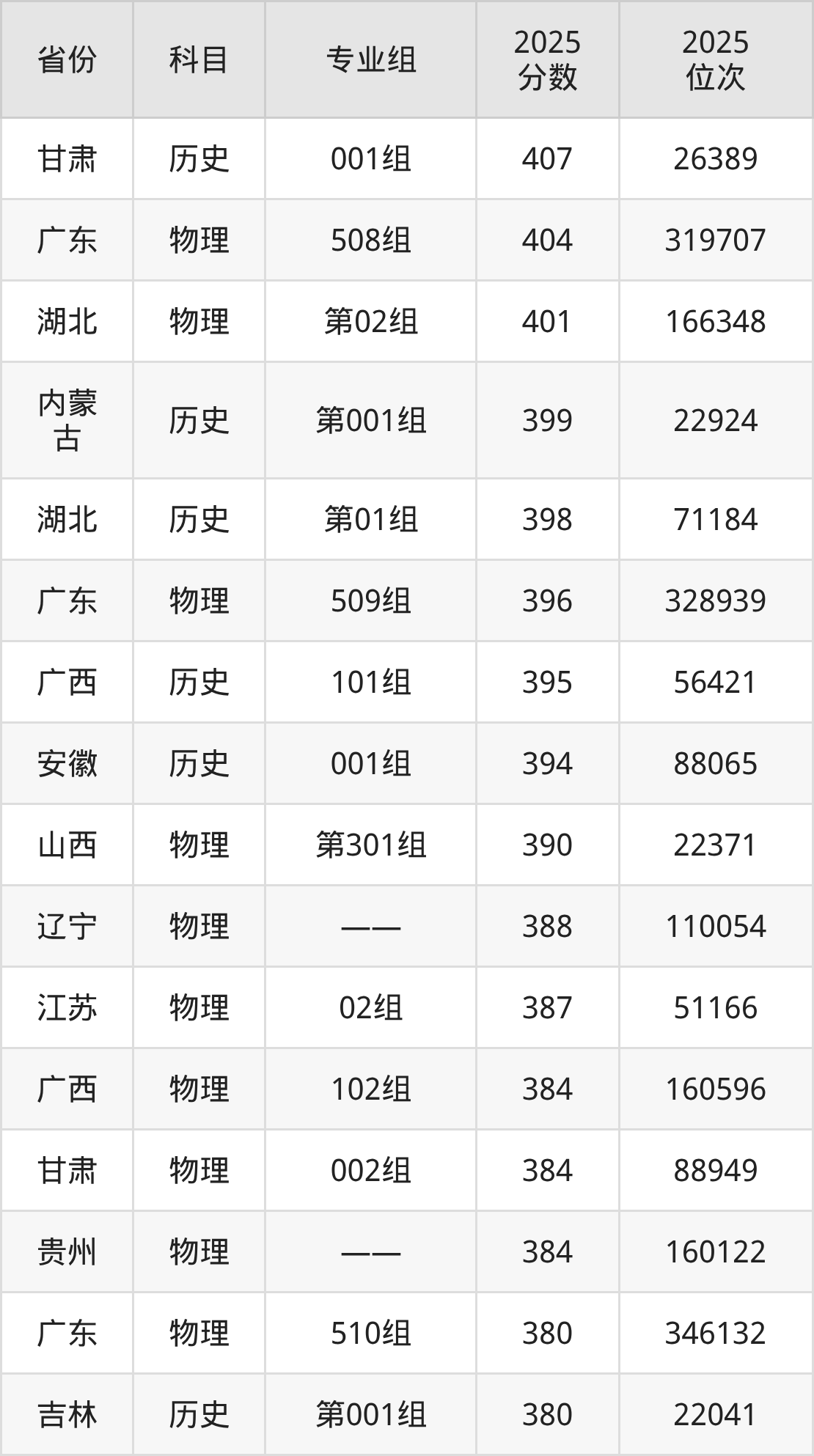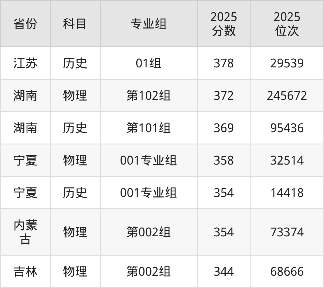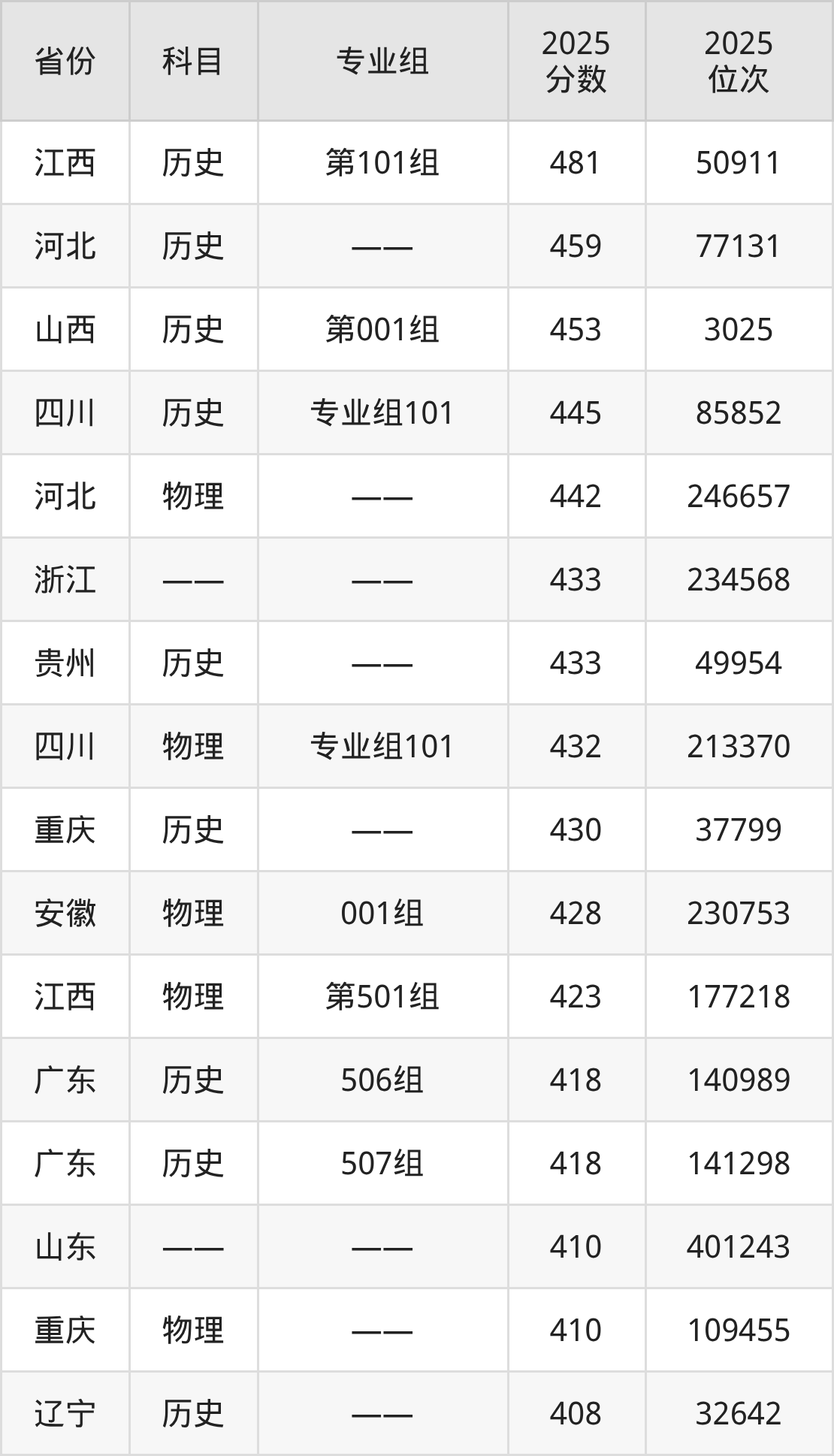 2025年湖南石油化工职业技术学院全国录取分数线344分到481分,录取最高在江西(历史类第101组)、录取最低在吉林(物理类第002组)。