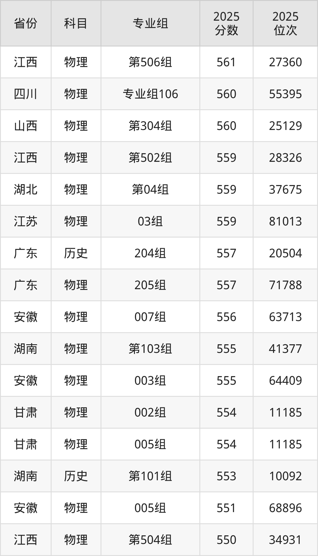 16、药学:569分、位次54312名;