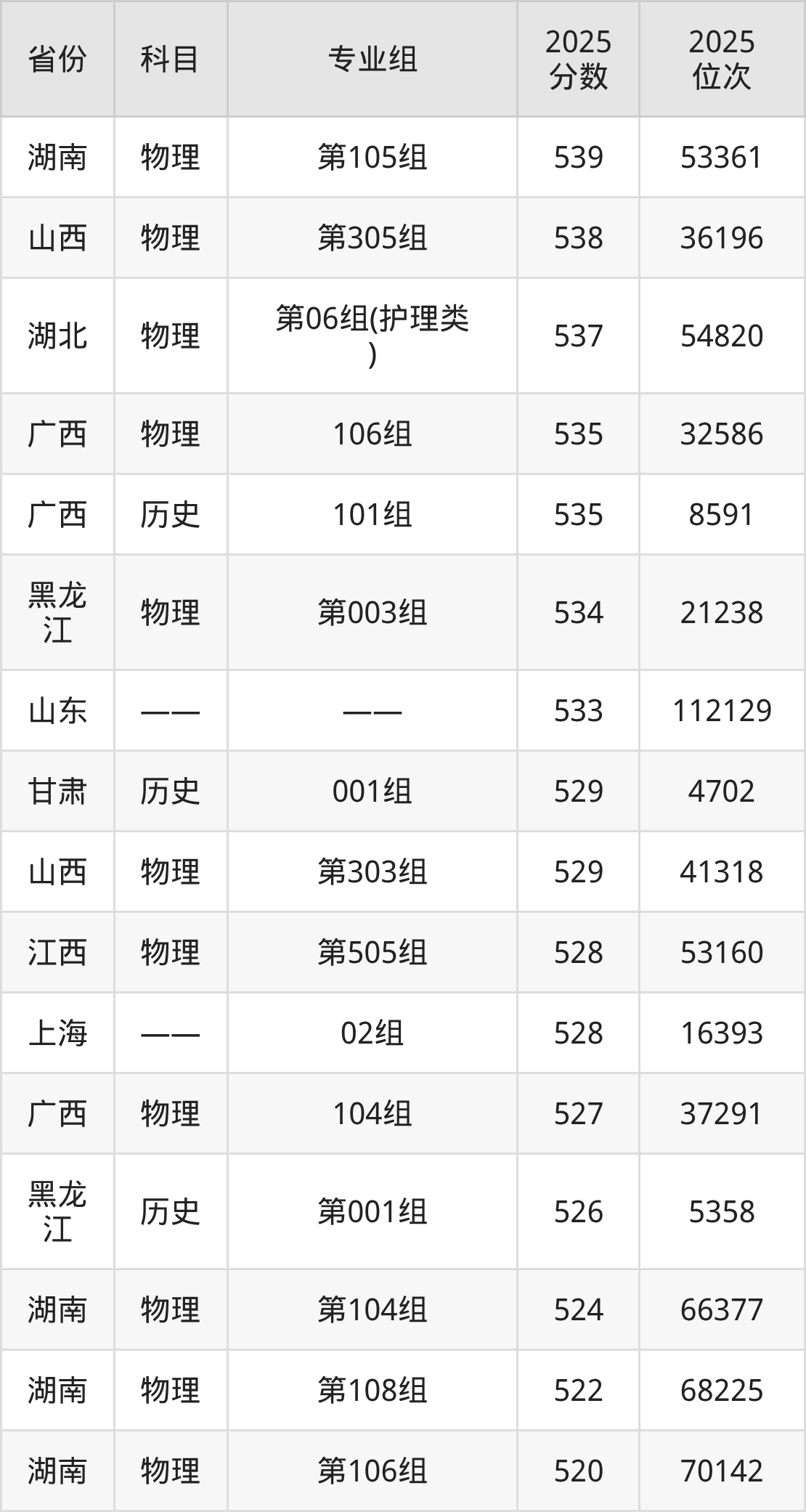 25、医学实验技术:533分、位次112129名。