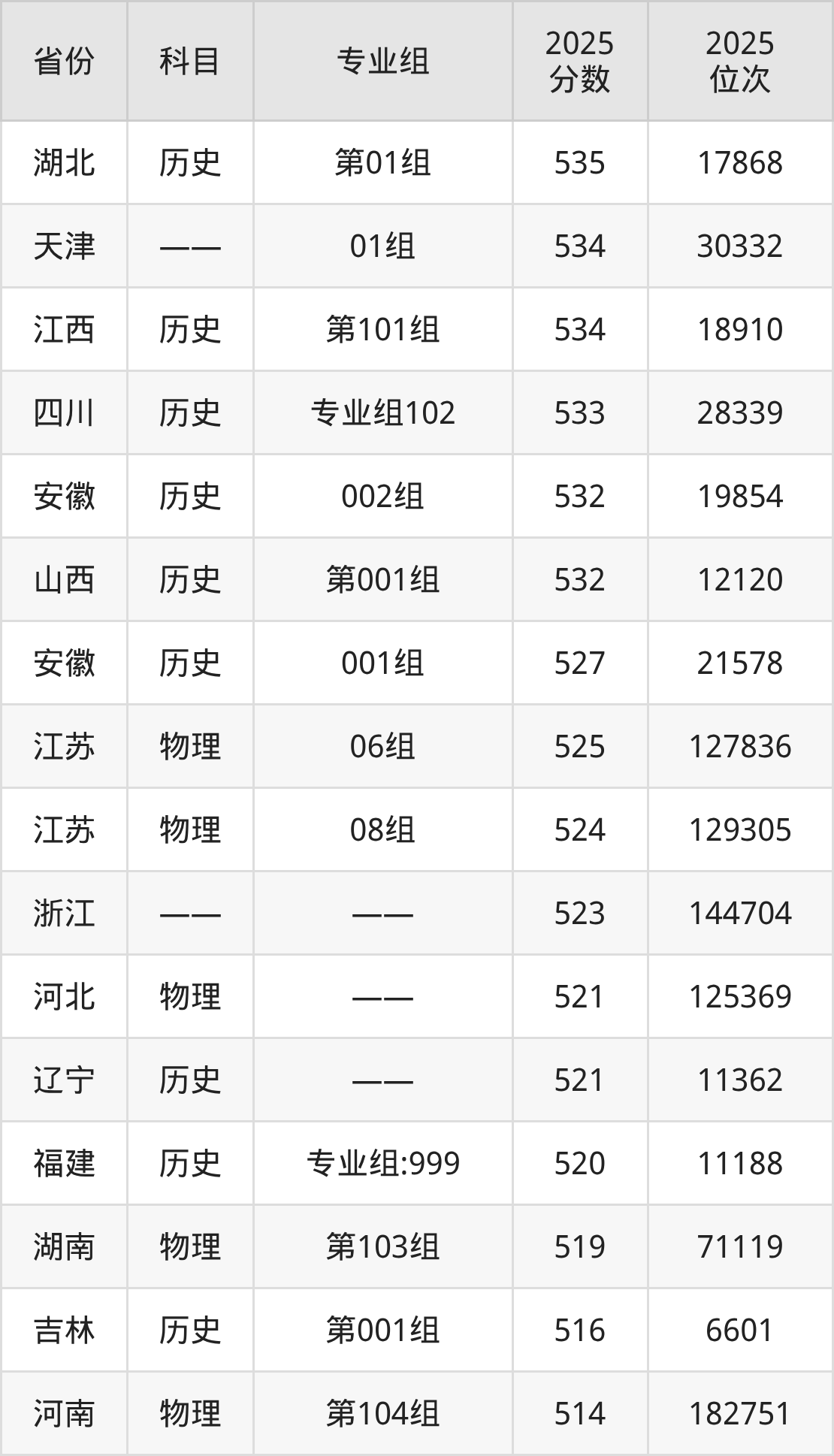 参考2025年山东省高考招录数据,按照分数线从高到低依次为大家展示南京特殊教育师范学院各个专业录取分数线。