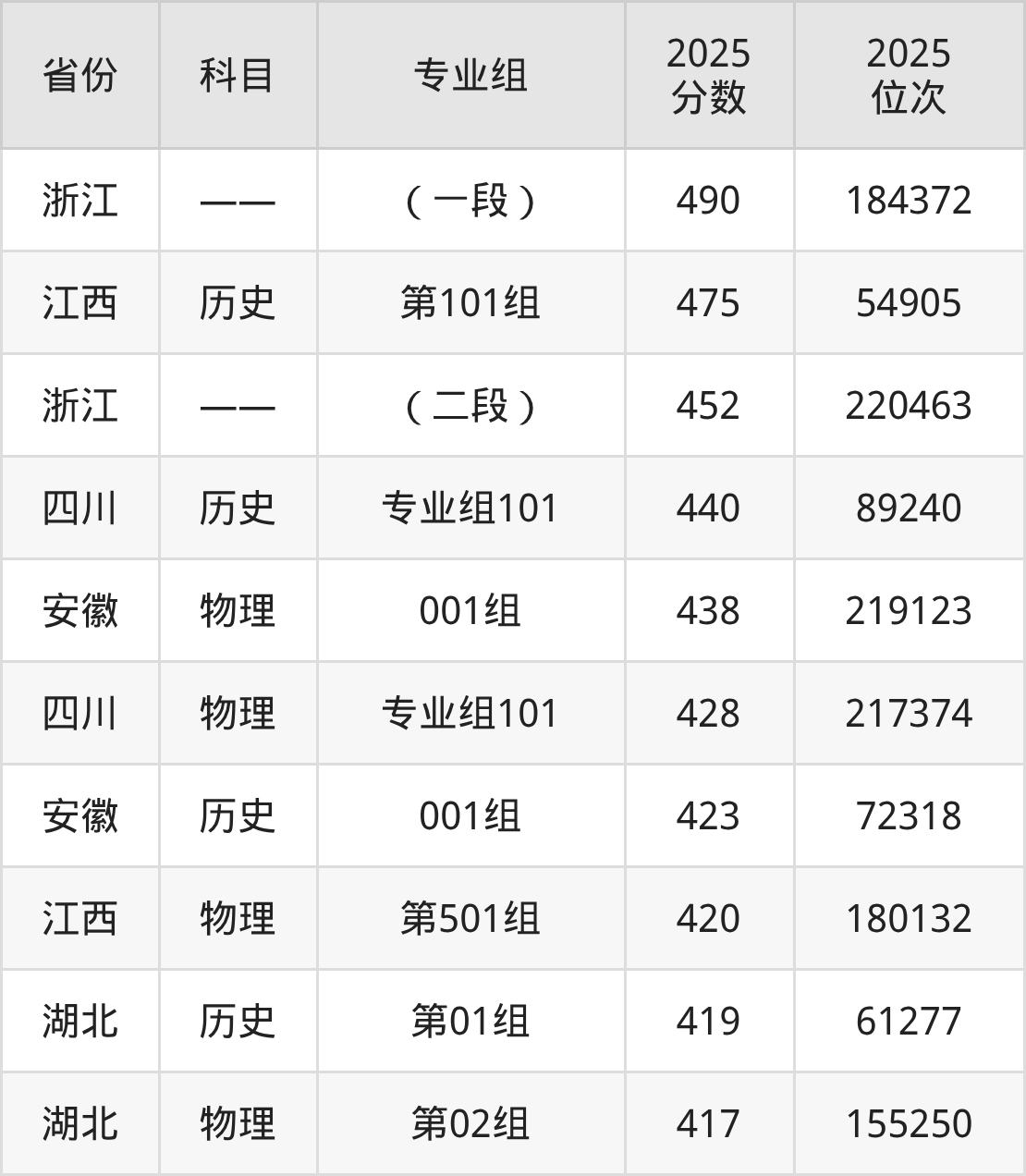 10、现代物流管理:490分、位次184372名;