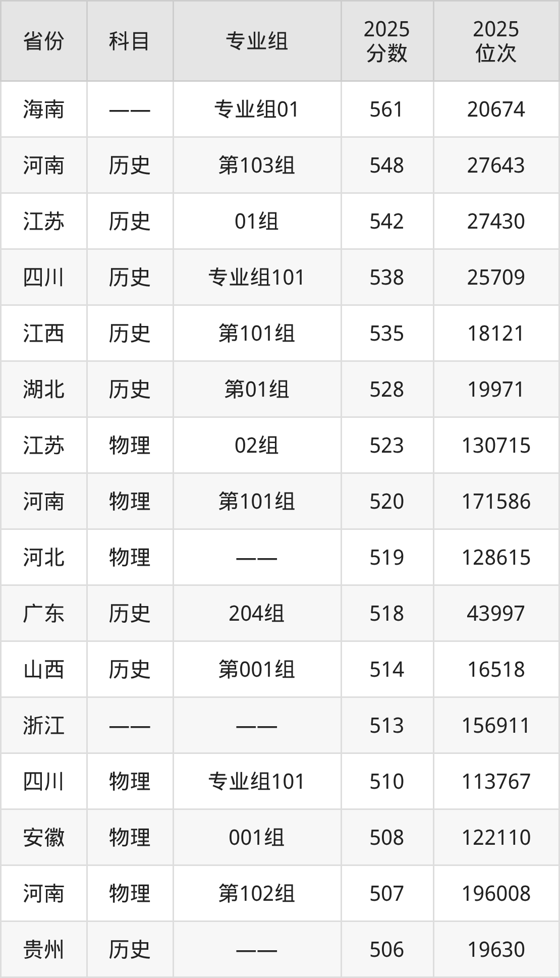 7、动物医学:506分、位次172378名;