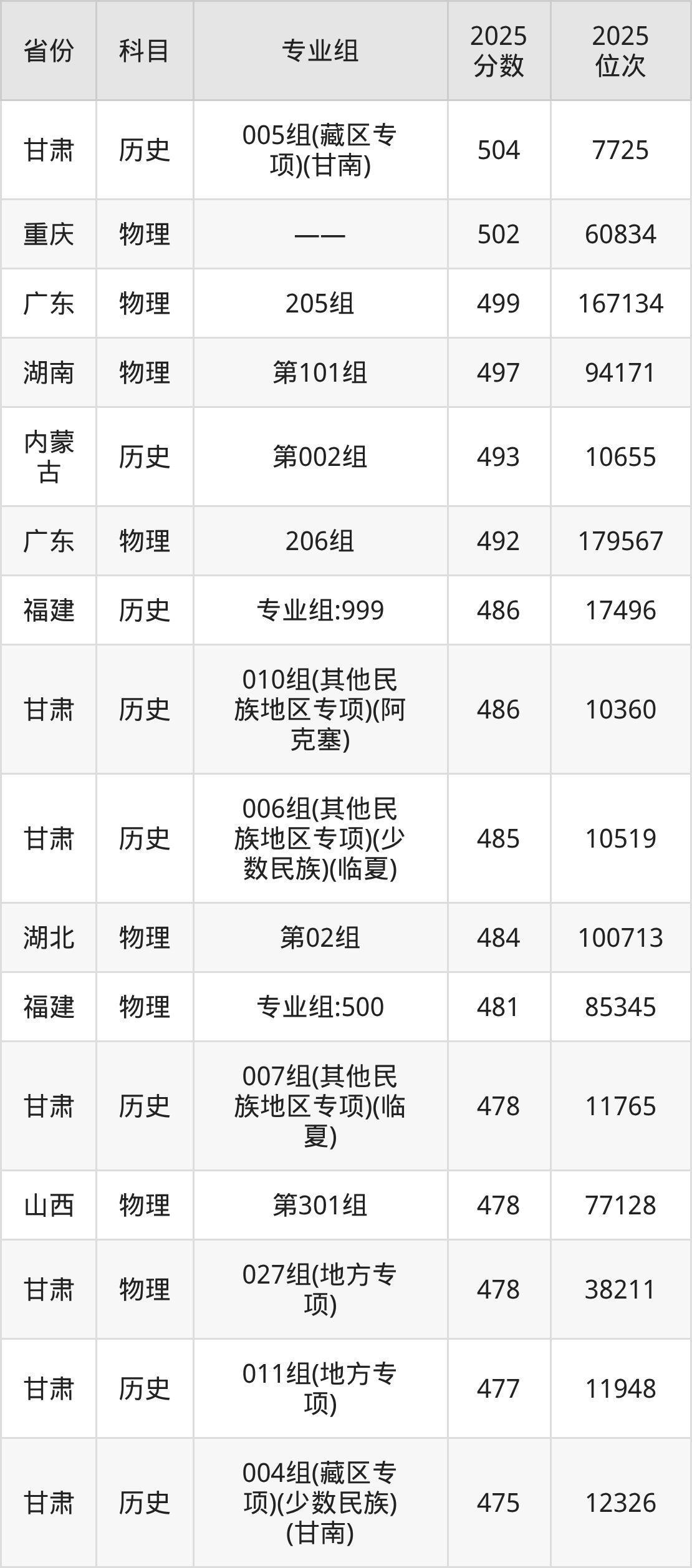 甘肃农业大学录取分数线普遍在490分及以上,最高分和最低分专业分数线相差66分、位次相差149371名。可见,对于有专业要求的同学而言,并不能简单参考学校的最低分,否则很容易被录取到不喜欢的专业。
