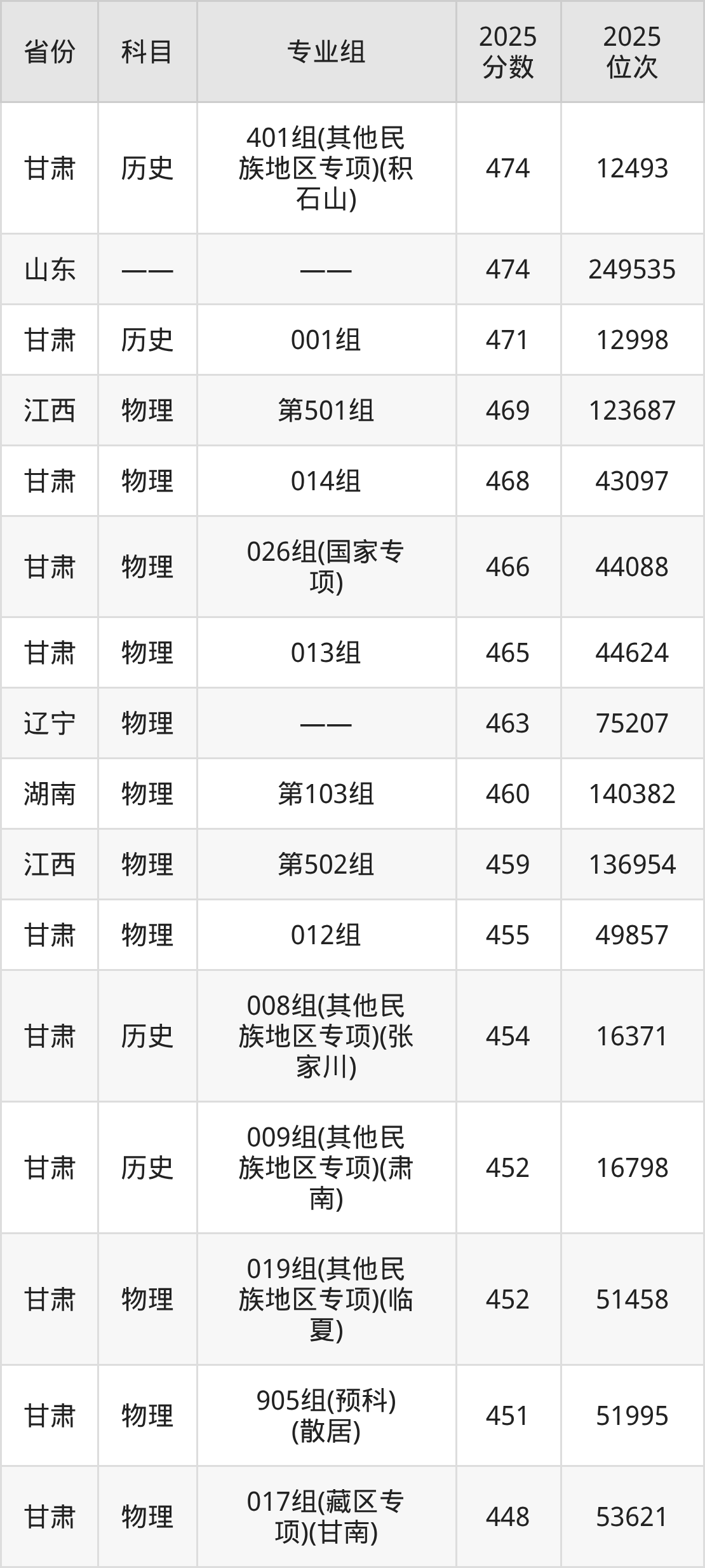 2025年甘肃农业大学各专业录取分数线从474分到540分不等,录取分数线最低的专业是园林;录取分数线最高的专业是汉语言文学。本文将展示甘肃农业大学所有专业最低分数线及位次,供2026届高考生参考。