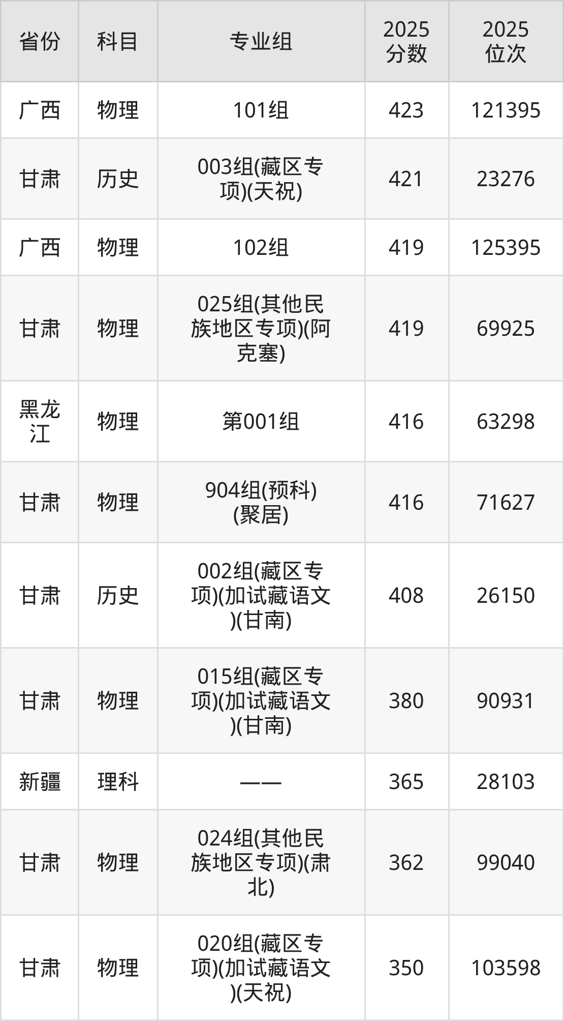 三、甘肃农业大学2025年录取分数线