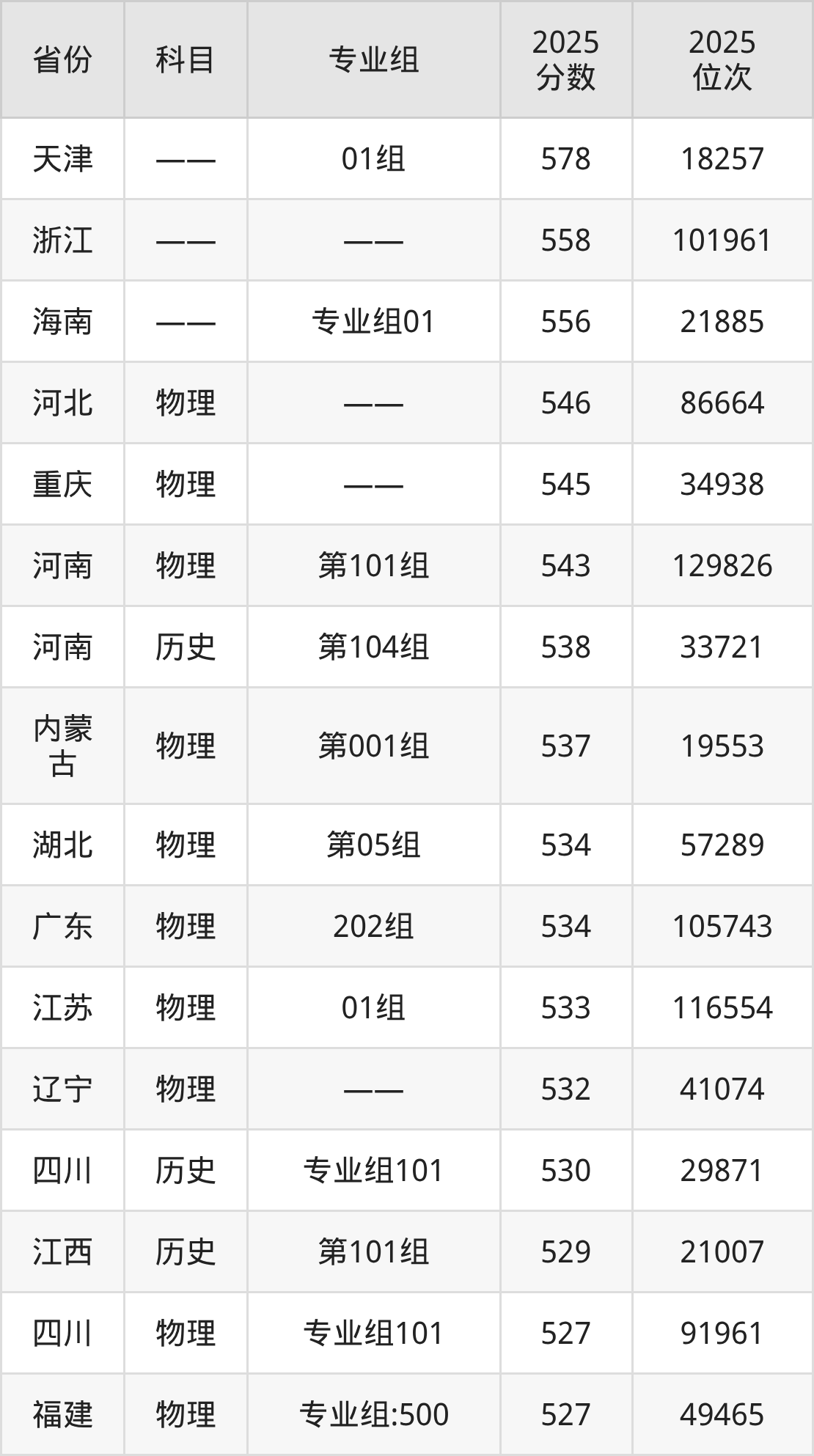 5、医学检验技术:525分、位次128299名。